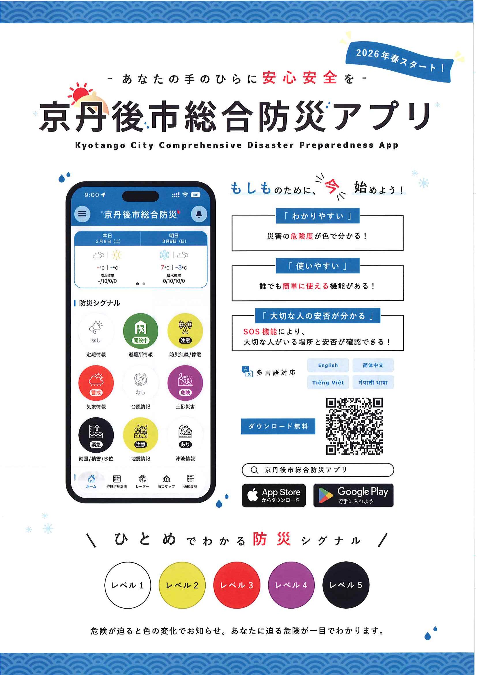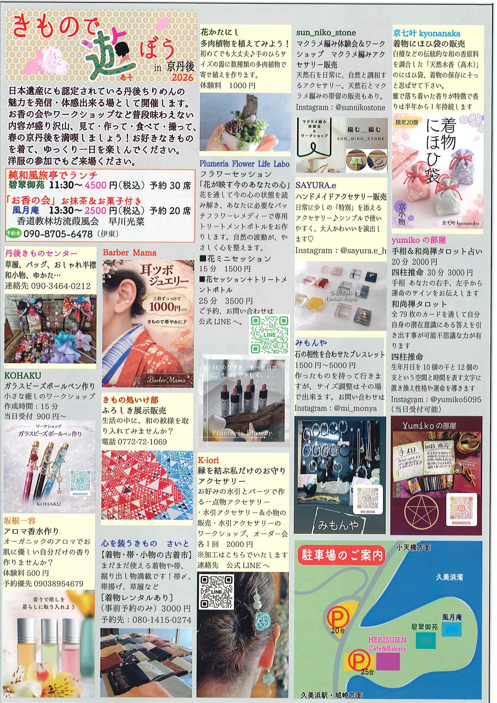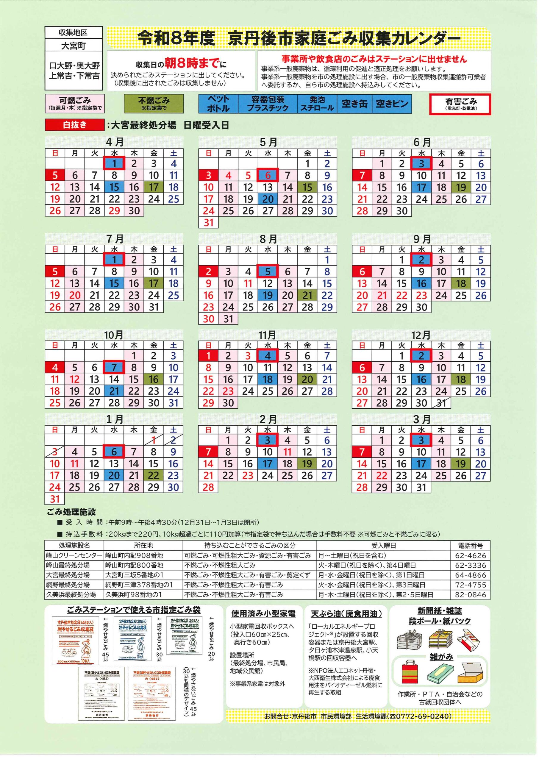 <3月11日> ・広報京丹後お知らせ版 ・京丹後市公共交通ガイドブック ・令和7年度家庭ごみ収集カレンダー ・大宮町新コミ区長協議会からのお知らせ 2面 3面 4面 ・つながる絆フェス 裏面 ・ヨガ体験とお片付け講座