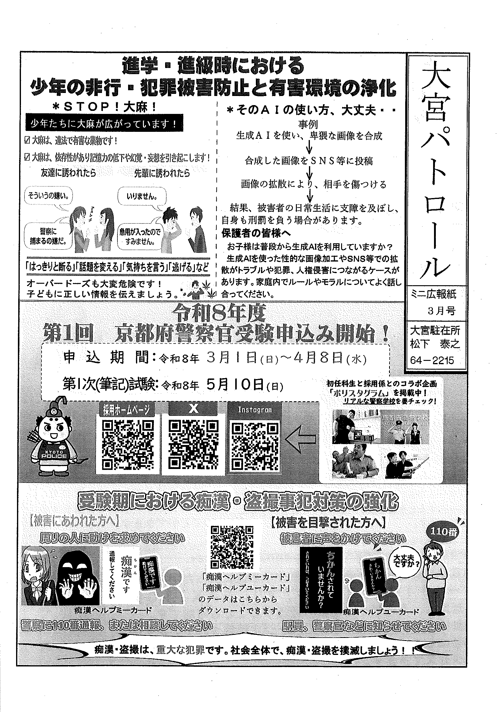 ・大野神社神輿戸別舞の募集について ・大宮駐在所ミニ広報紙大宮パトロール8月号