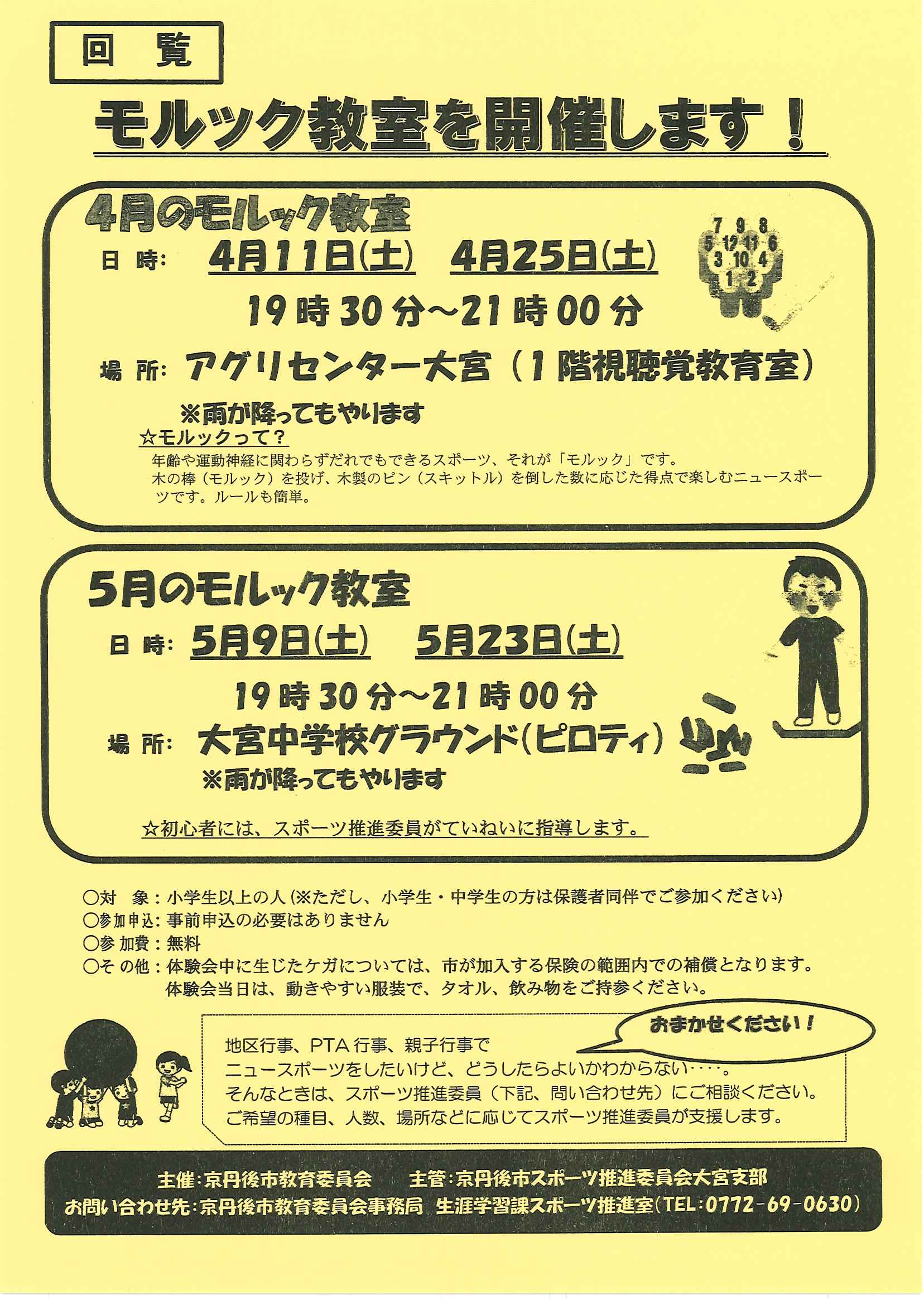 ・口大野公民館主催グラウンドゴルフ大会 ・にこにこサロン(子育てサロン)9月 ・口大野地区公民館だより 裏面 ・大宮市民局NEWSおおみやトピックス 裏面 ・モルック体験会 ・ゆかたノオト和装で紡ぐ夏の夕暮れ 裏面 ・地域おこしラジオ丹後を語る番組 ・下水道工事予定表(8/25-) ・きたほいくしょだより