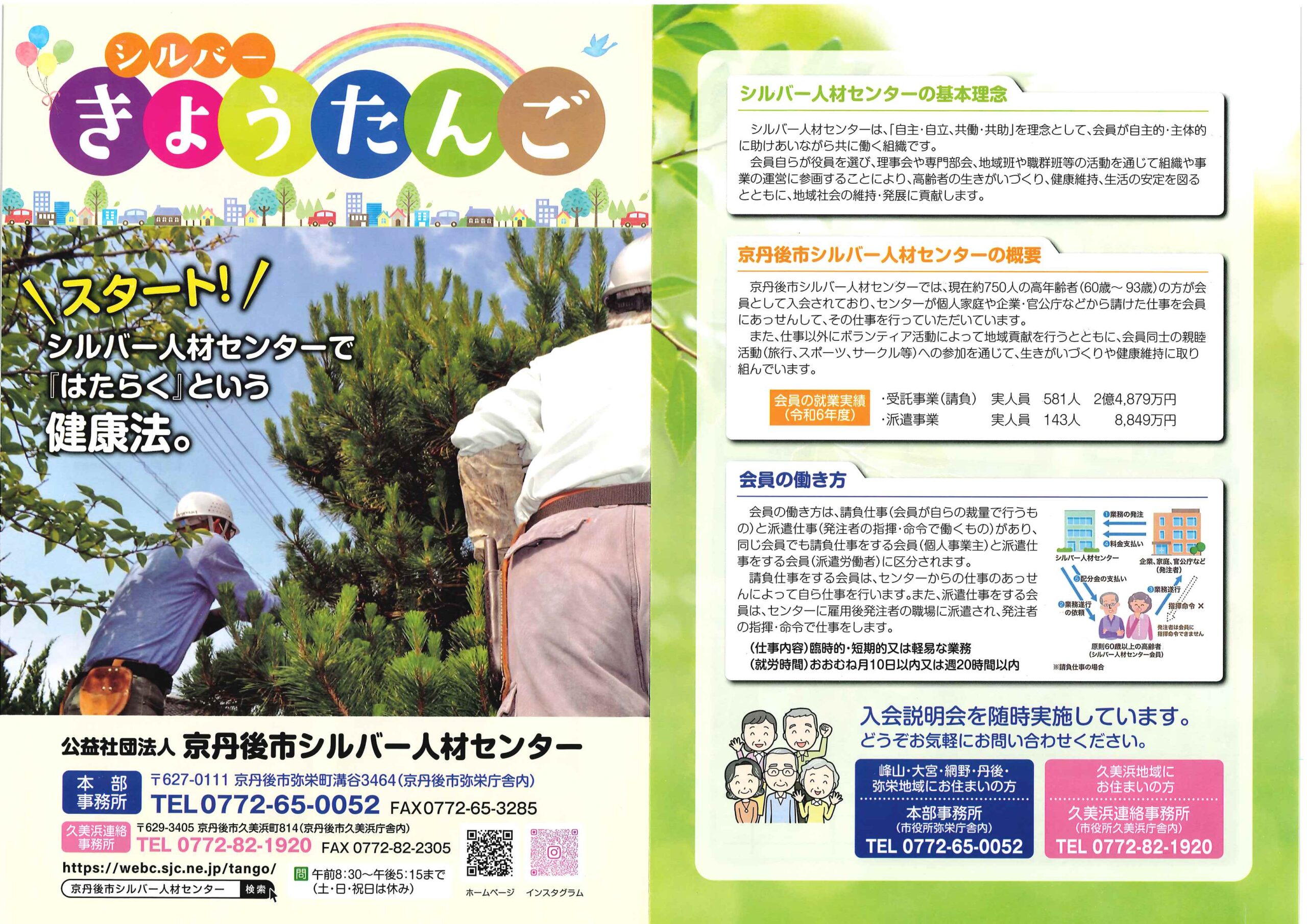 <令和7年1月14日> ・広報京丹後1月号 ・広報京丹後お知らせ版1月10日号(No406) ・市社協だより こころ(第103号) ・フレイル予防無料体験教室 ・市スポーツ協会広報 どっとこむGosports 2面 3面 4面 ・京都府丹後文化会館だより たんぶん(No175) 裏面