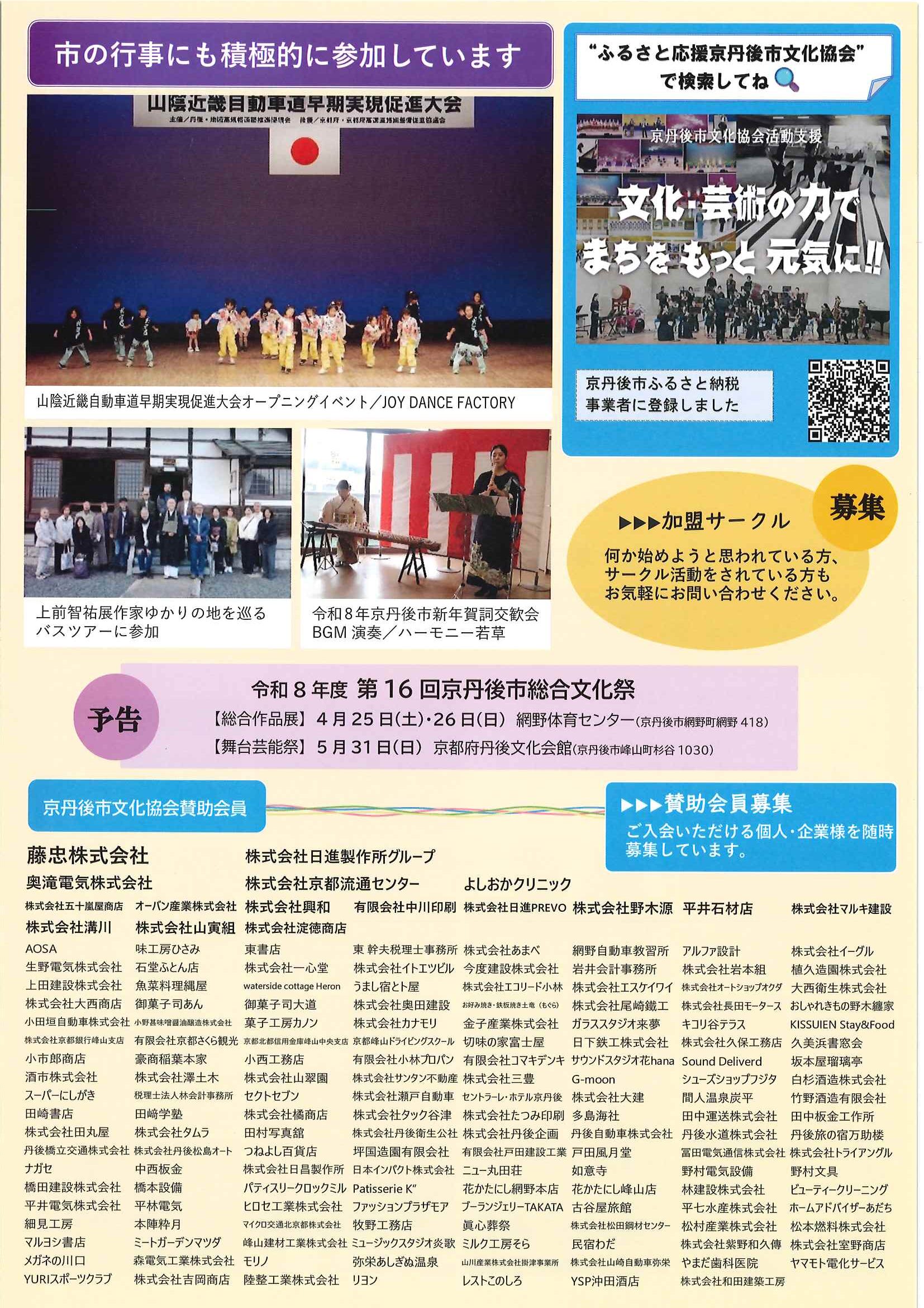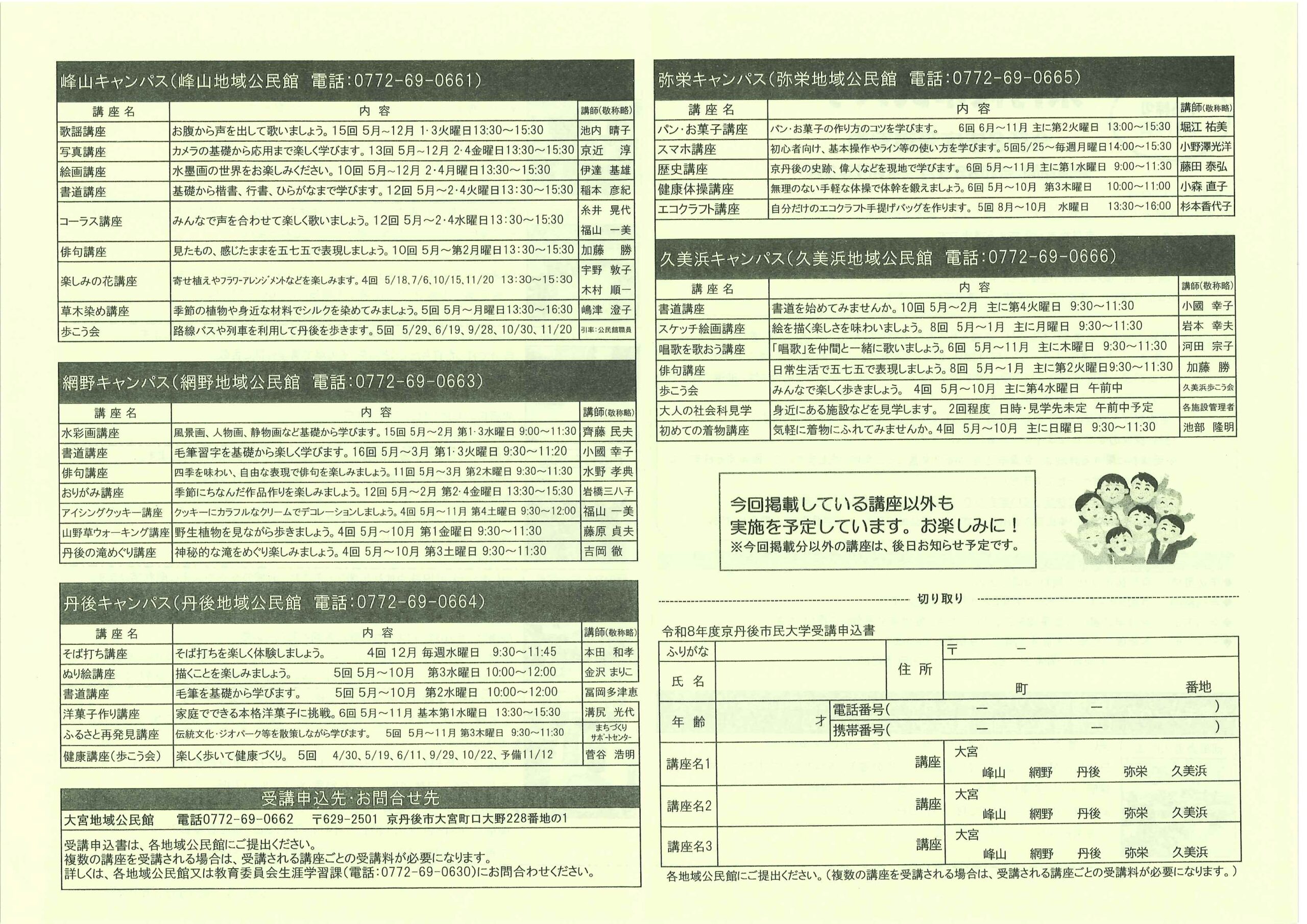 <5月26日> ・広報京丹後6月号 ・市社協だより こころ(105号) ・第15回京丹後市総合文化祭「総合作品展」 裏面 ・府民公開講座(府立医大附属北部医療センター)