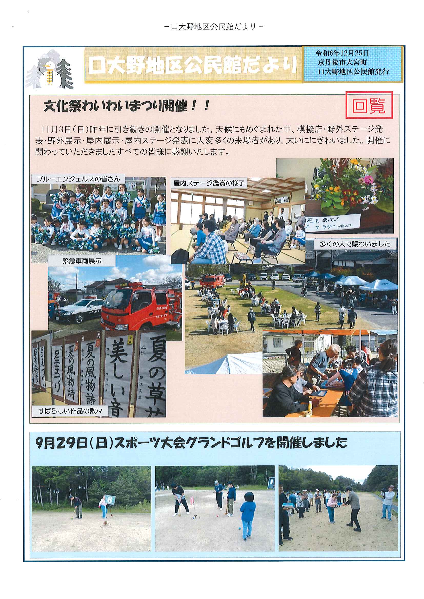 ◇◇ 口大野地区公民館だよりの発行 ◇◇