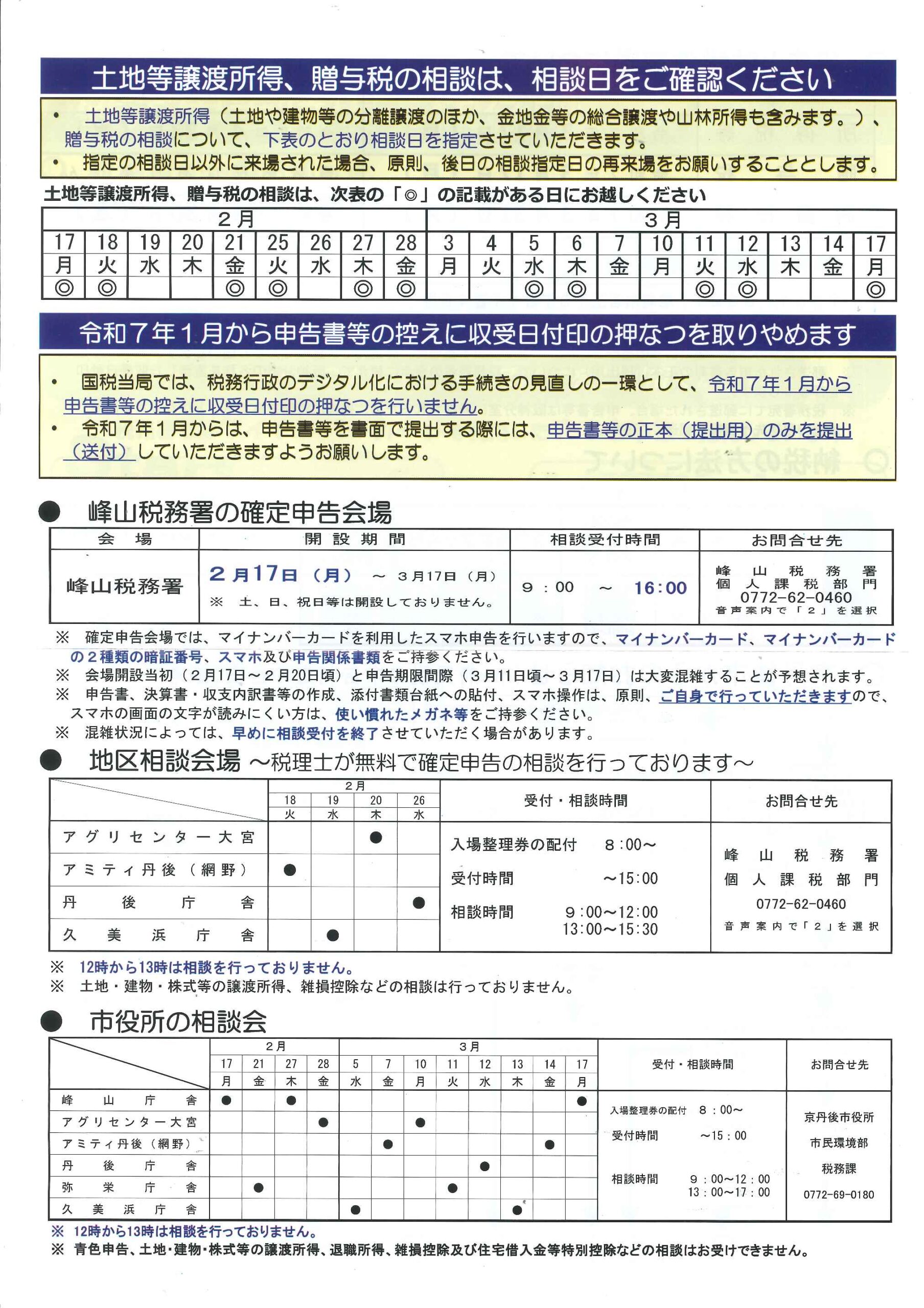 <1月27日> ・広報京丹後2月号 ・京丹後市農業委員会だよりNo60 ・集合型移動サービスmobi使い方教室 ・市民と議会の懇談会 ・令和6年確定申告特集保存版 2面 3面 4面