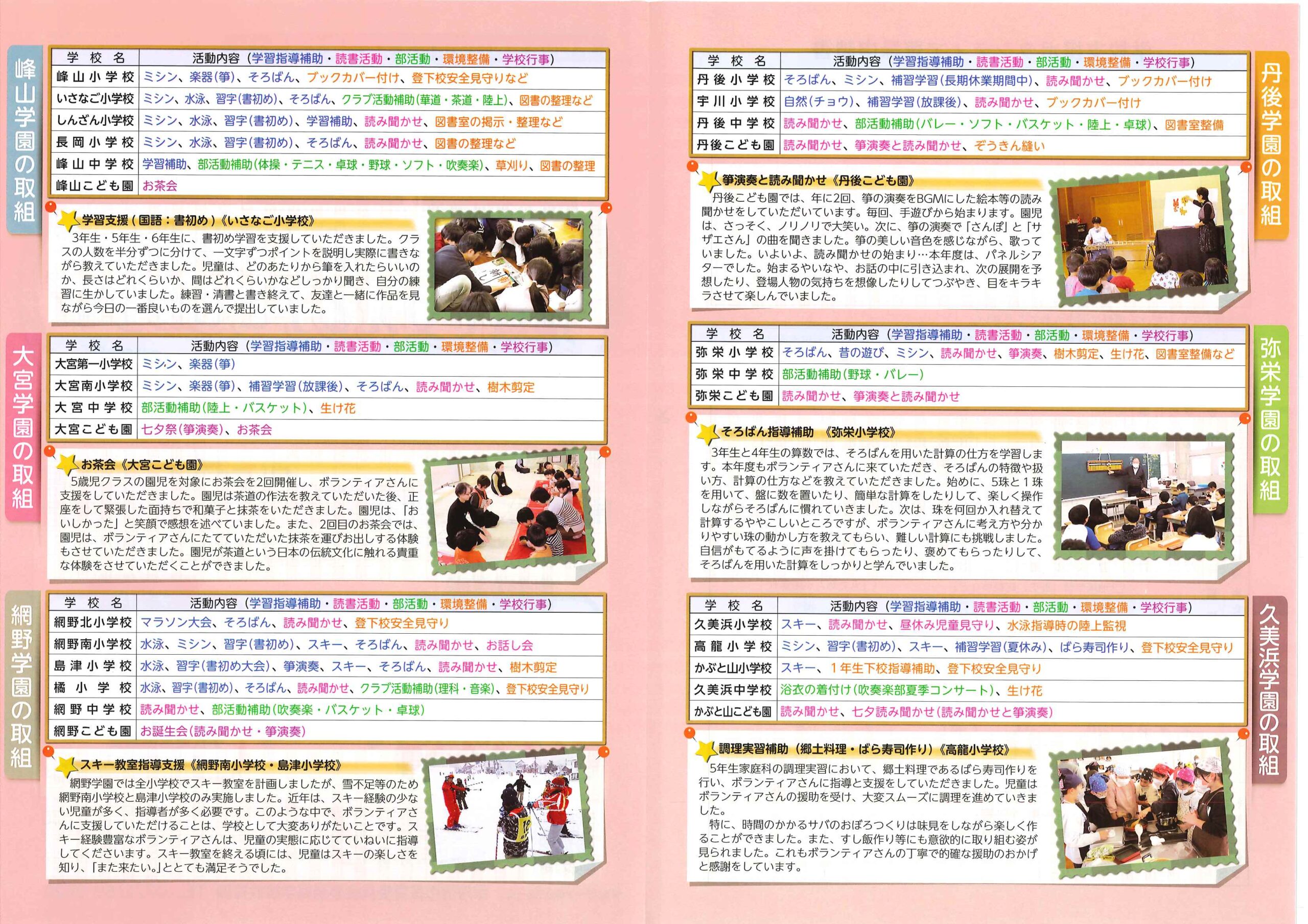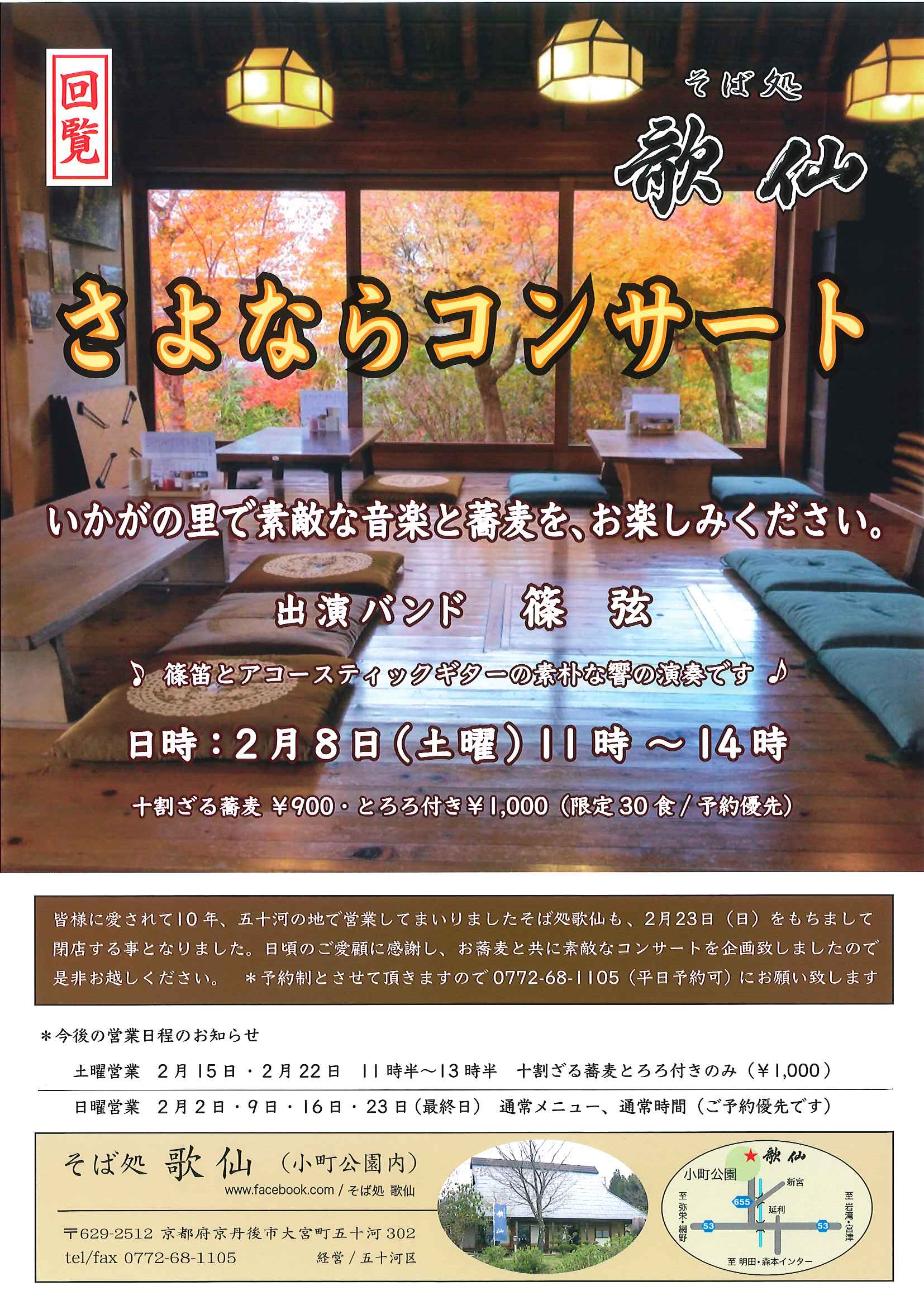 ・長寿お祝い券の使用率 ・にこにこサロン(子育てサロン)2月 ・下水道工事の予定表 ・さよならコンサート そば処歌仙 ・丹後地区森林組合だより