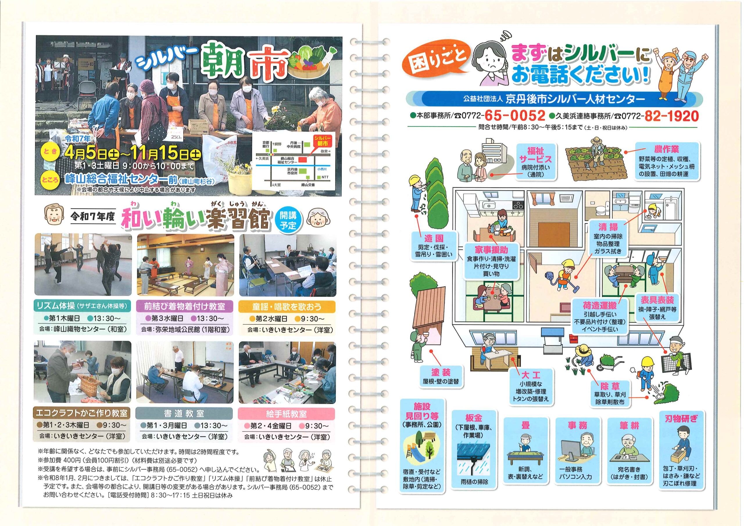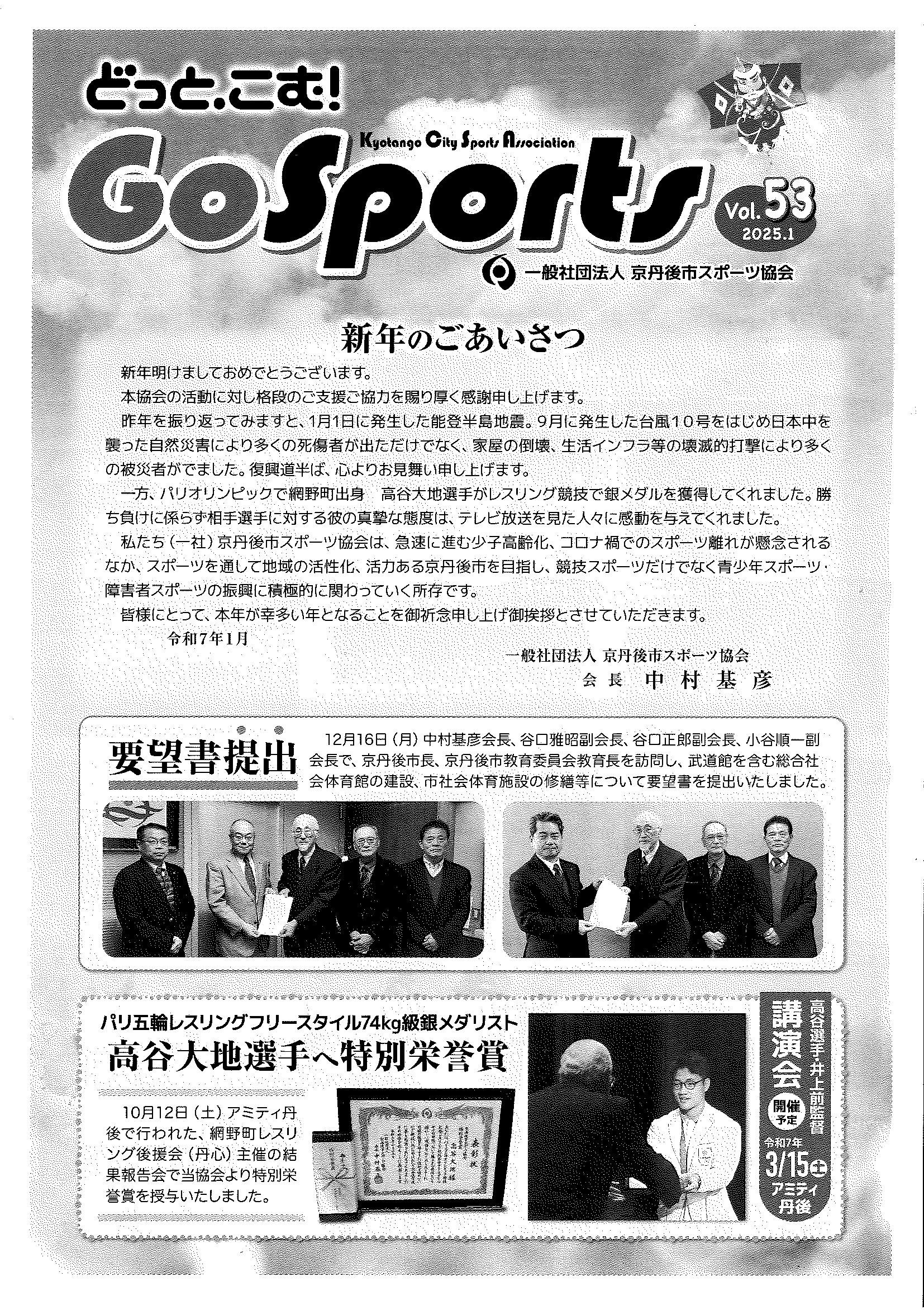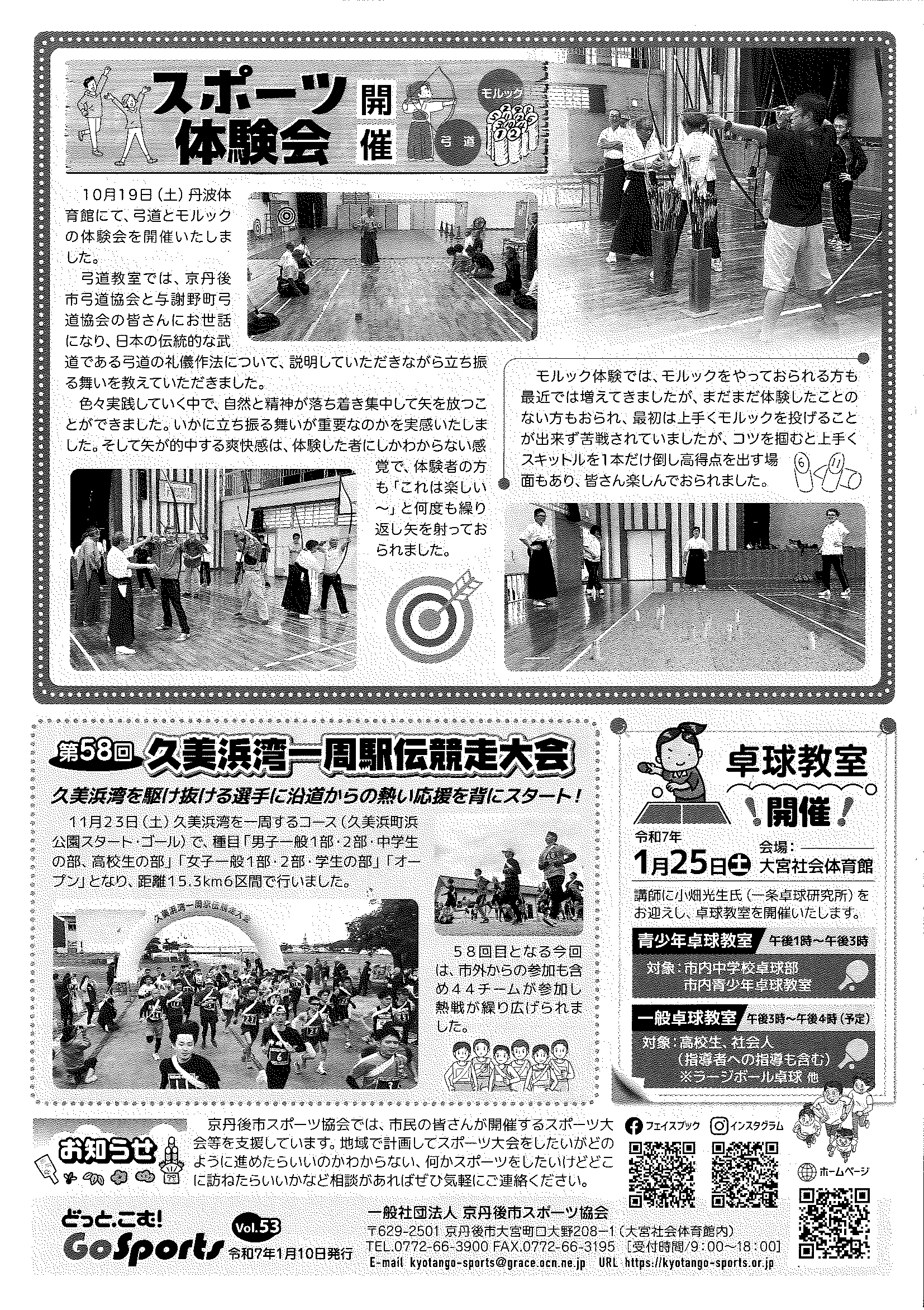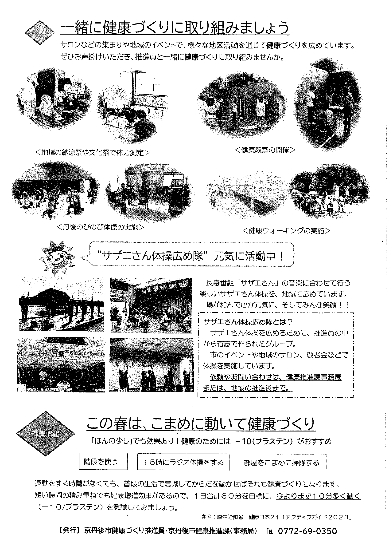 <令和7年1月14日> ・広報京丹後1月号 ・広報京丹後お知らせ版1月10日号(No406) ・市社協だより こころ(第103号) ・フレイル予防無料体験教室 ・市スポーツ協会広報 どっとこむGosports 2面 3面 4面 ・京都府丹後文化会館だより たんぶん(No175) 裏面