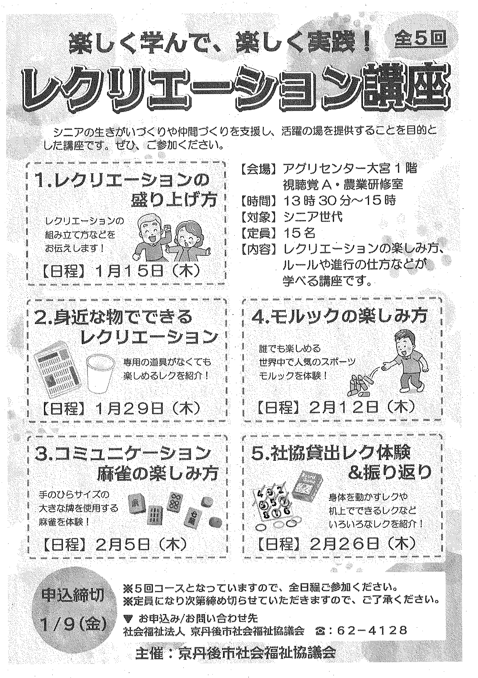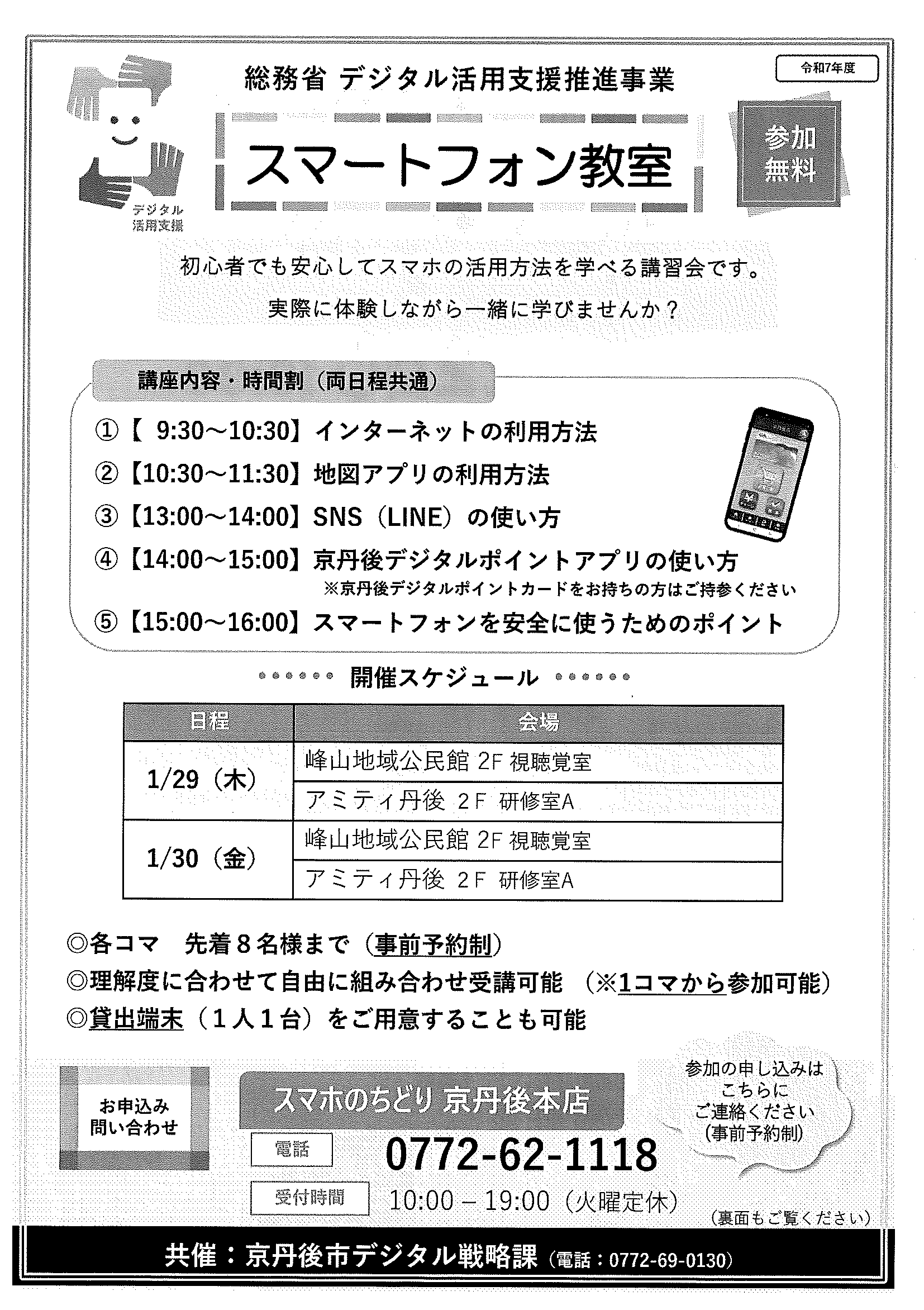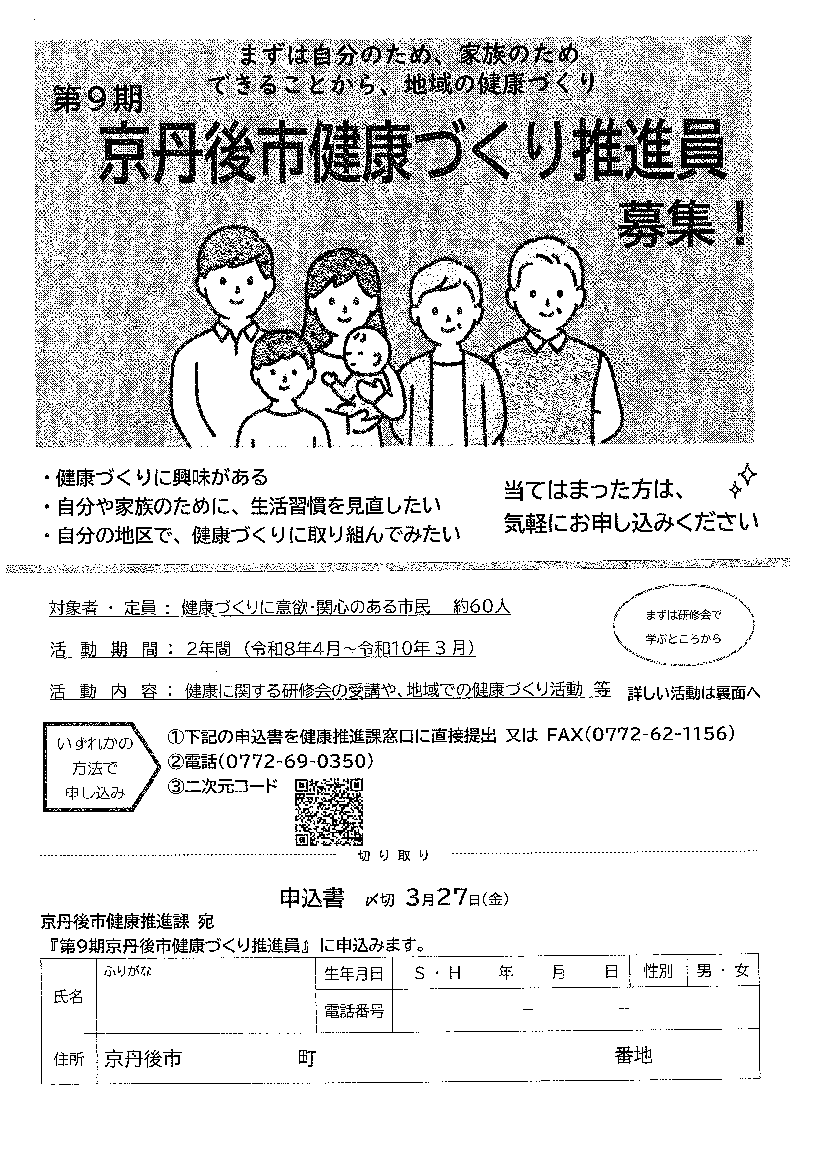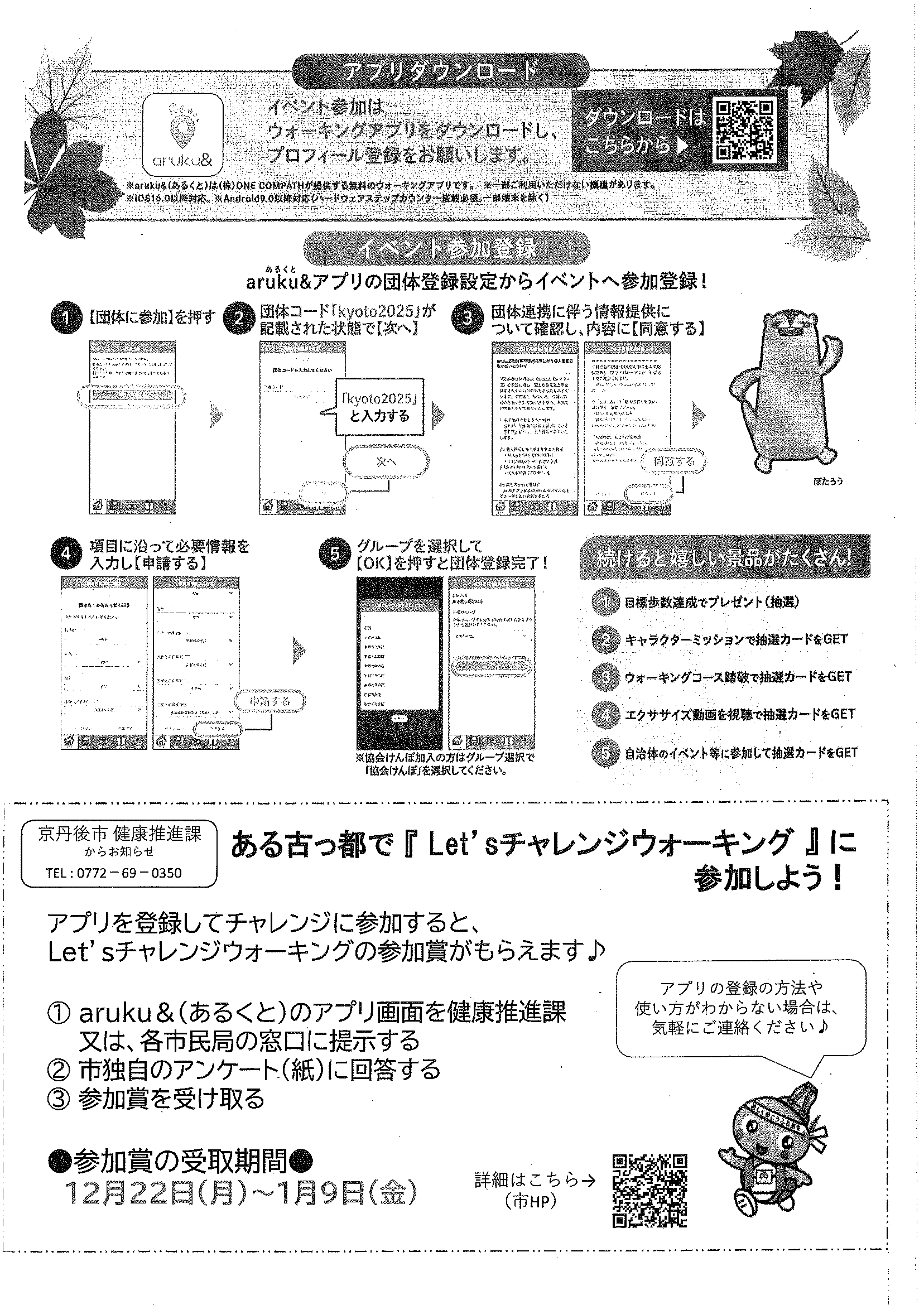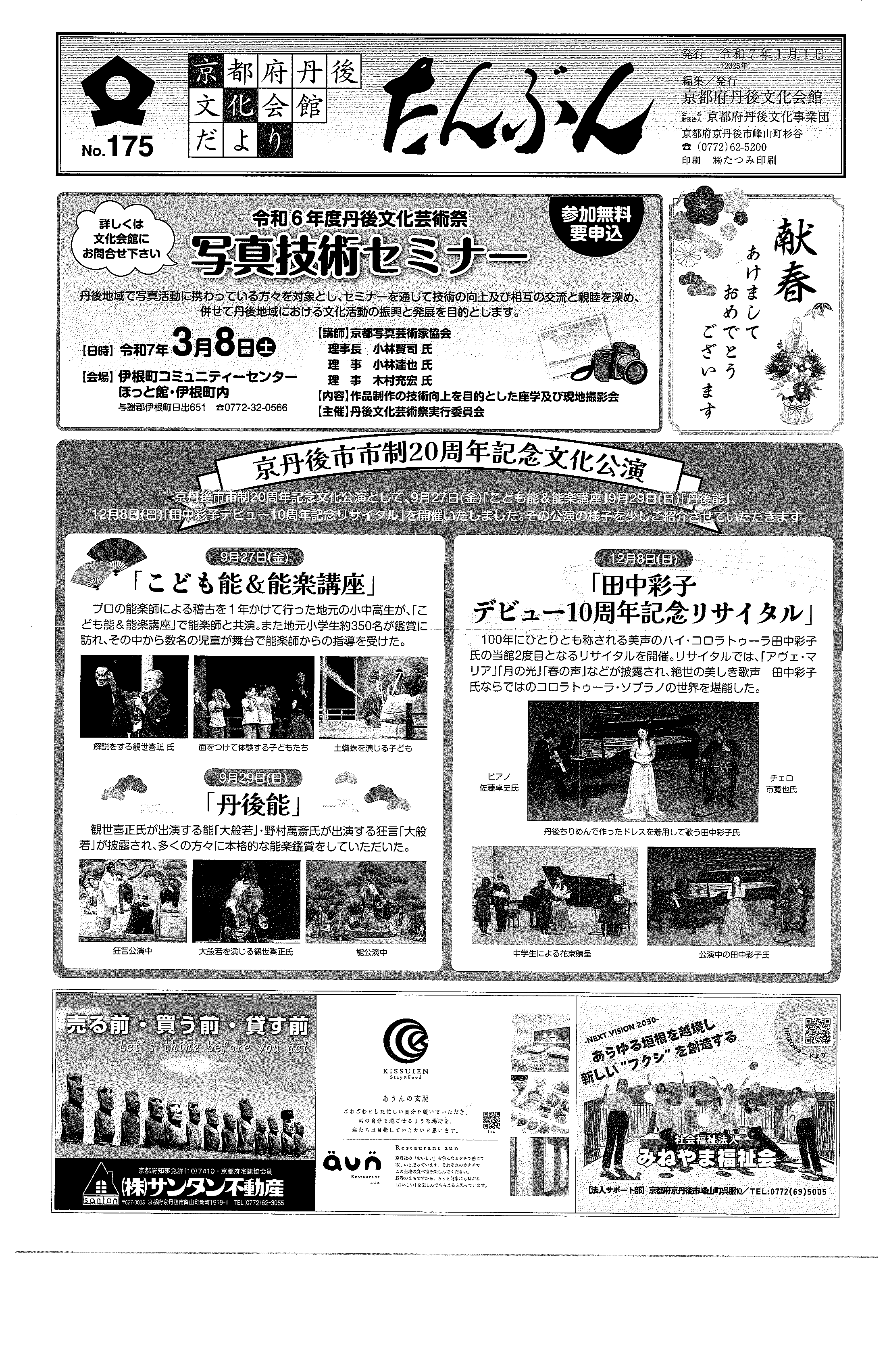 <令和7年1月14日> ・広報京丹後1月号 ・広報京丹後お知らせ版1月10日号(No406) ・市社協だより こころ(第103号) ・フレイル予防無料体験教室 ・市スポーツ協会広報 どっとこむGosports 2面 3面 4面 ・京都府丹後文化会館だより たんぶん(No175) 裏面