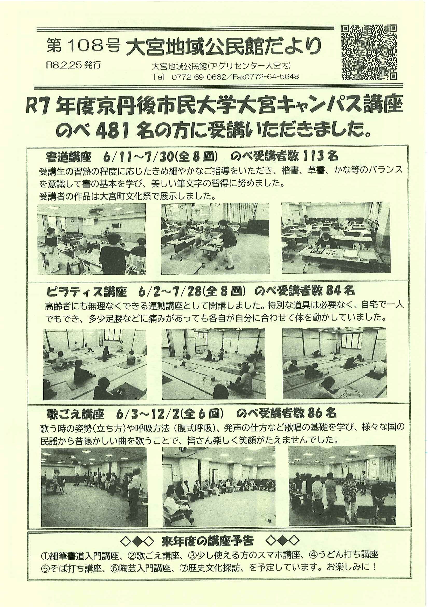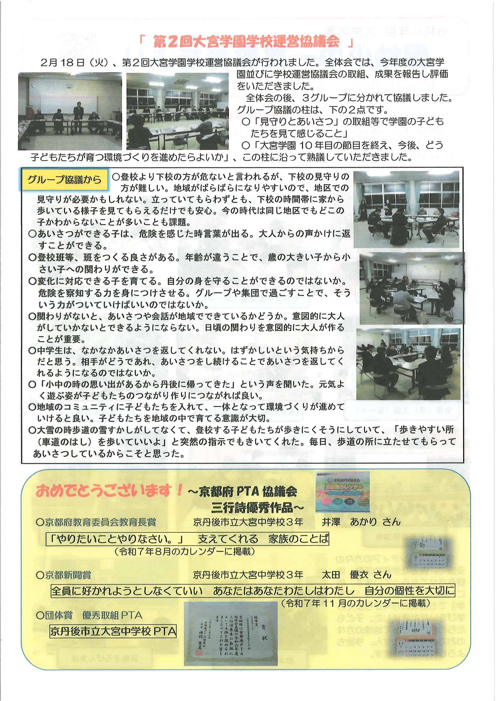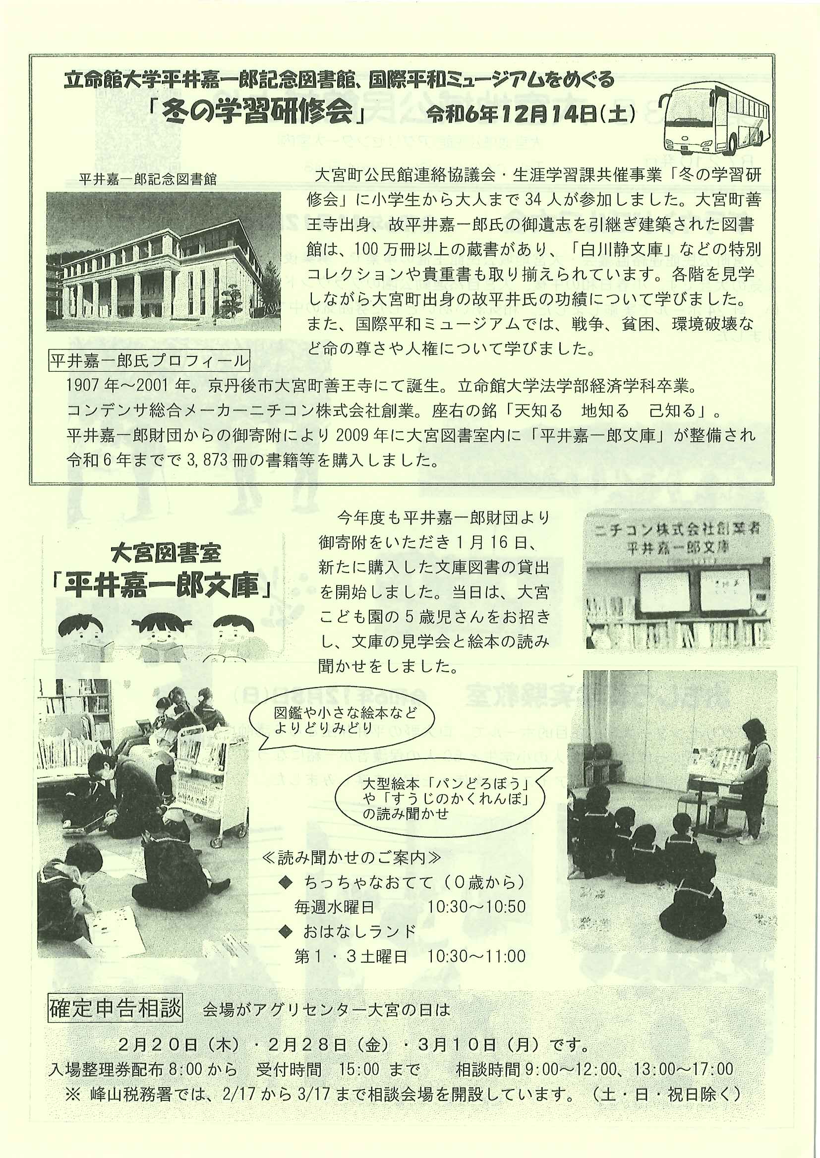<2月12日> ・広報京丹後お知らせ版 ・京丹後市議会だより ・大宮地域公民館だよりNo103号 裏面 ・社会を明るく運動優秀標語