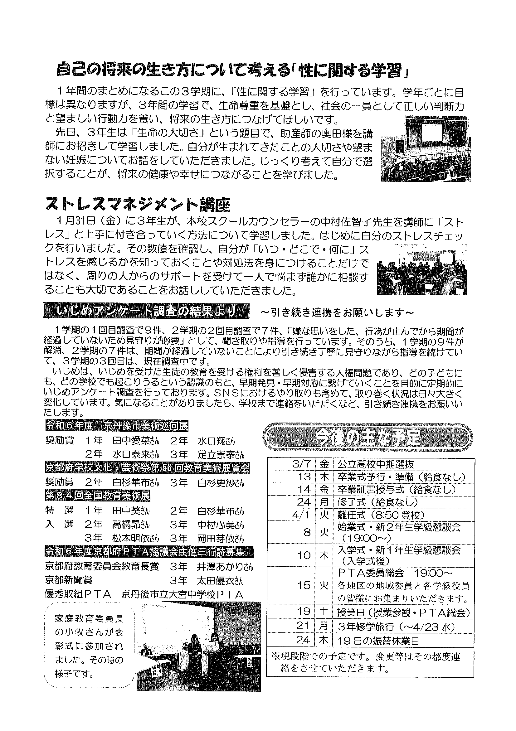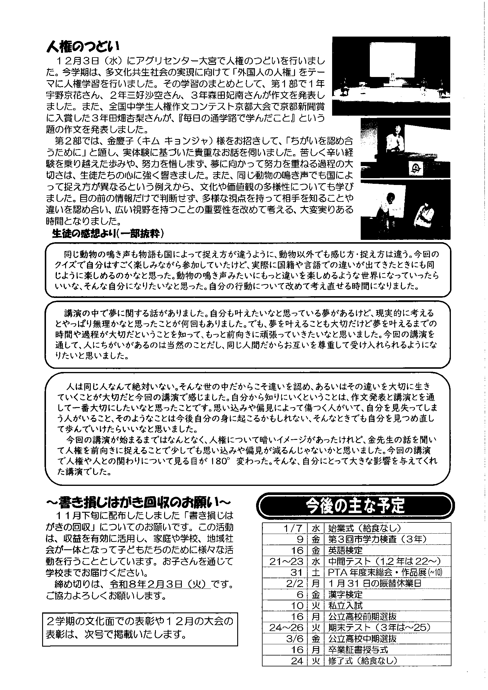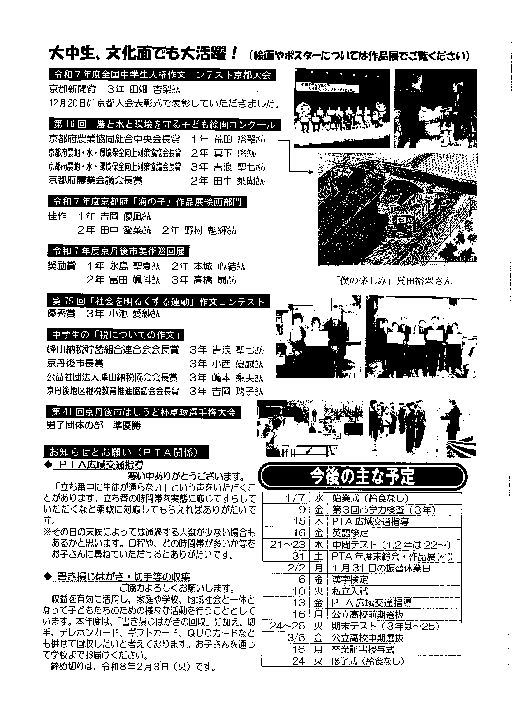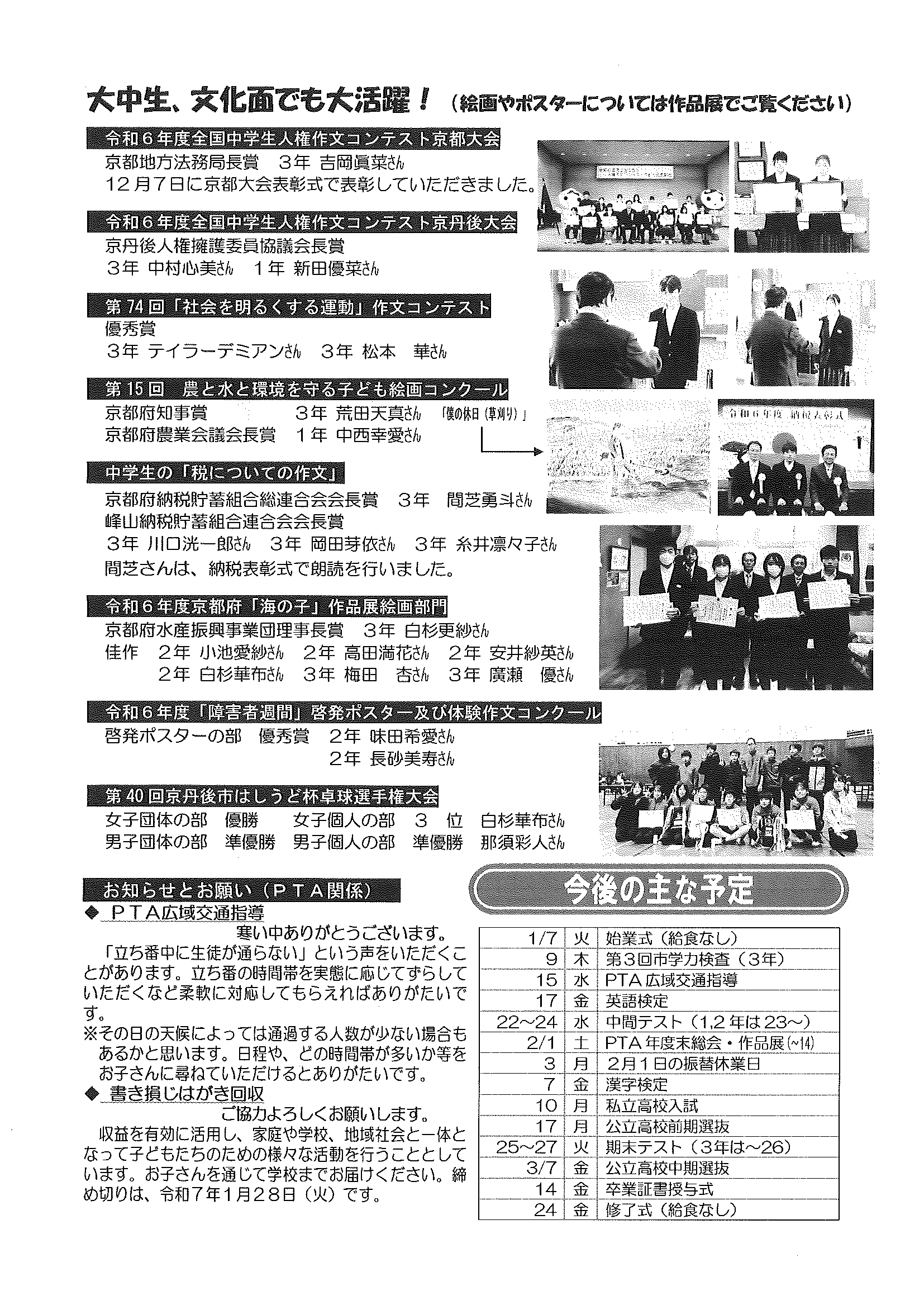 <2月12日> ・広報京丹後お知らせ版 ・京丹後市議会だより ・大宮地域公民館だよりNo103号 裏面 ・社会を明るく運動優秀標語