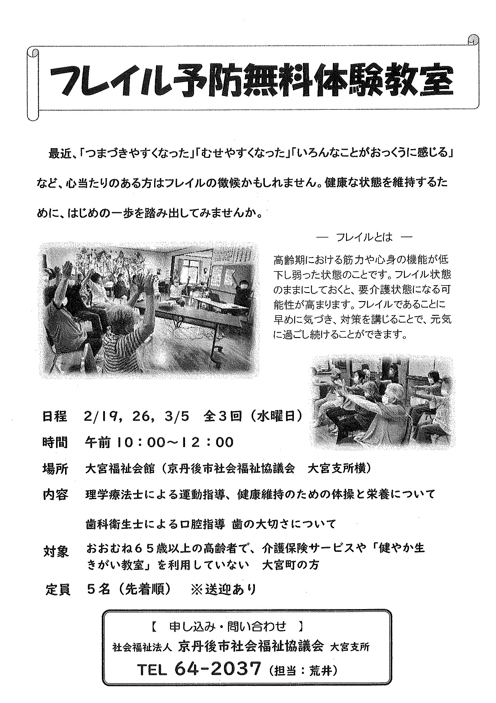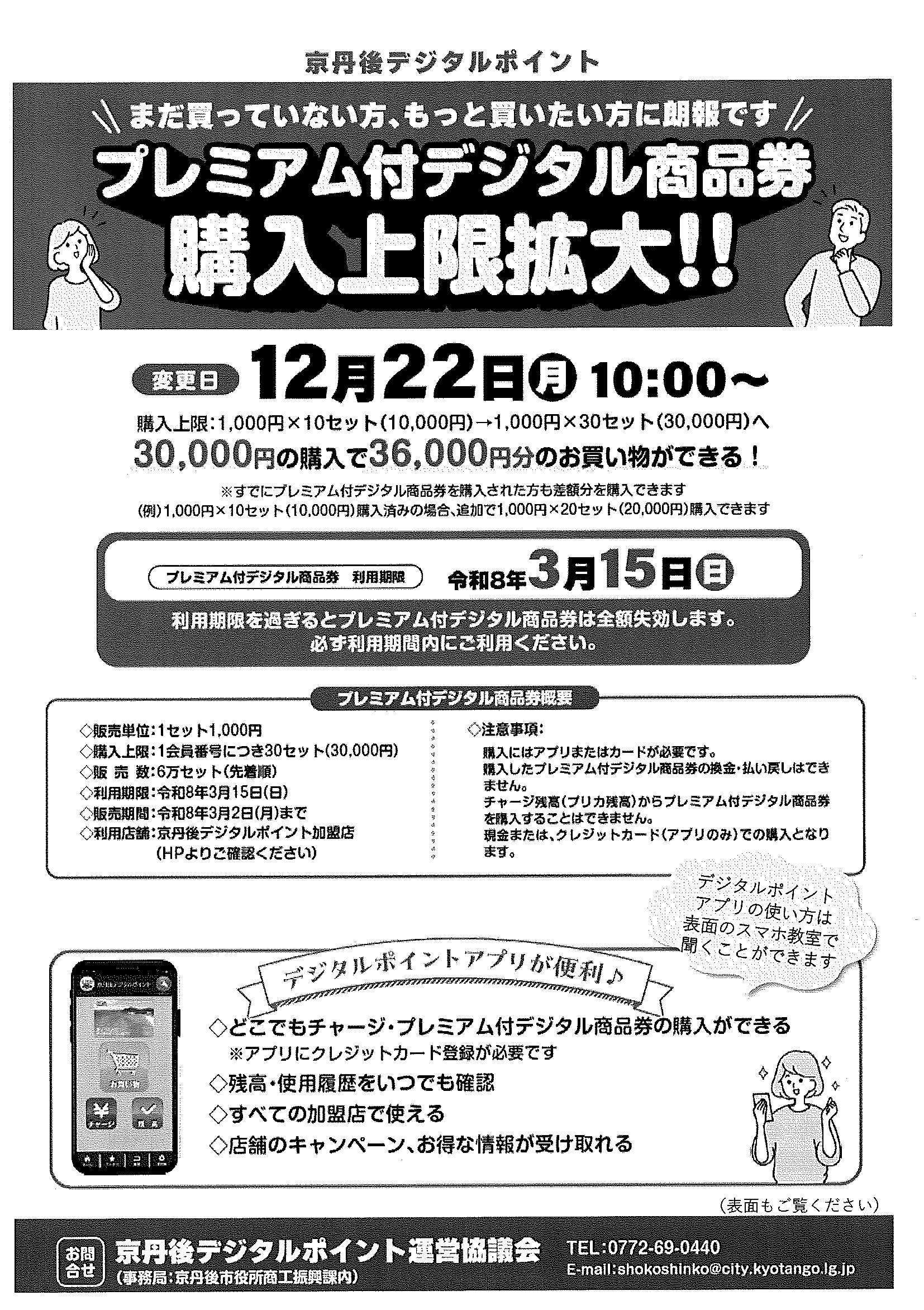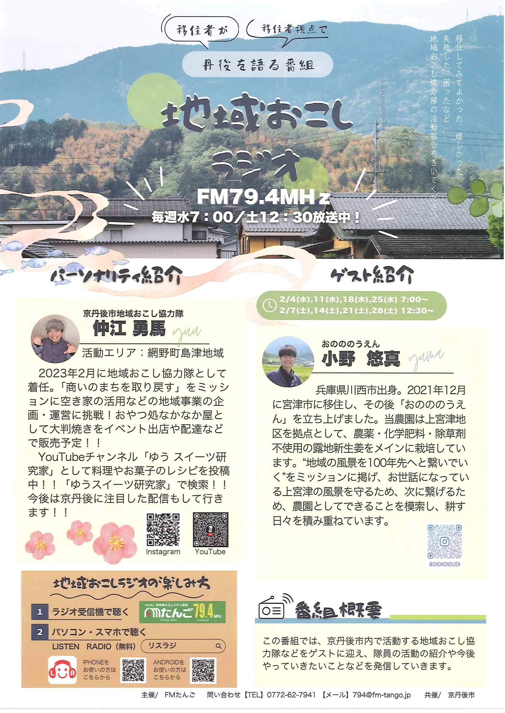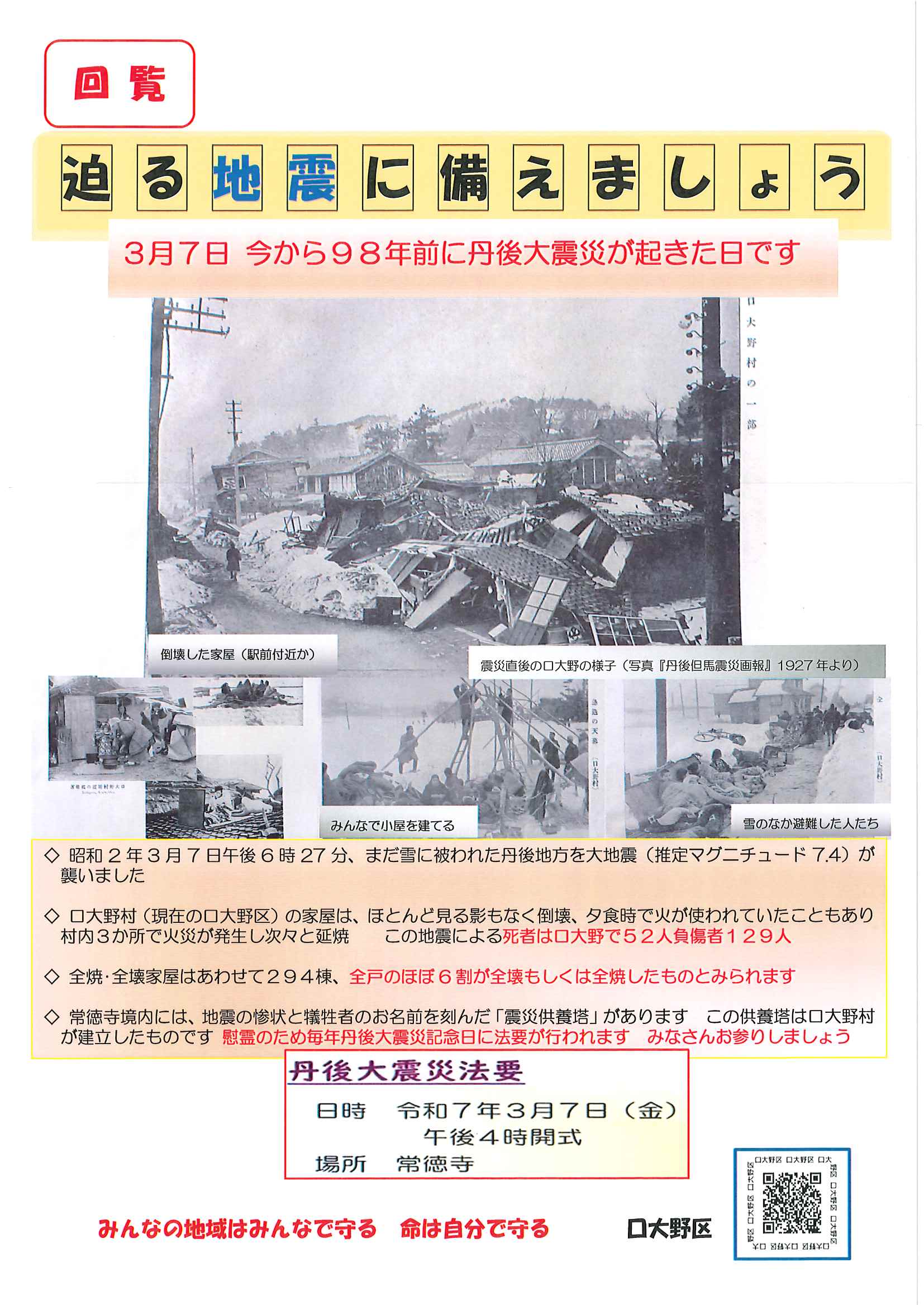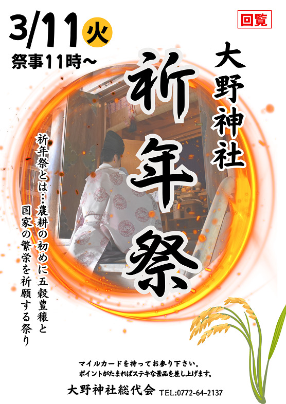・地域おこしラジオ 丹後を語る番組放送中 ・下水道工事予定表2/25- ・3月子育てサロン(にこにこサロン) ・迫る地震に備えましょう 裏面 ・京丹後デジタルポイント プレミアム付デジタル商品券 裏面 ・大野神社祈年祭