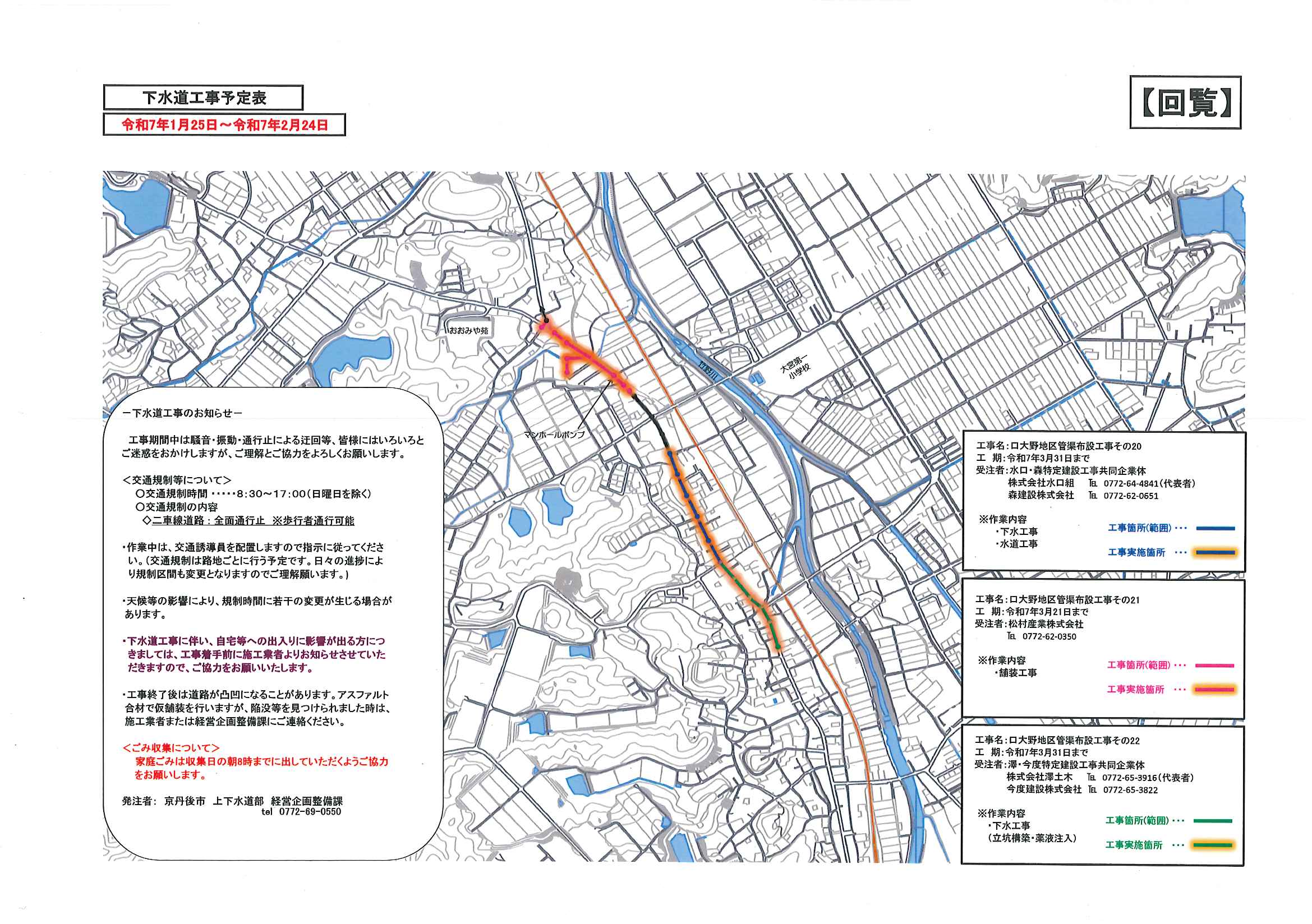 ・2月にこにこサロン(子育てサロン) ・大宮市民局NEWSおおみやトピックス ・確定申告は自宅からマイナカードとスマホでe-Tax ・丹後を語る番組地域おこしラジオ ・下水道工事予定表1/25- ・保幼小中一貫教育だより 裏面 ・大野神社歳時記 裏面 ・丹後森林組合だより 回覧版は読み終えたらすぐにお隣さんへ! 次回配布は2月12日の予定です <令和8年1月13日> ・広報京丹後1月号 ・市社協だより こころ109号 ・市スポーツ協会広報誌 どっと.こむ!GoSports ・市民大学講座 AIの基本を学ぼう ・京都府丹後文化会館だより たんぶんNo178 裏面