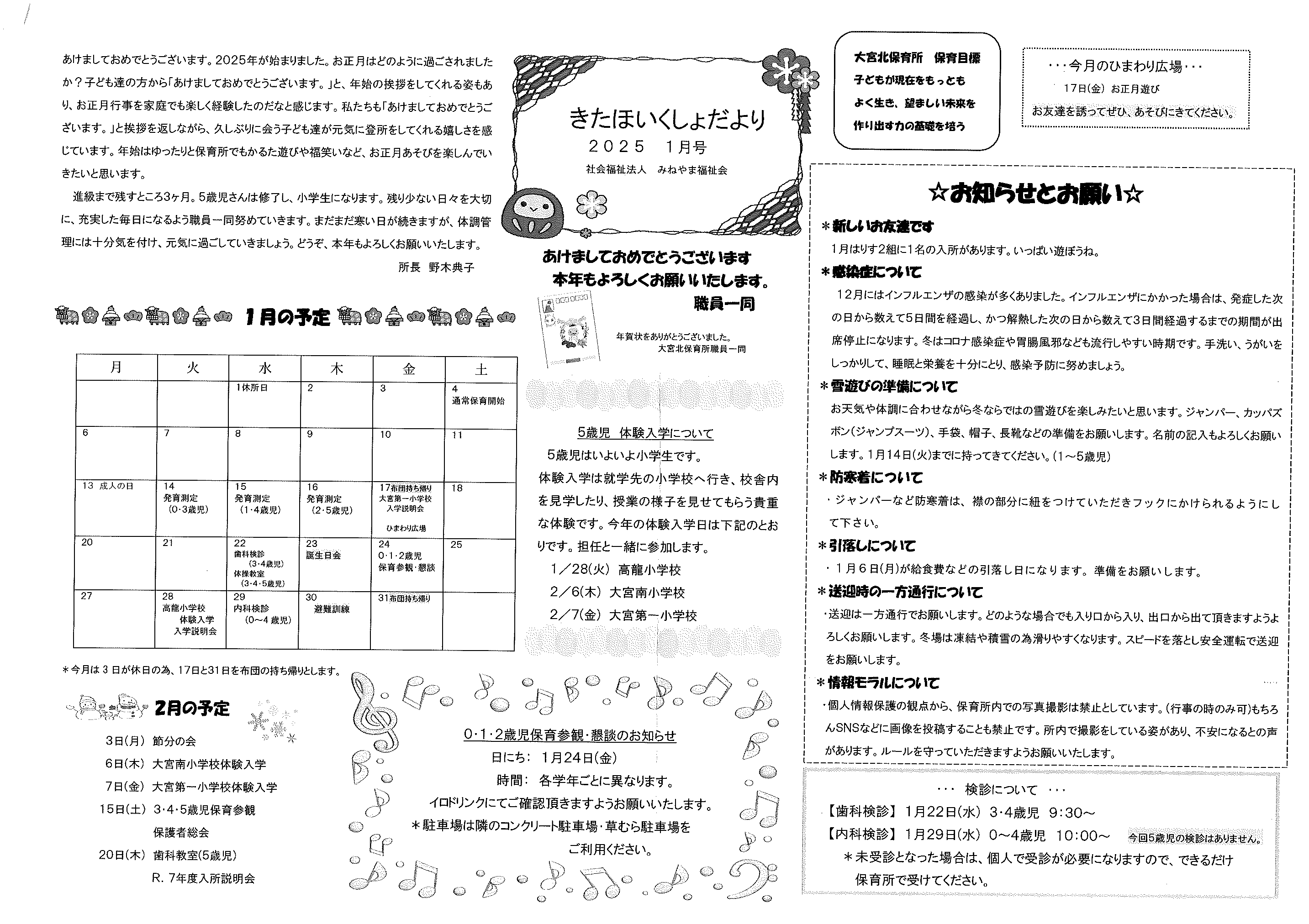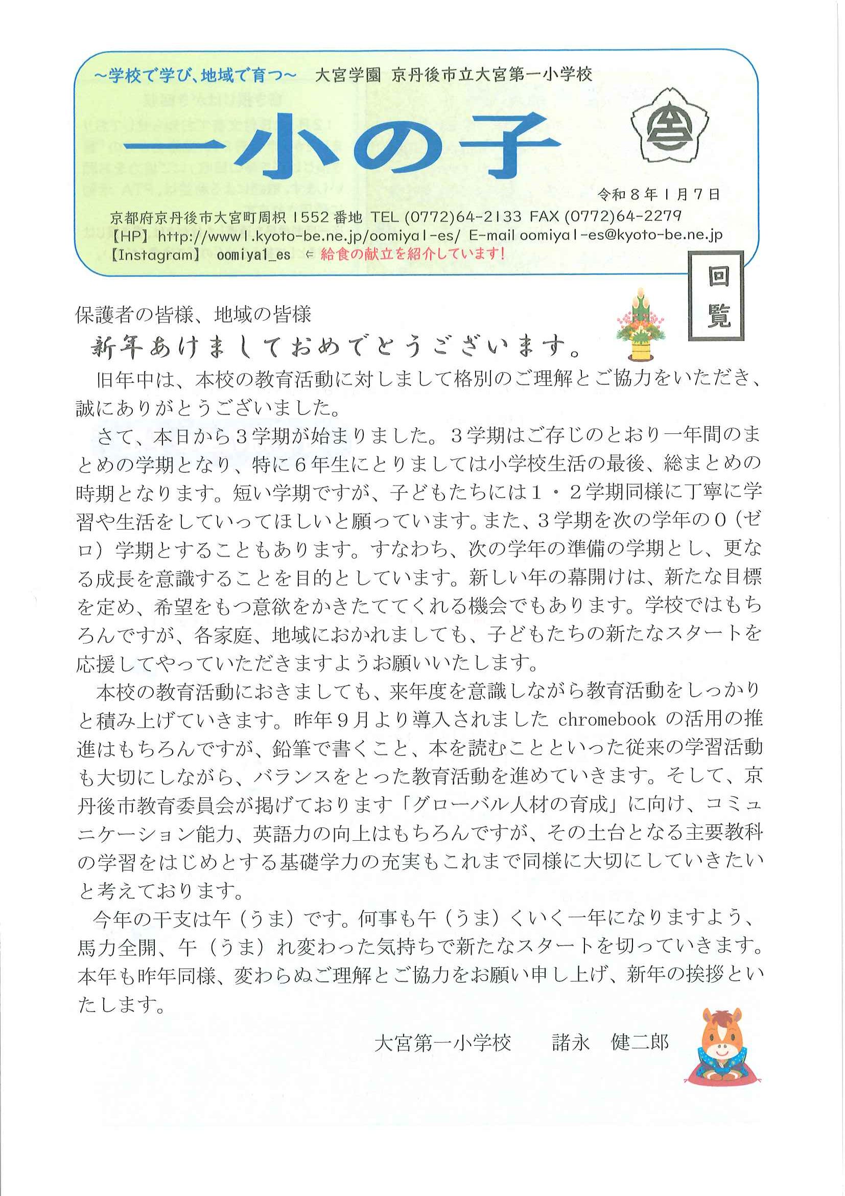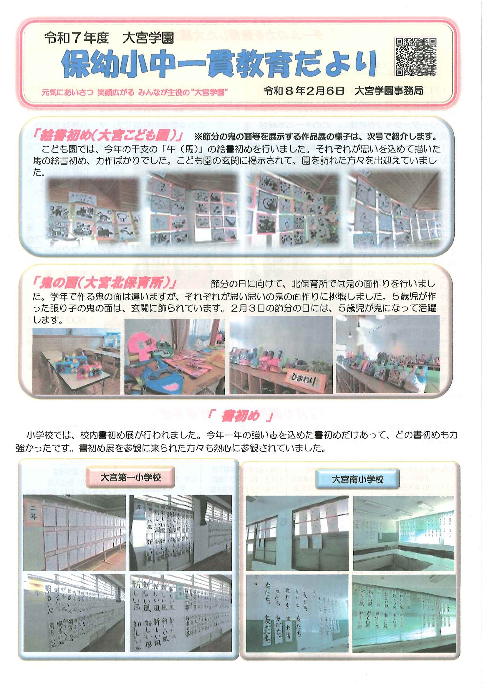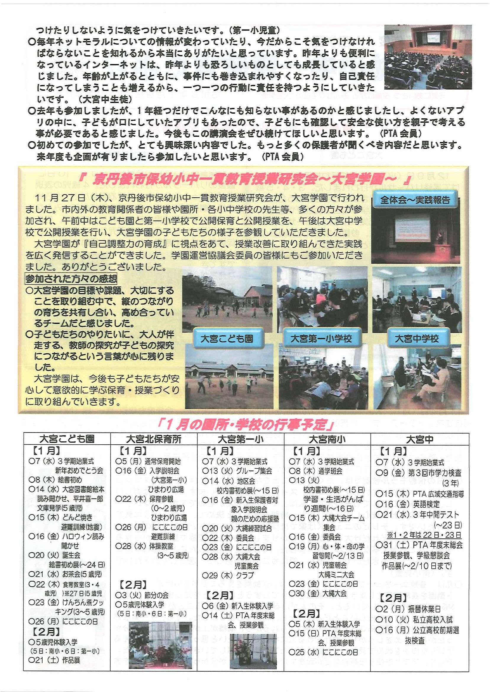 ・1月ふれあいサロン ・大宮駐在所広報紙 大宮パトロール1月号 ・大野神社歳時記(第24号) 裏面 ・保幼小中一貫教育だより 裏面 ・大宮中学校だより1月号 裏面 ・一小の子(12月24日号) 裏面 ・〃(1月7日号) 裏面 ・きたほいくしょだより1月号 ・大宮市民局NEWSおおみやトピックス