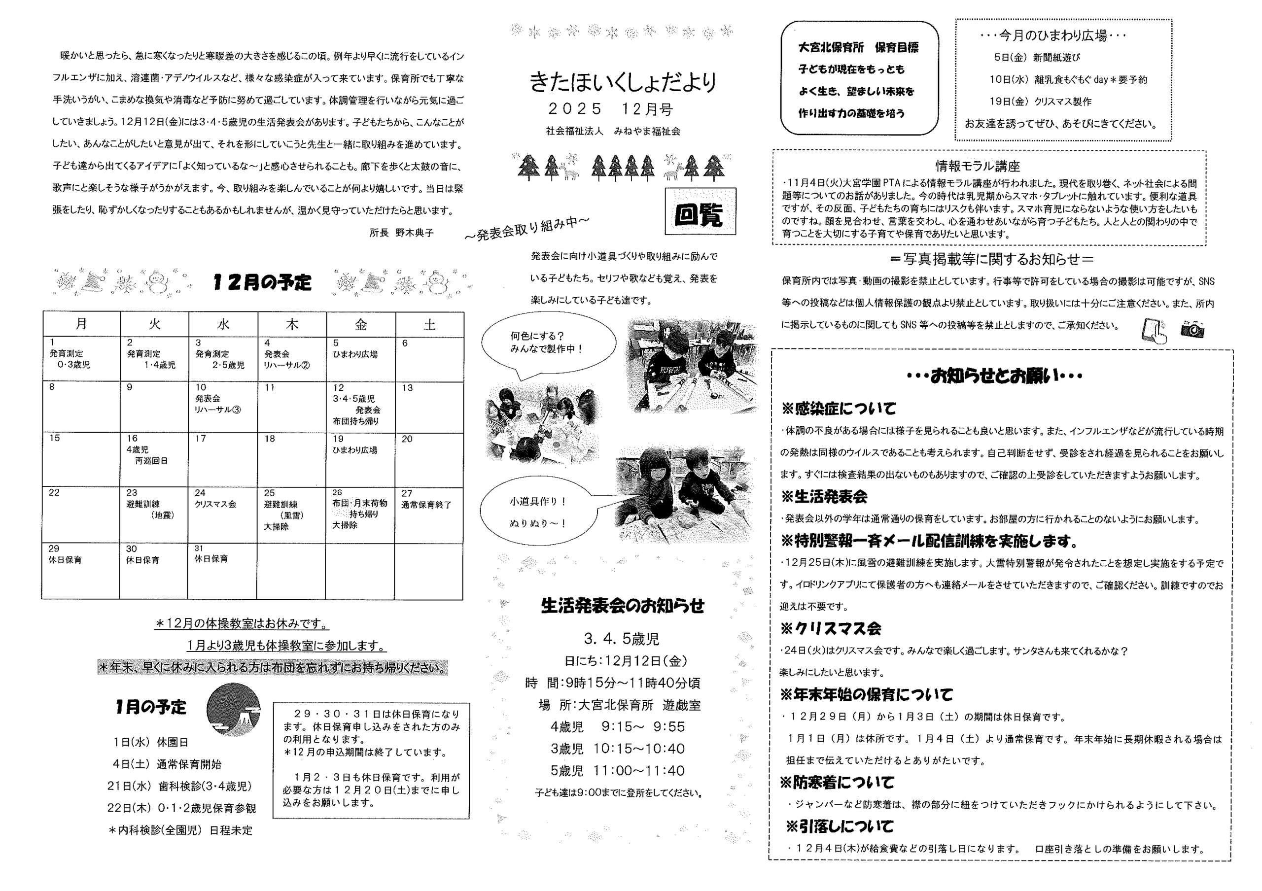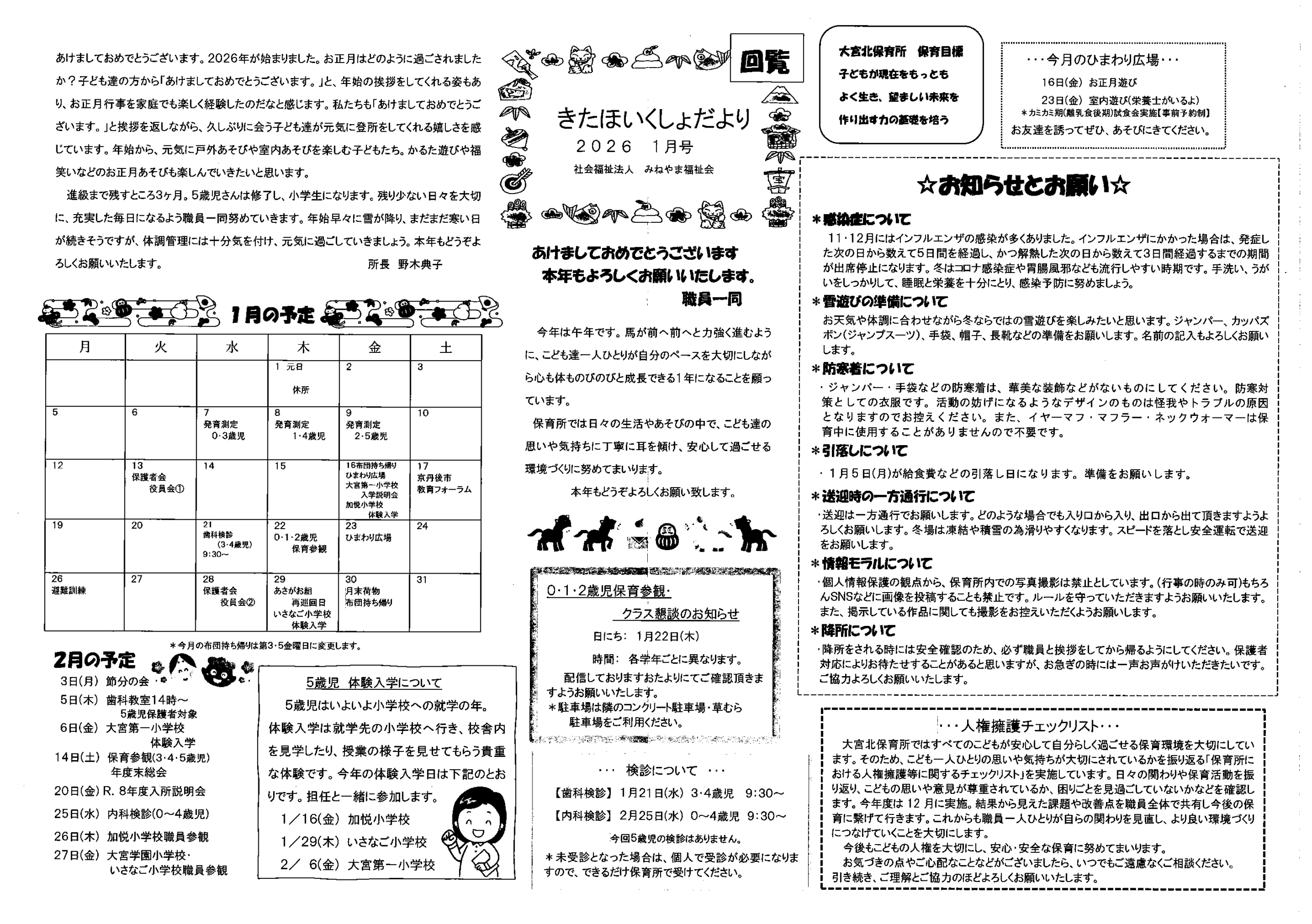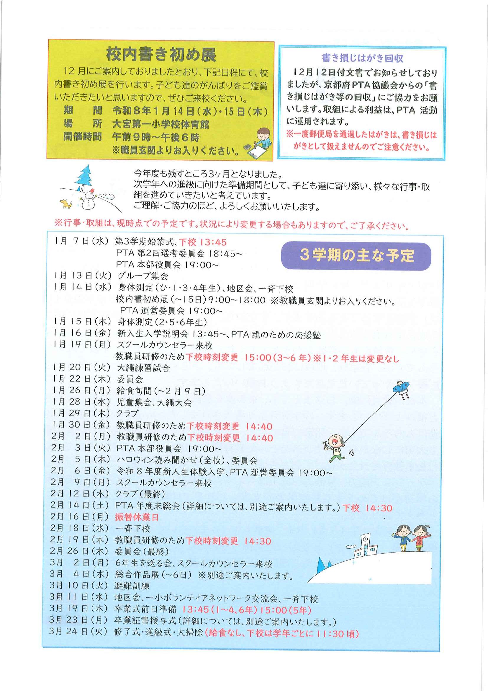 ・1月ふれあいサロン ・大宮駐在所広報紙 大宮パトロール1月号 ・大野神社歳時記(第24号) 裏面 ・保幼小中一貫教育だより 裏面 ・大宮中学校だより1月号 裏面 ・一小の子(12月24日号) 裏面 ・〃(1月7日号) 裏面 ・きたほいくしょだより1月号 ・大宮市民局NEWSおおみやトピックス