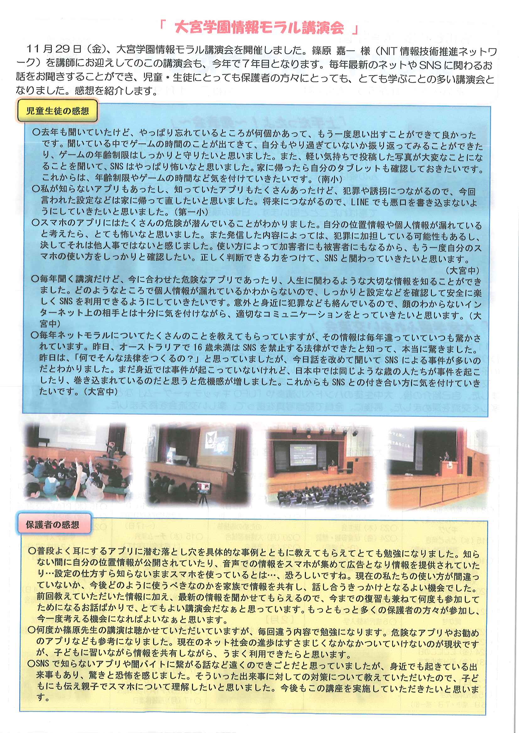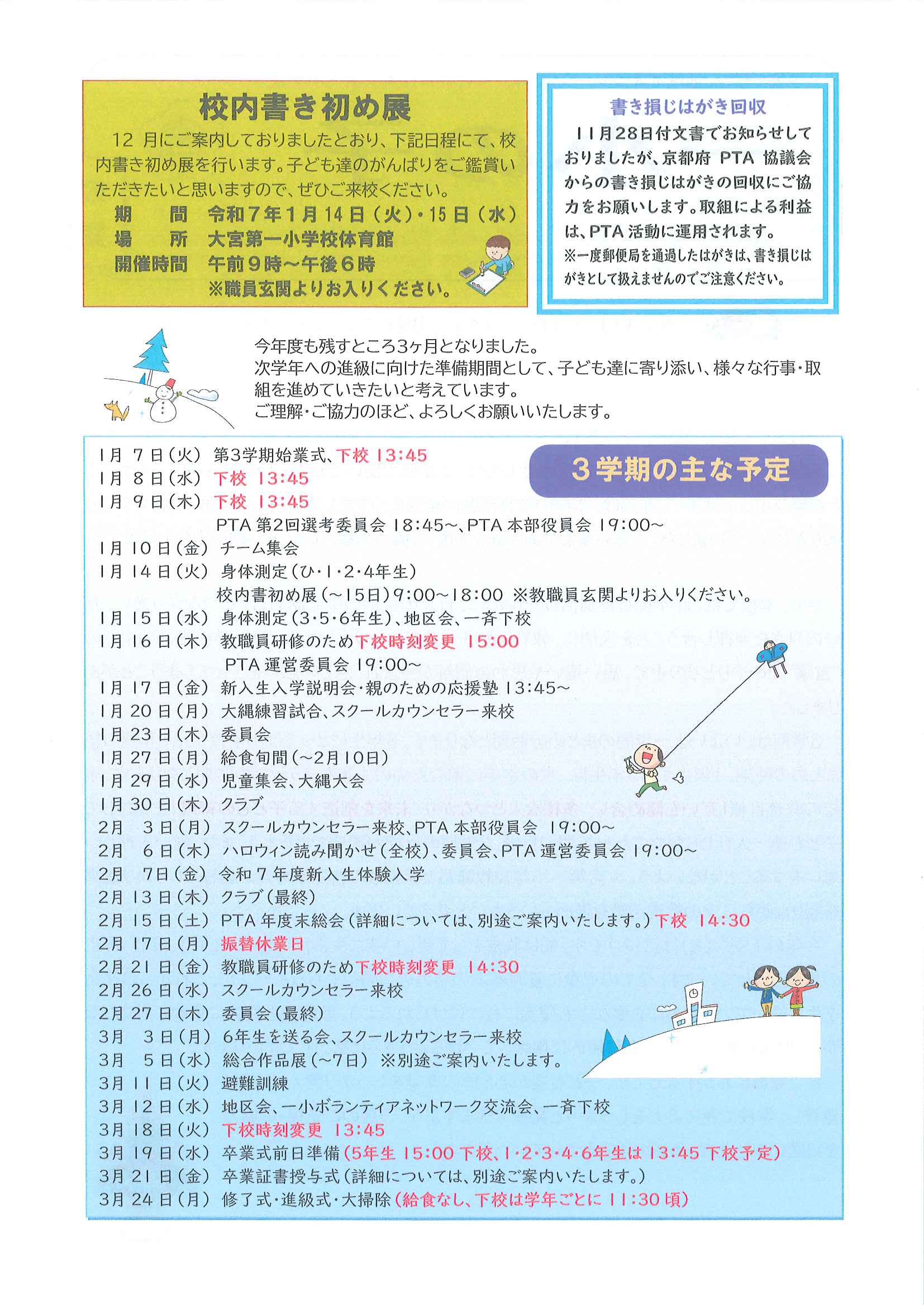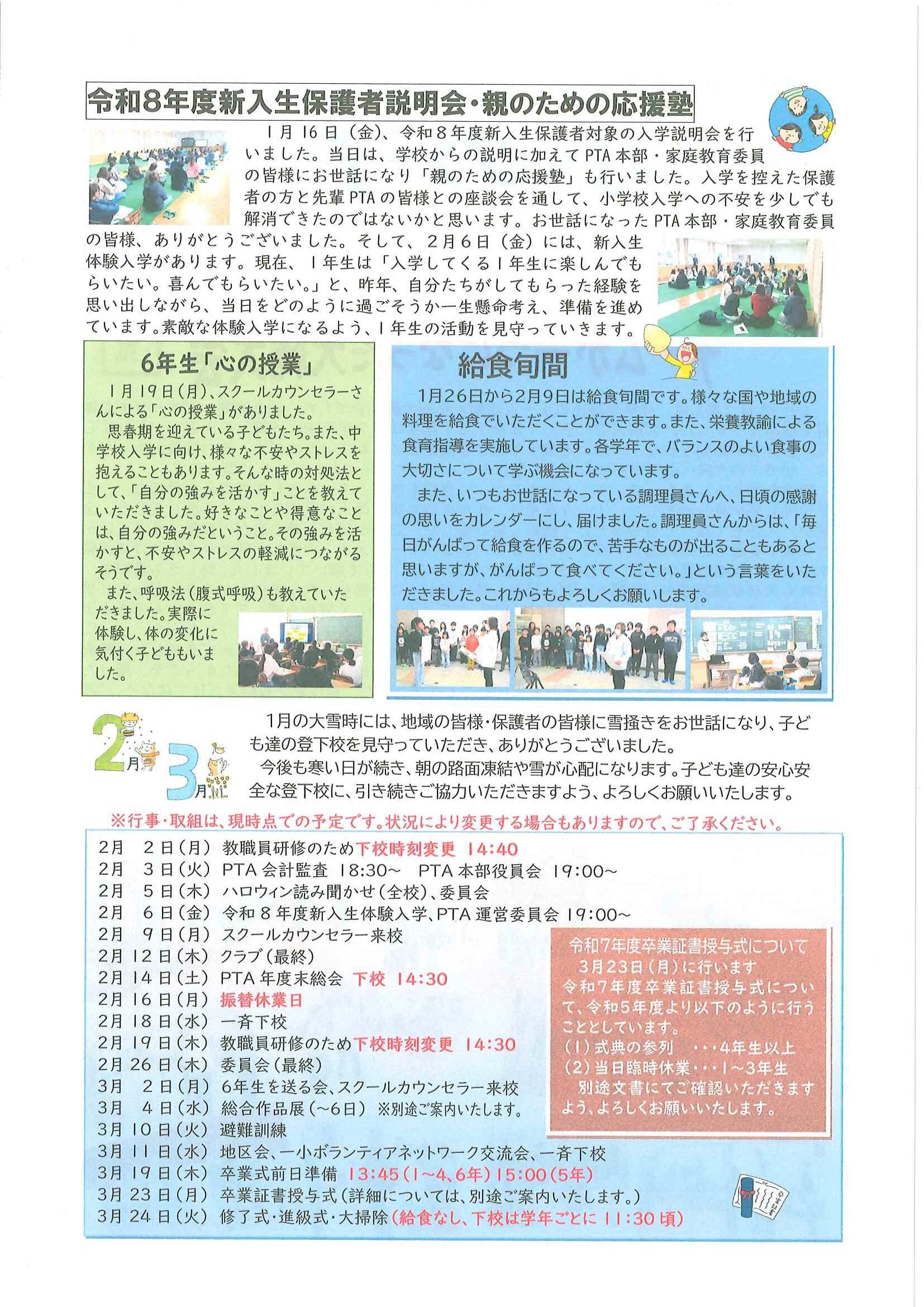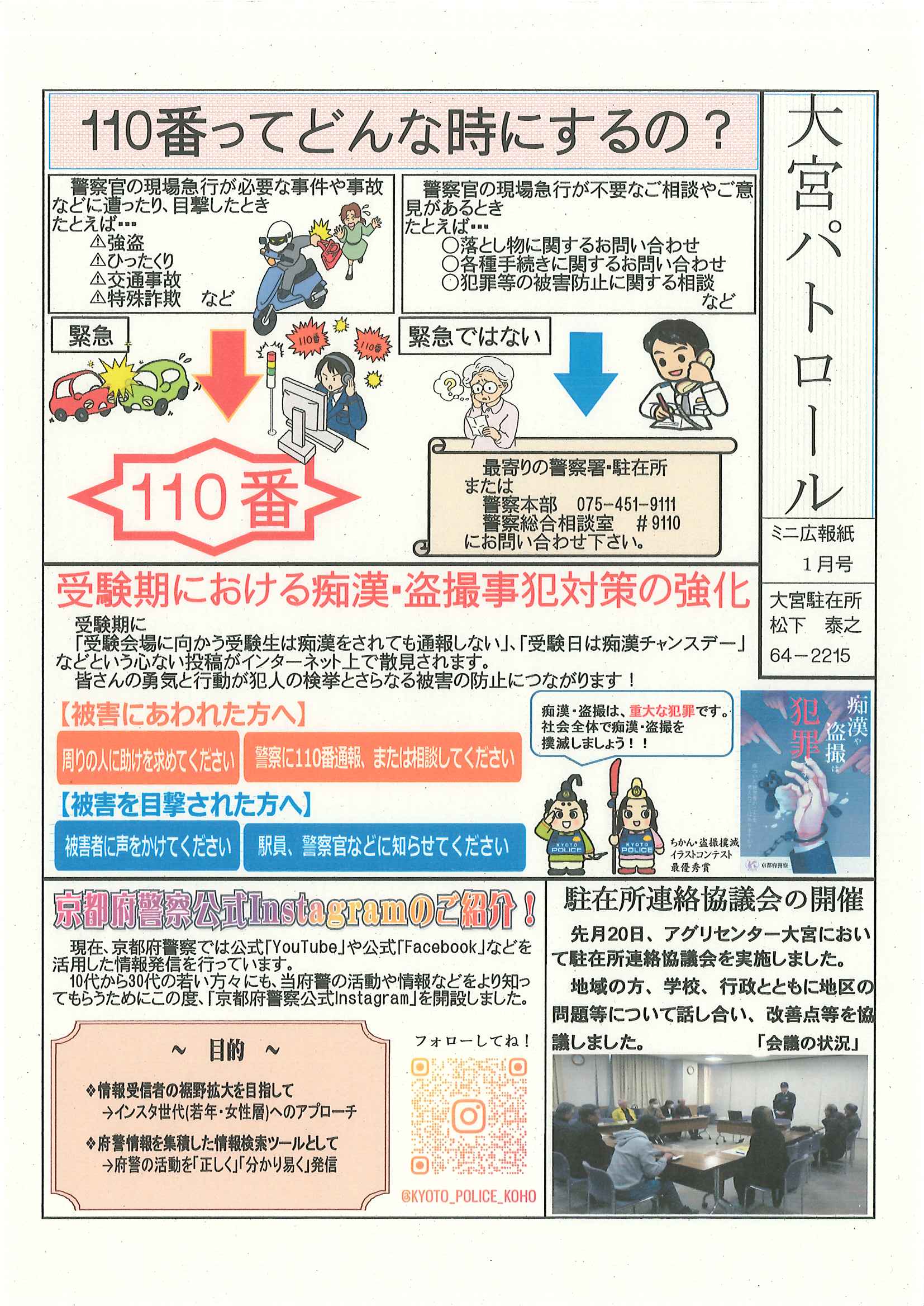 ・1月ふれあいサロン ・大宮駐在所広報紙 大宮パトロール1月号 ・大野神社歳時記(第24号) 裏面 ・保幼小中一貫教育だより 裏面 ・大宮中学校だより1月号 裏面 ・一小の子(12月24日号) 裏面 ・〃(1月7日号) 裏面 ・きたほいくしょだより1月号 ・大宮市民局NEWSおおみやトピックス
