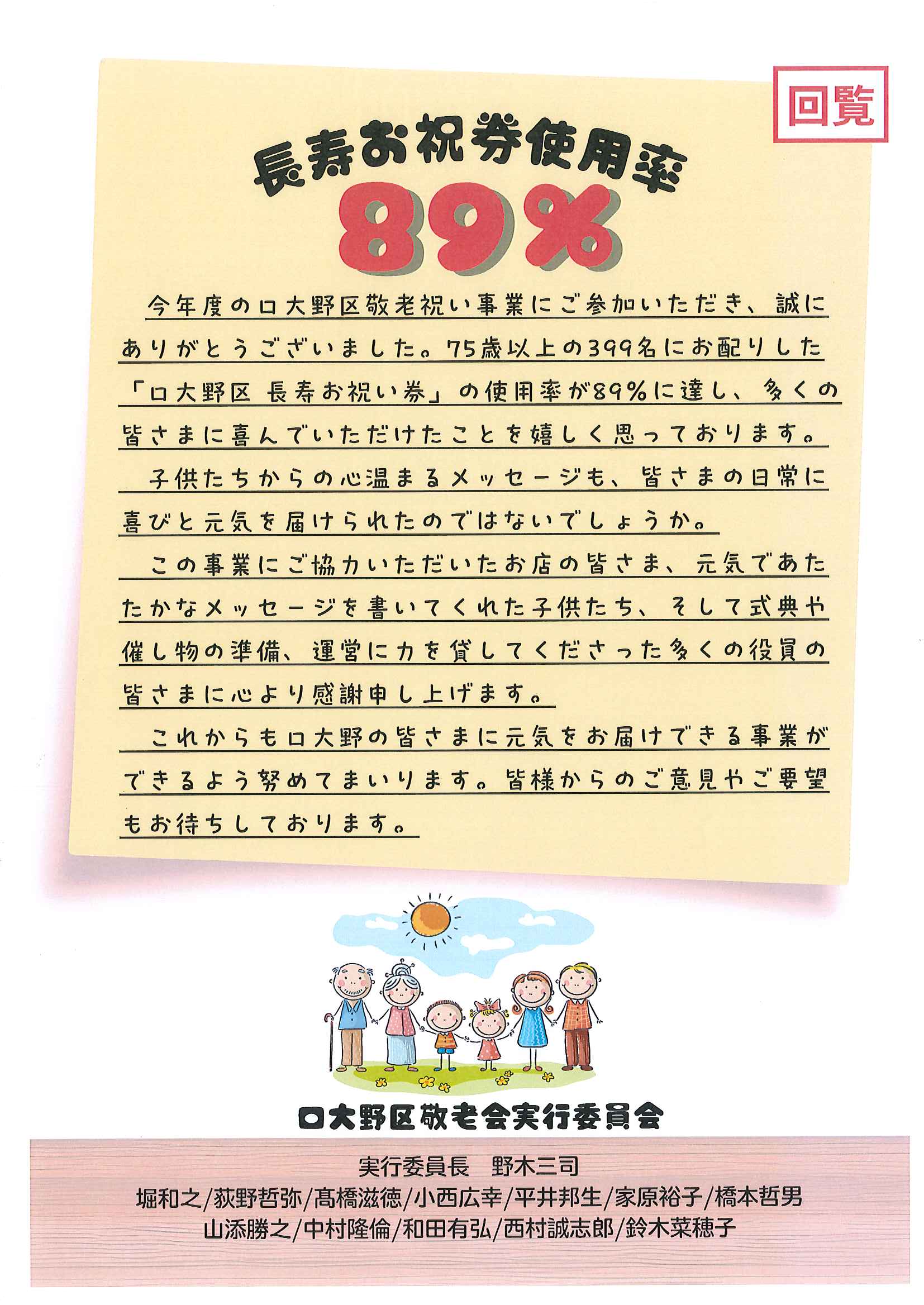 <隣組長様あて>・地区敬老会お礼のメッセージカードのとりまとめのお願い