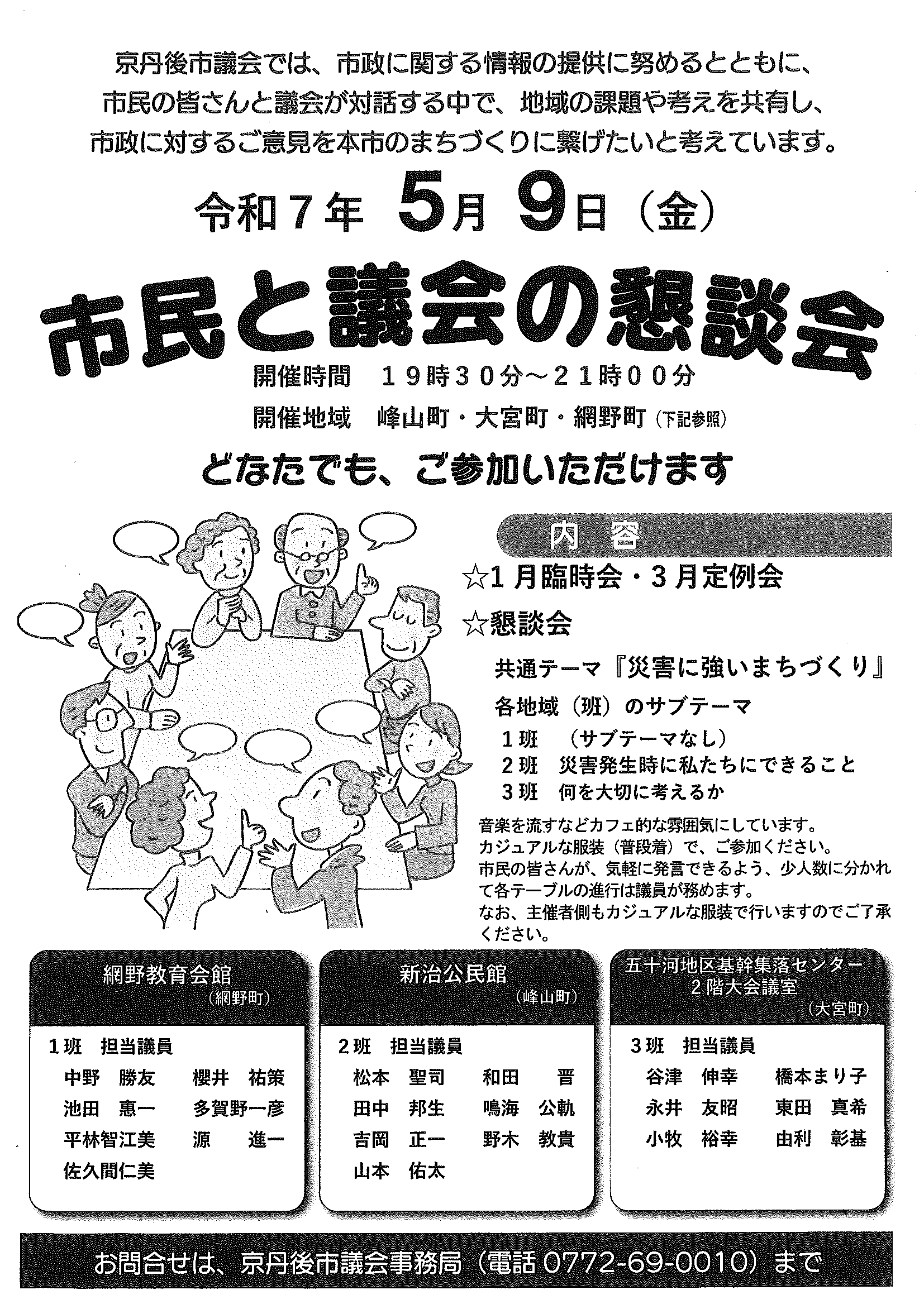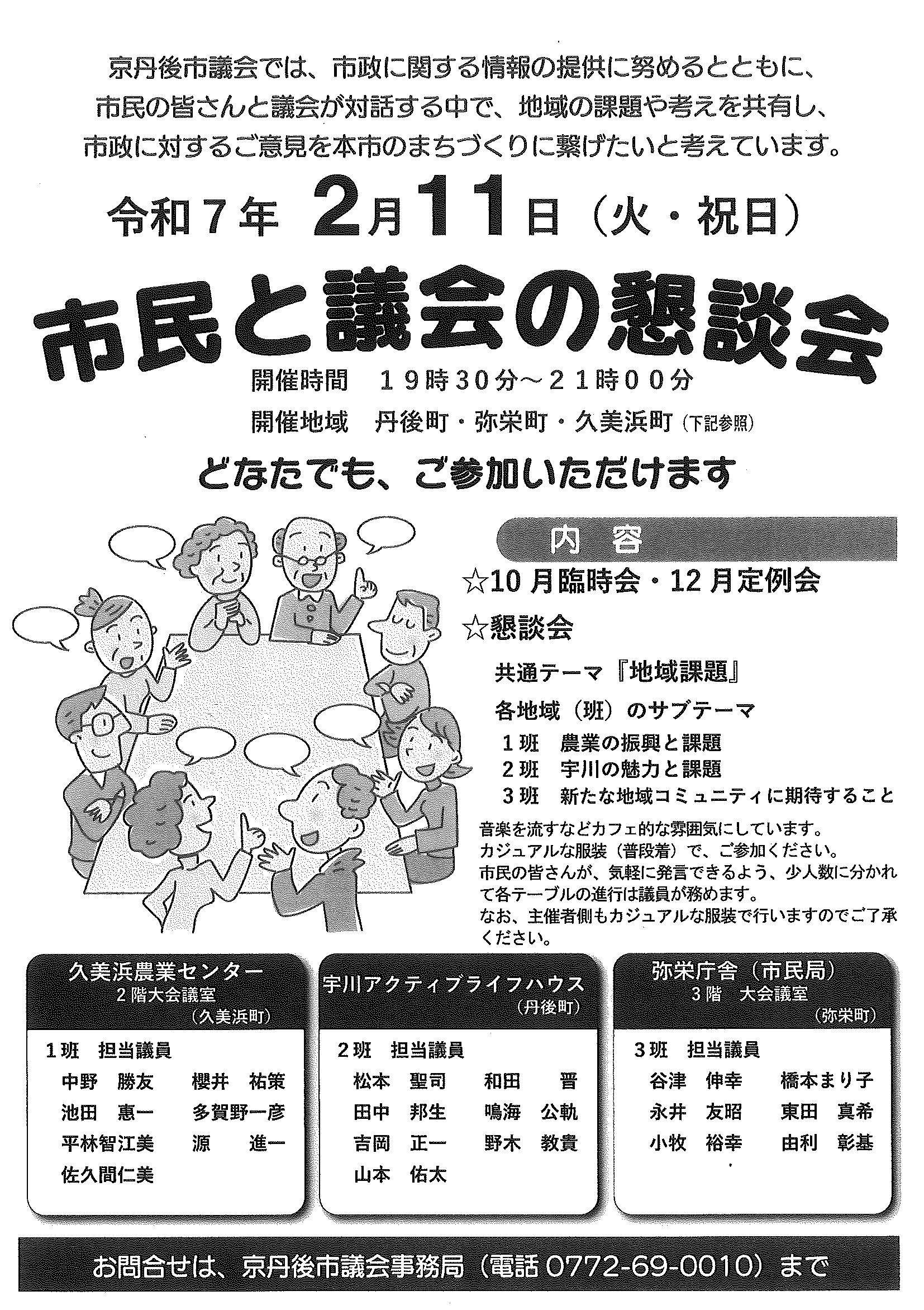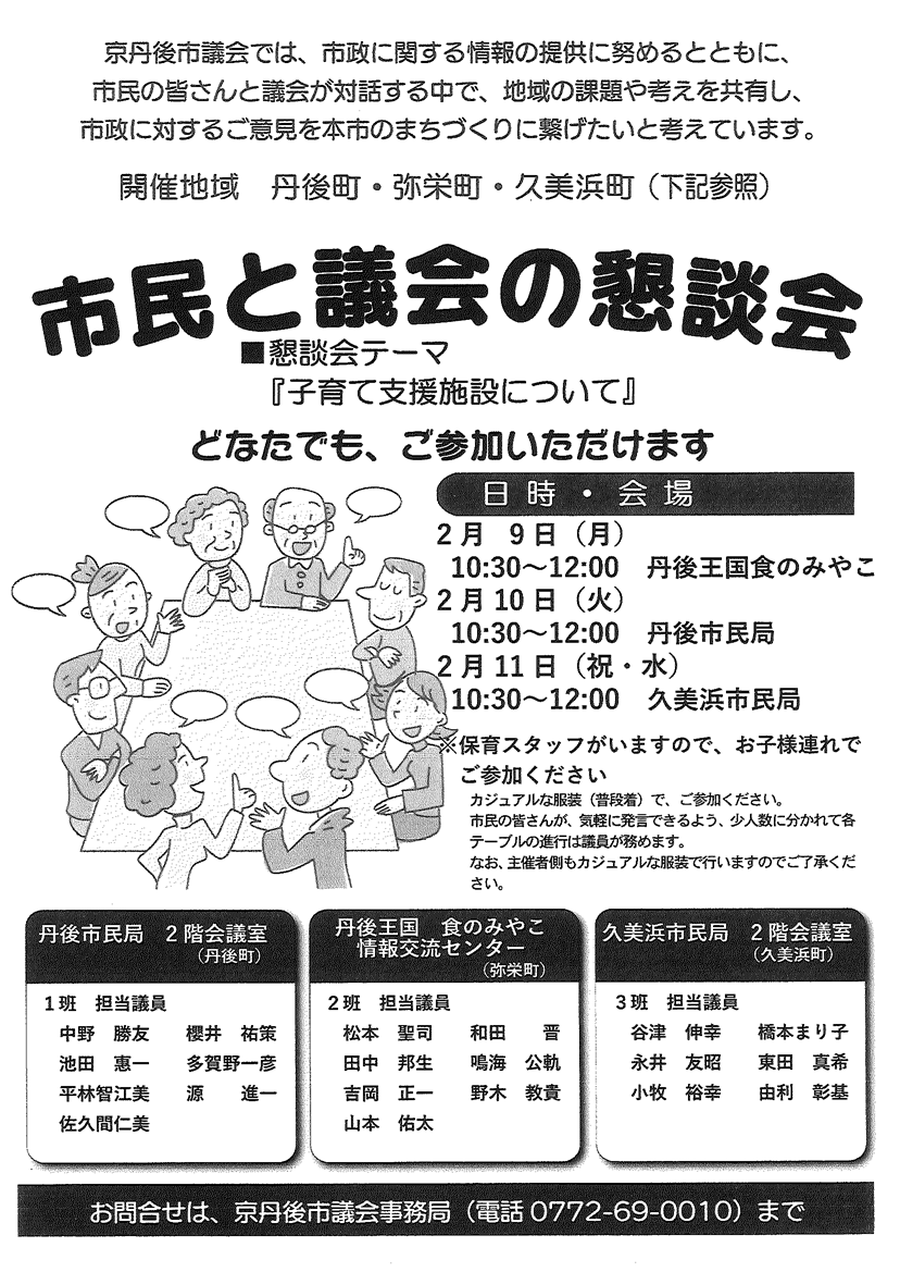 <2月26日> ・広報京丹後3月号 ・新たなコミュニティ推進大会 裏面 ・京丹後市公共交通ガイドブック臨時号 裏面 ・第2回丹後ウッドフェス 裏面 ・令和7年度職業訓練講座(夜間)ガイド 2面 3面 4面
