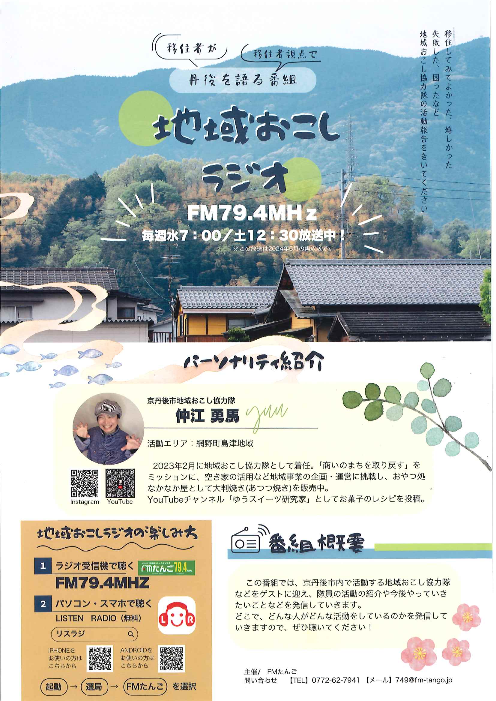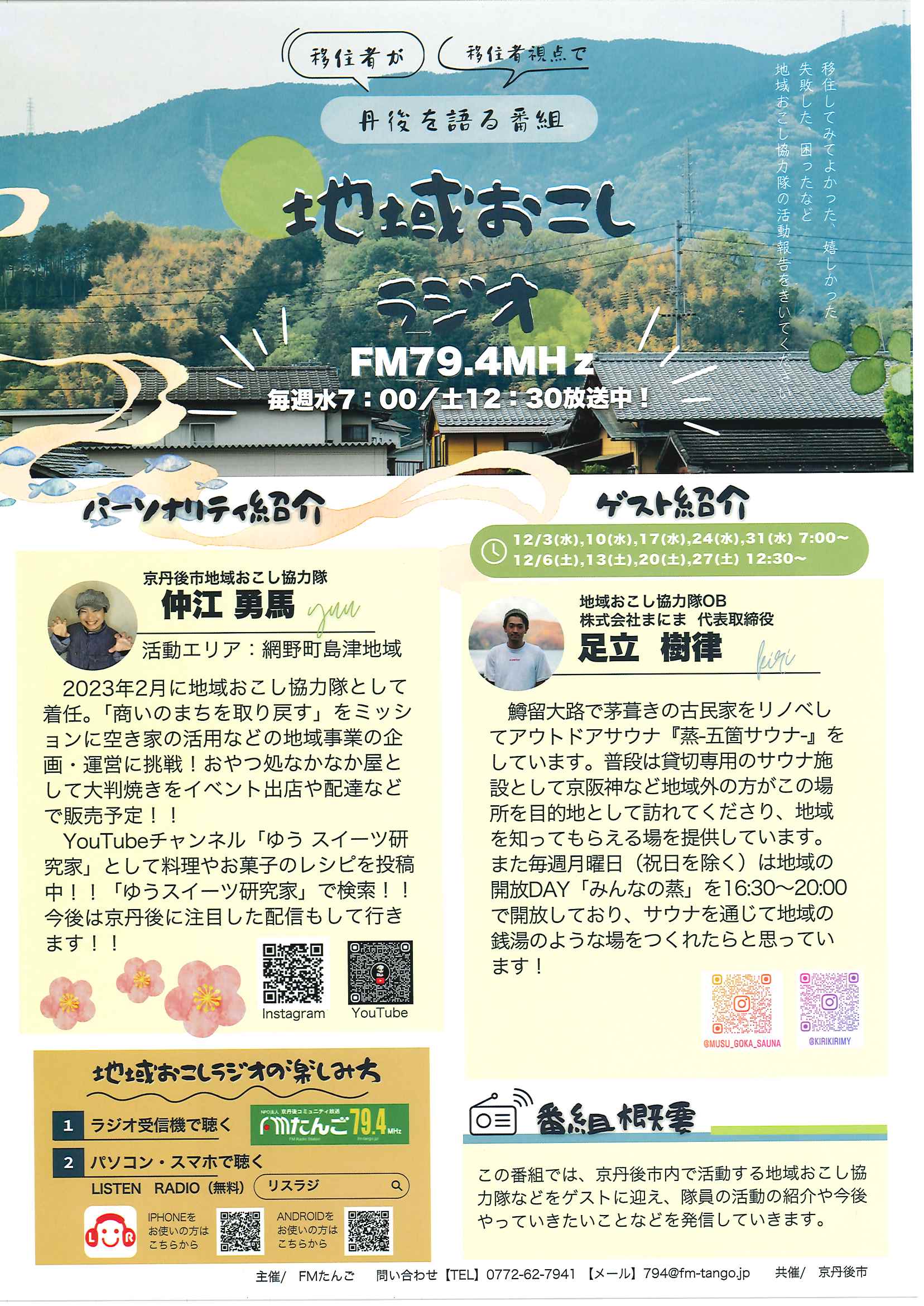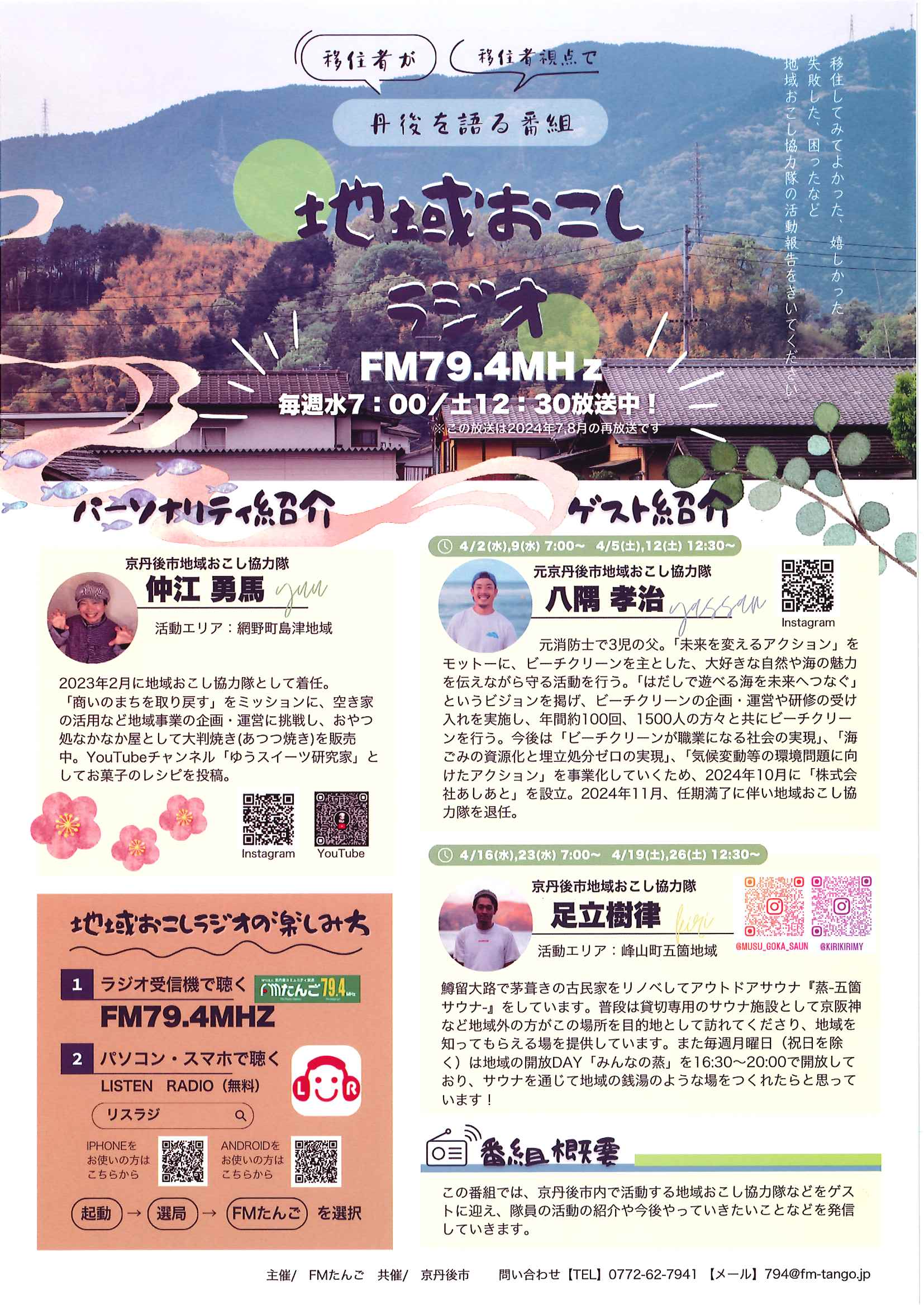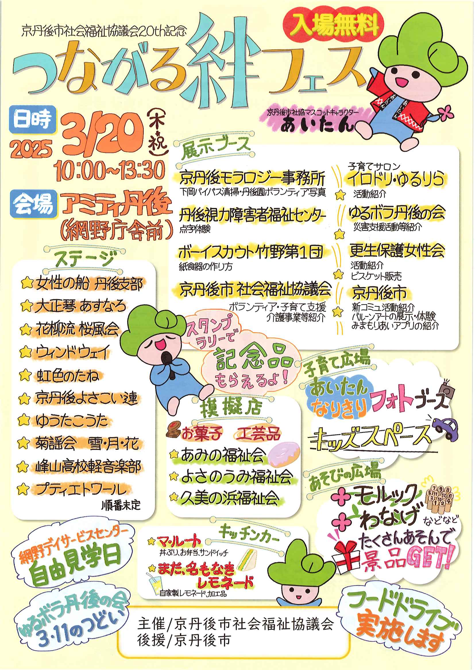 <3月11日> ・広報京丹後お知らせ版 ・京丹後市公共交通ガイドブック ・令和7年度家庭ごみ収集カレンダー ・大宮町新コミ区長協議会からのお知らせ 2面 3面 4面 ・つながる絆フェス 裏面 ・ヨガ体験とお片付け講座