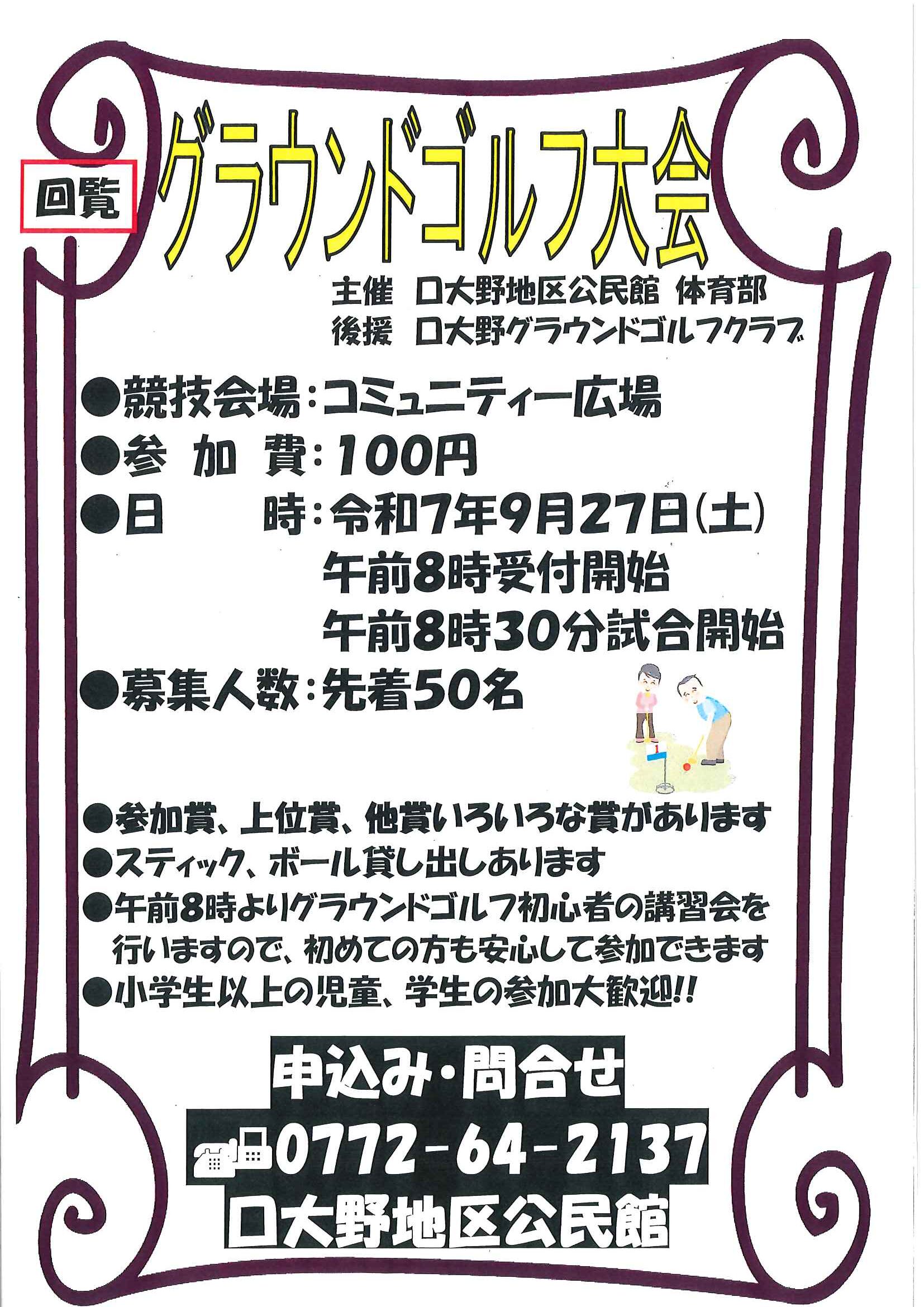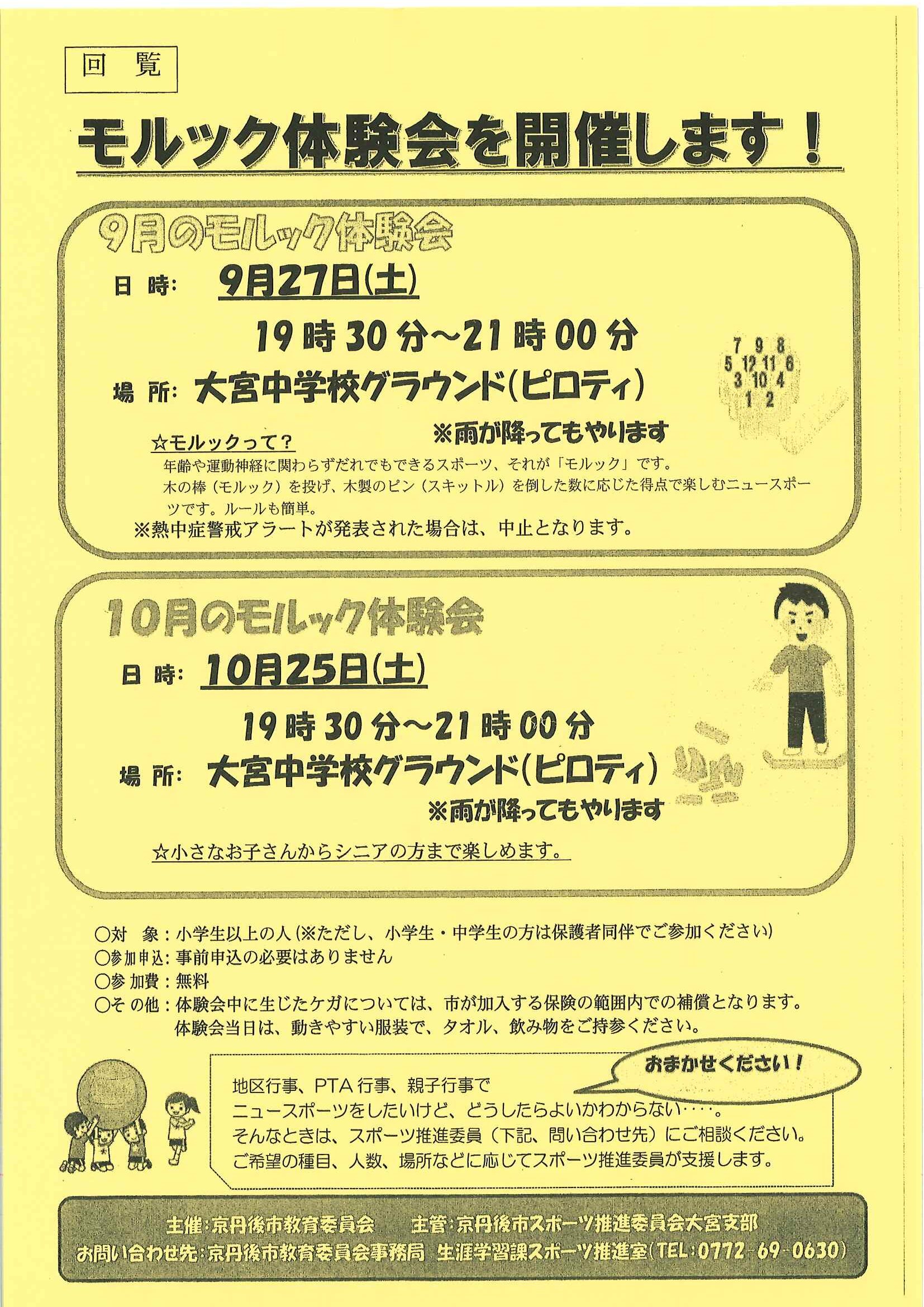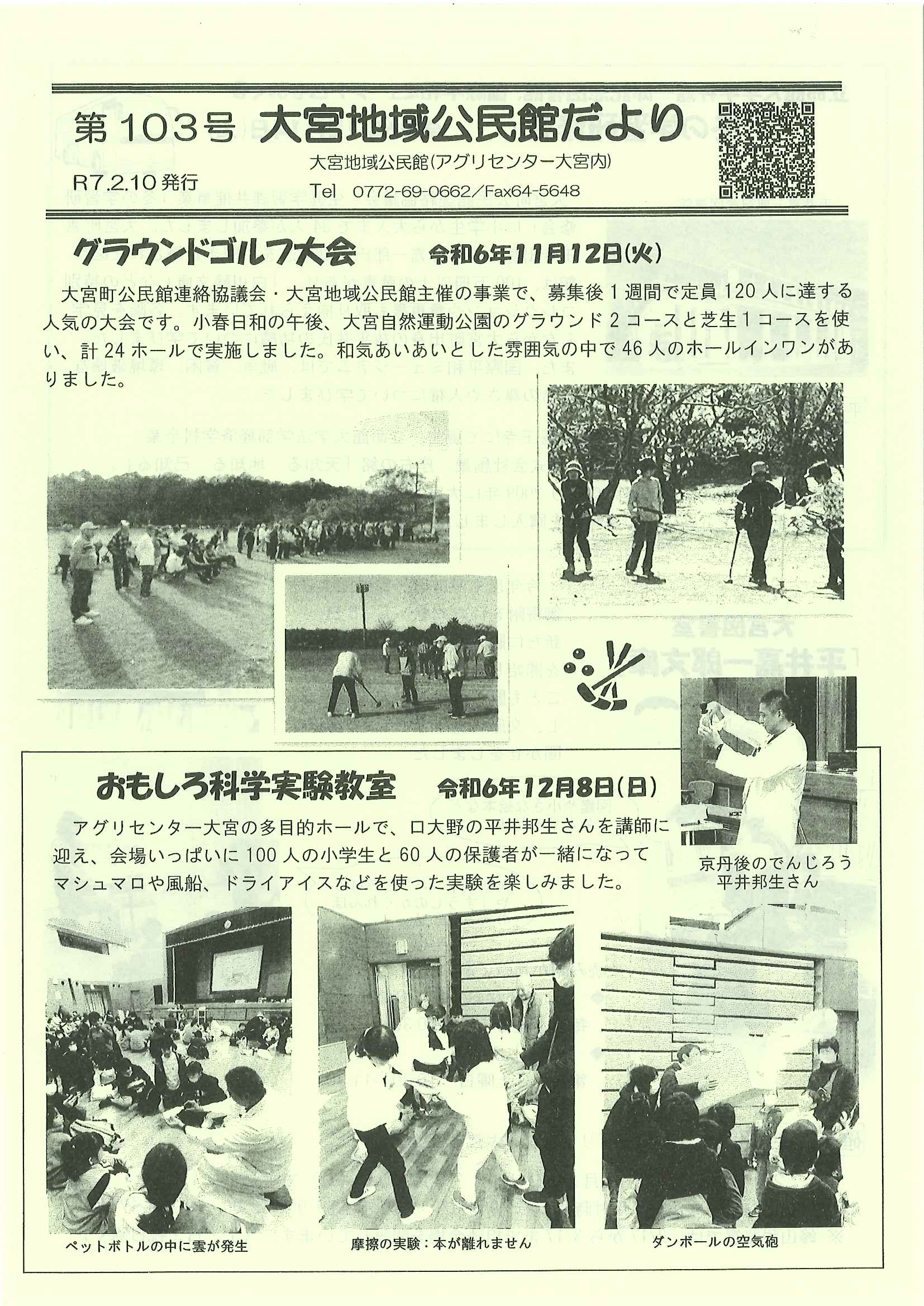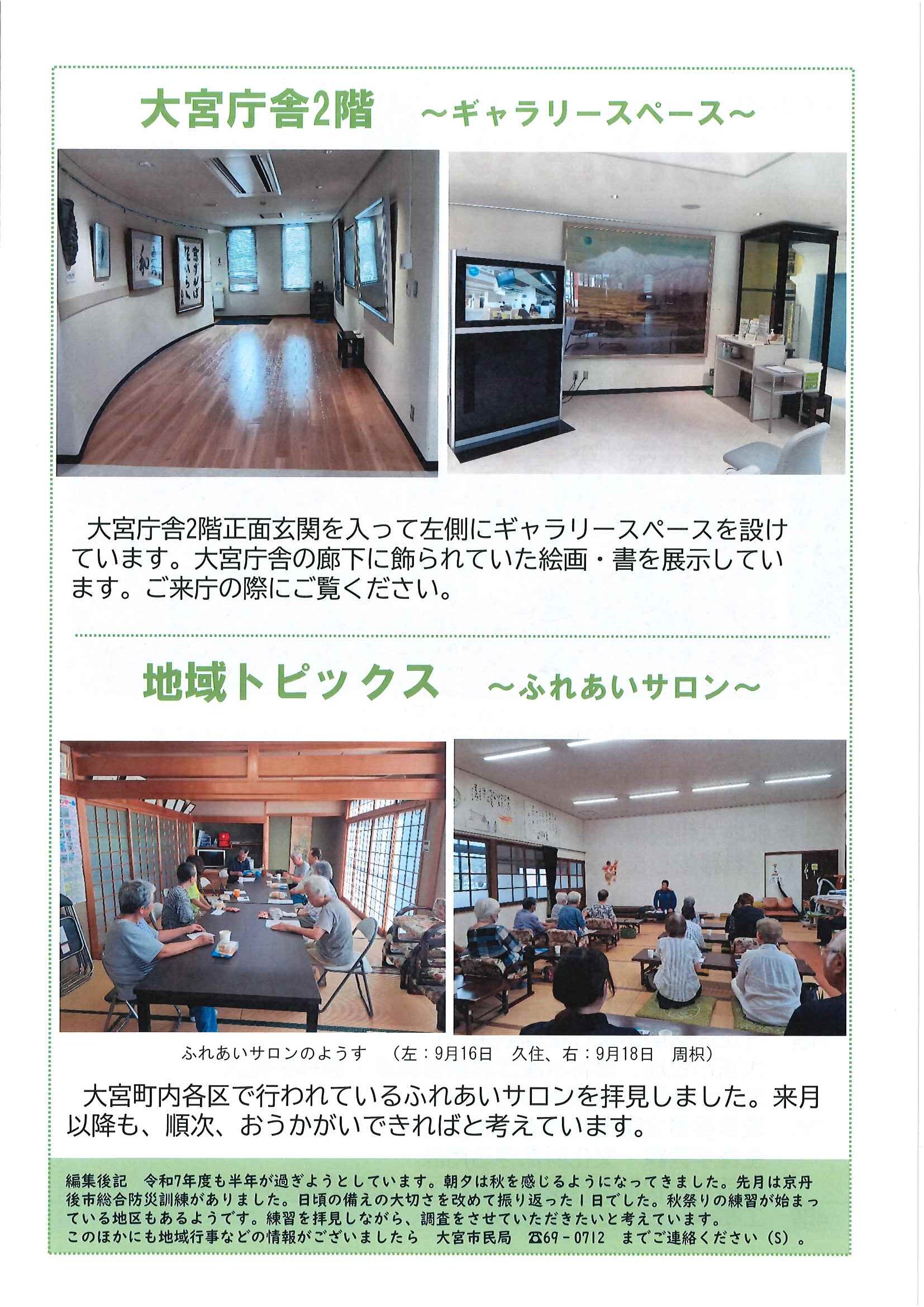 ・口大野公民館主催グラウンドゴルフ大会 ・にこにこサロン(子育てサロン)9月 ・口大野地区公民館だより 裏面 ・大宮市民局NEWSおおみやトピックス 裏面 ・モルック体験会 ・ゆかたノオト和装で紡ぐ夏の夕暮れ 裏面 ・地域おこしラジオ丹後を語る番組 ・下水道工事予定表(8/25-) ・きたほいくしょだより