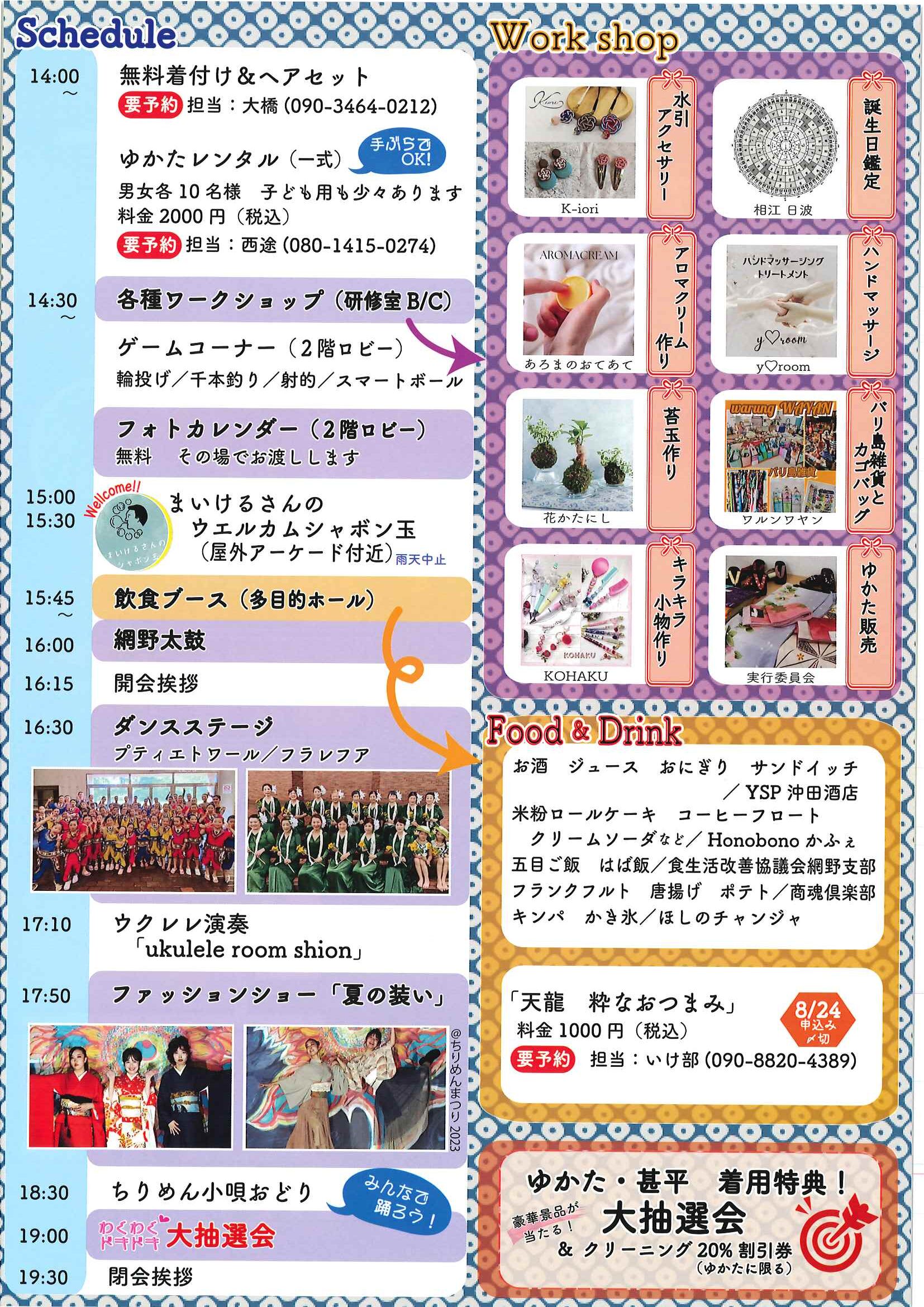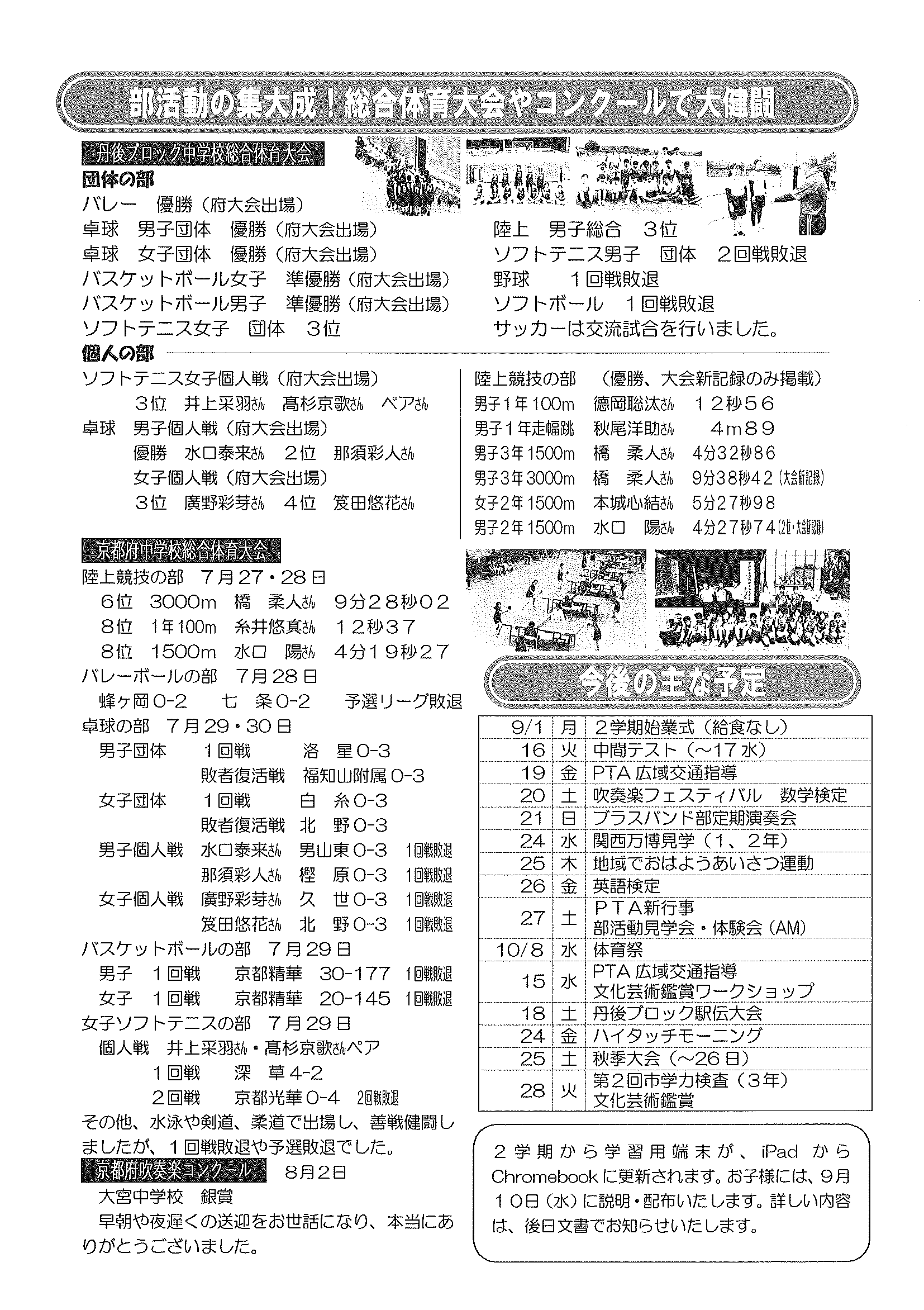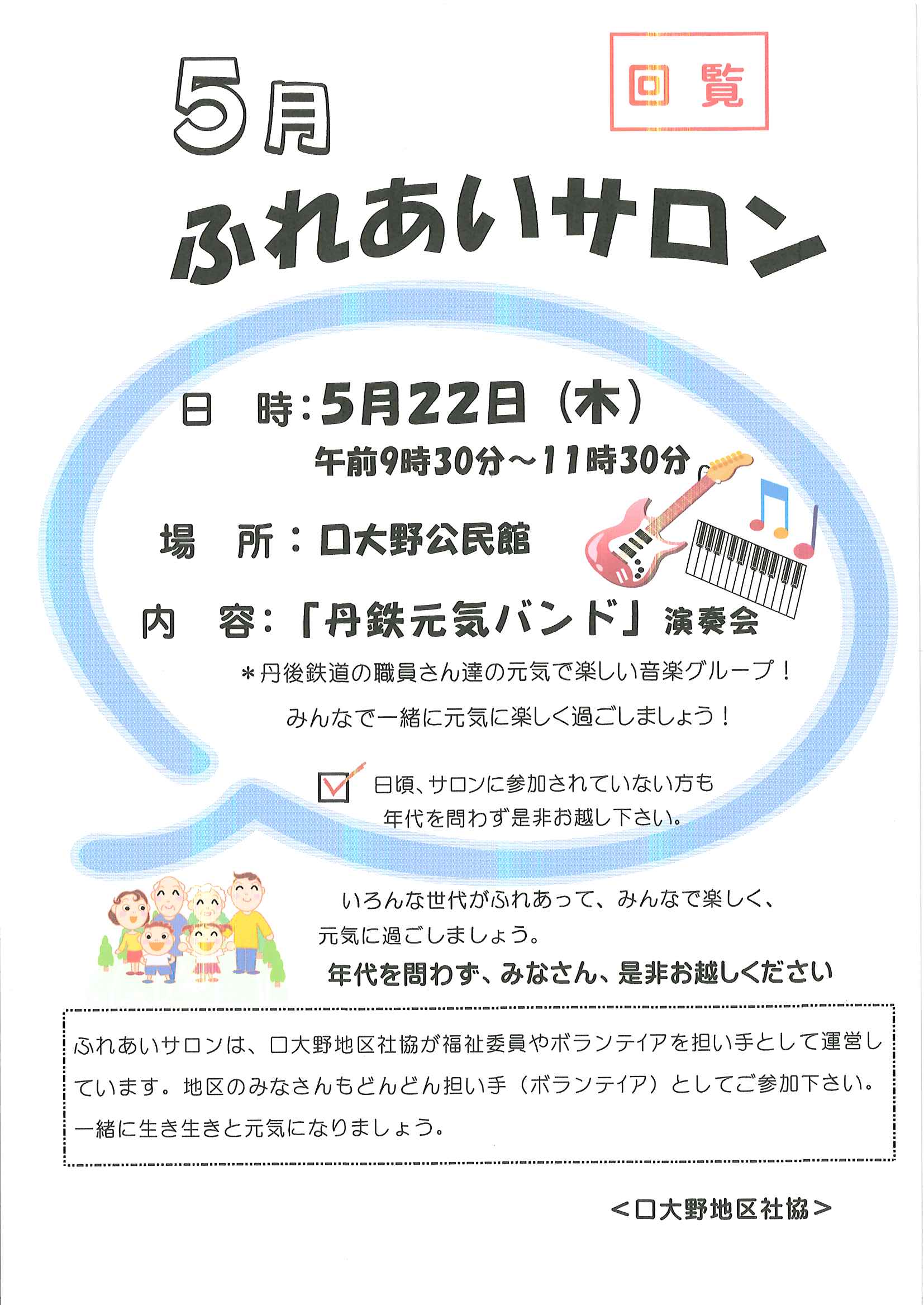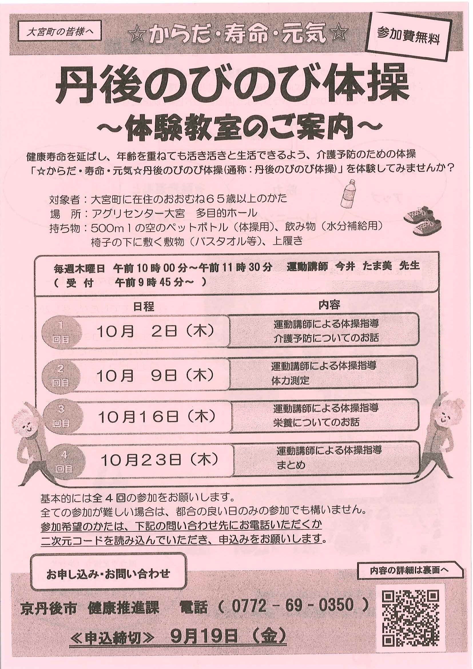 ・口大野公民館主催グラウンドゴルフ大会 ・にこにこサロン(子育てサロン)9月 ・口大野地区公民館だより 裏面 ・大宮市民局NEWSおおみやトピックス 裏面 ・モルック体験会 ・ゆかたノオト和装で紡ぐ夏の夕暮れ 裏面 ・地域おこしラジオ丹後を語る番組 ・下水道工事予定表(8/25-) ・きたほいくしょだより