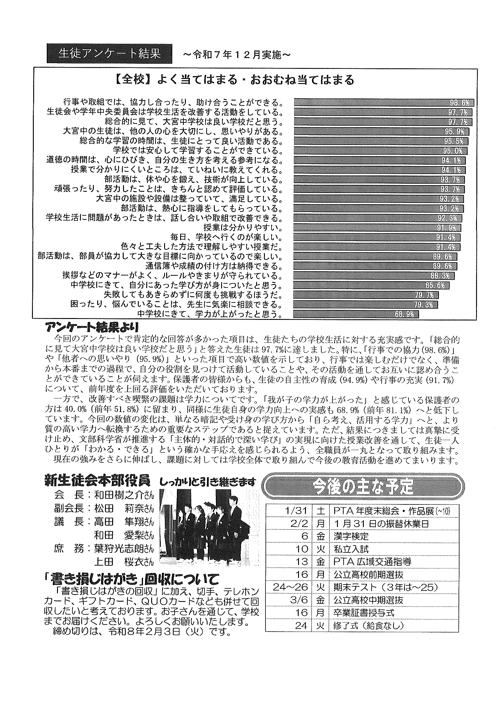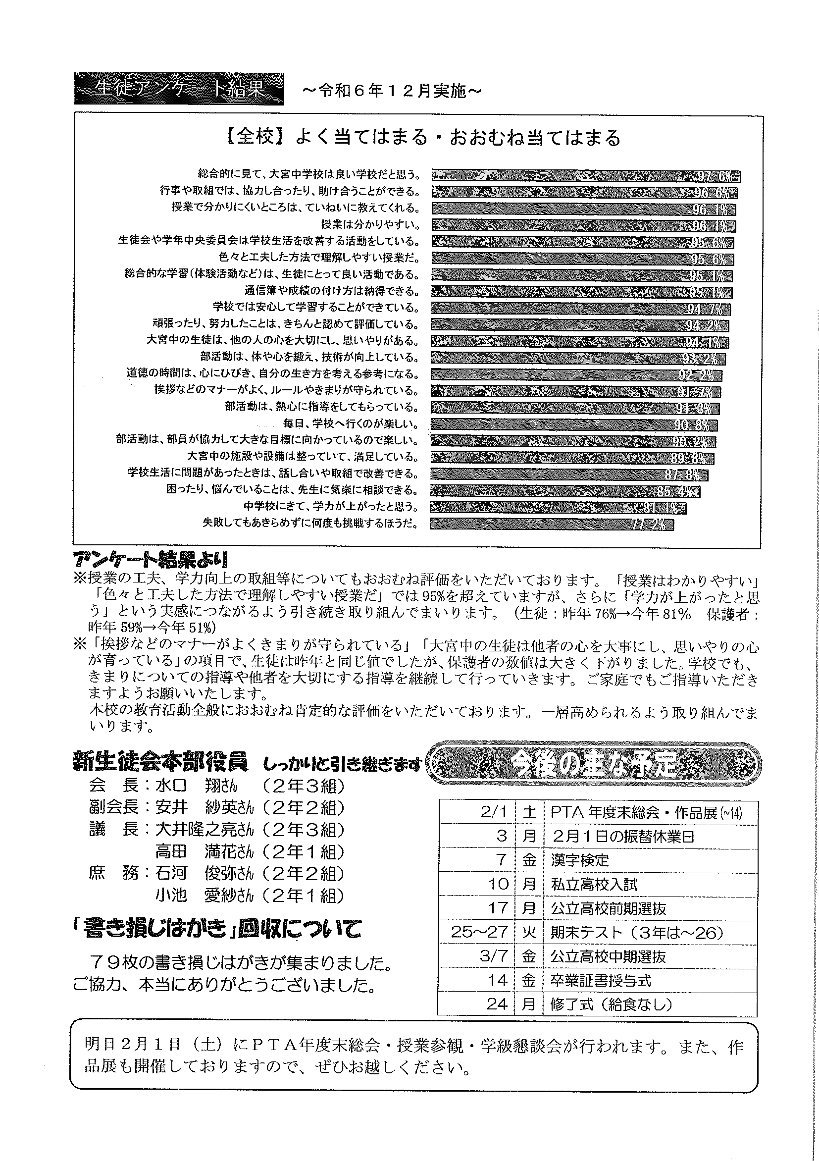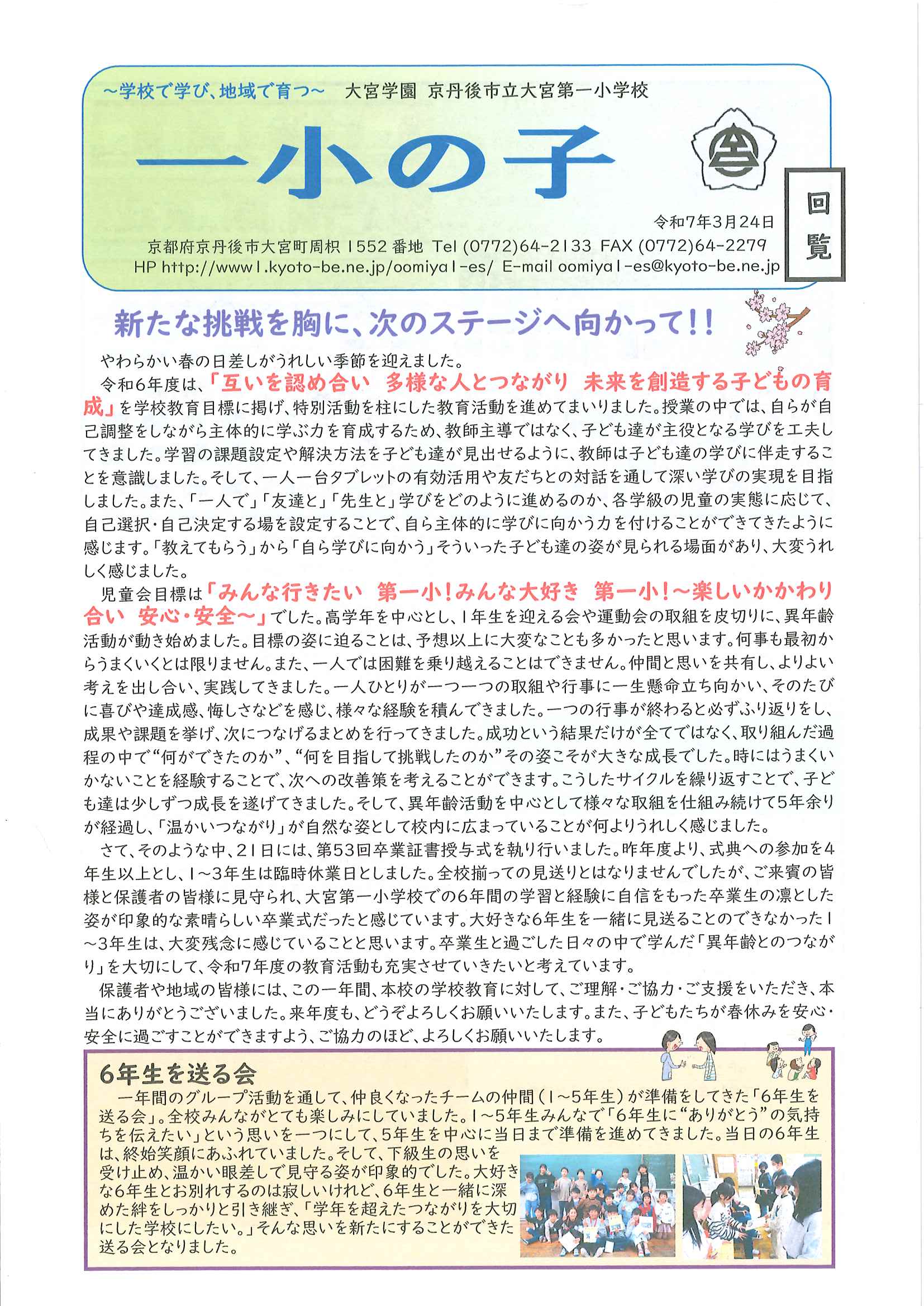 ・大宮市民局NEWSおおみやトピックス ・令和6年度歳末たすけあい運動について(お礼) ・令和6年度赤い羽根共同募金運動について(お礼) ・3月ふれあいサロン ・大宮駐在所ミニ広報紙大宮パトロール ・口大野農地環境保全員会だより ・大内峠一字観公園ノルディックウオーキング ・女性消防団員募集中 ・らくざミュージックライブ ・保幼小中一貫教育だより3/6号 裏面 ・保幼小中一貫教育だより3/10号 裏面 ・大宮中学校だより 裏面 ・一小の子 裏面