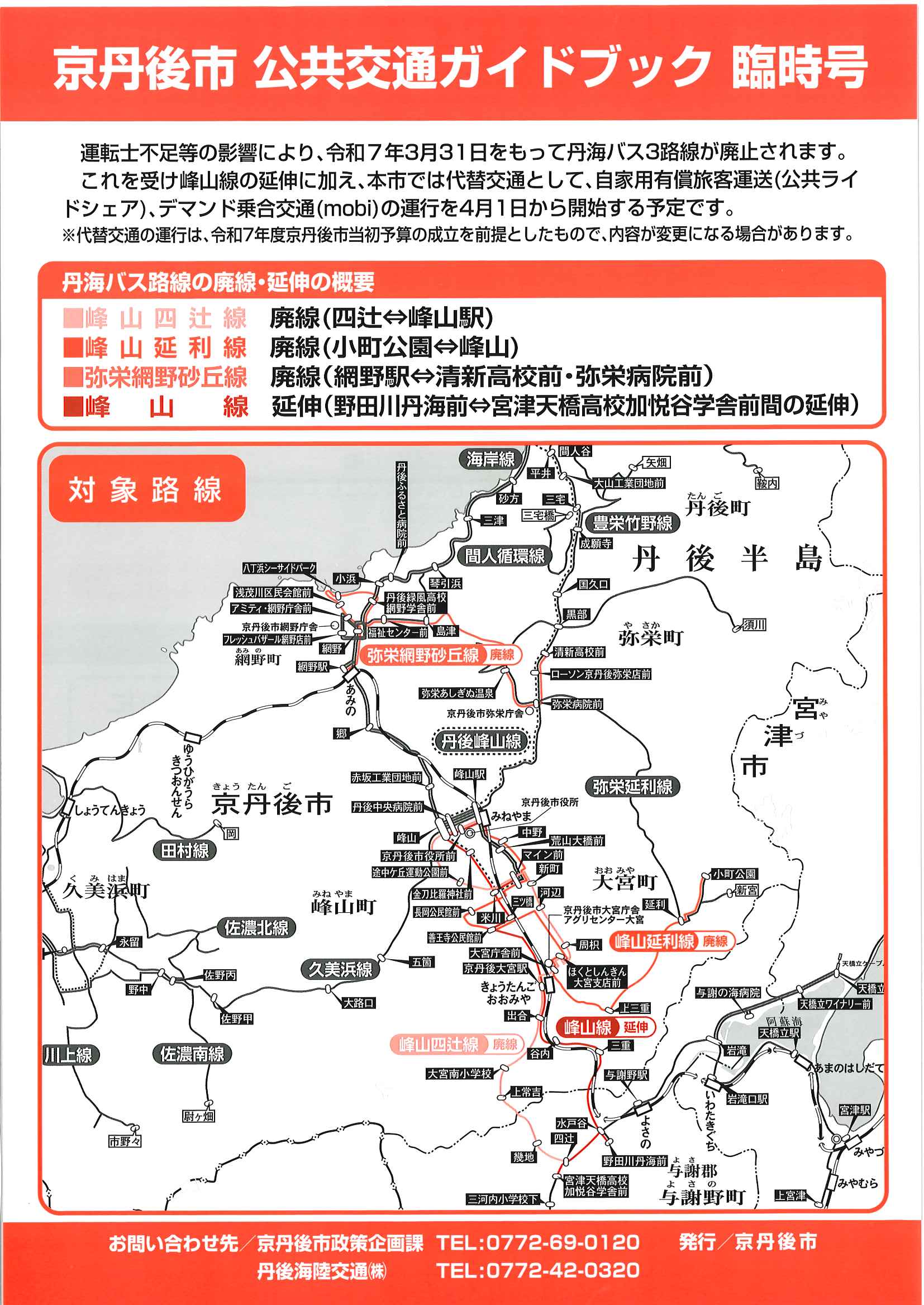参考;「広報京丹後おしらせ版」発行終了に関するお知らせ ~京丹後市HP~ 令和7年4月10日発行号(No.409)をもちまして「広報京丹後おしらせ版」の発行を終了させていただきます。 今後につきましては、毎月25日発行の「広報京丹後」の情報ガイドページにて、引き続き、市からのお知らせ情報等を掲載させていただきます。