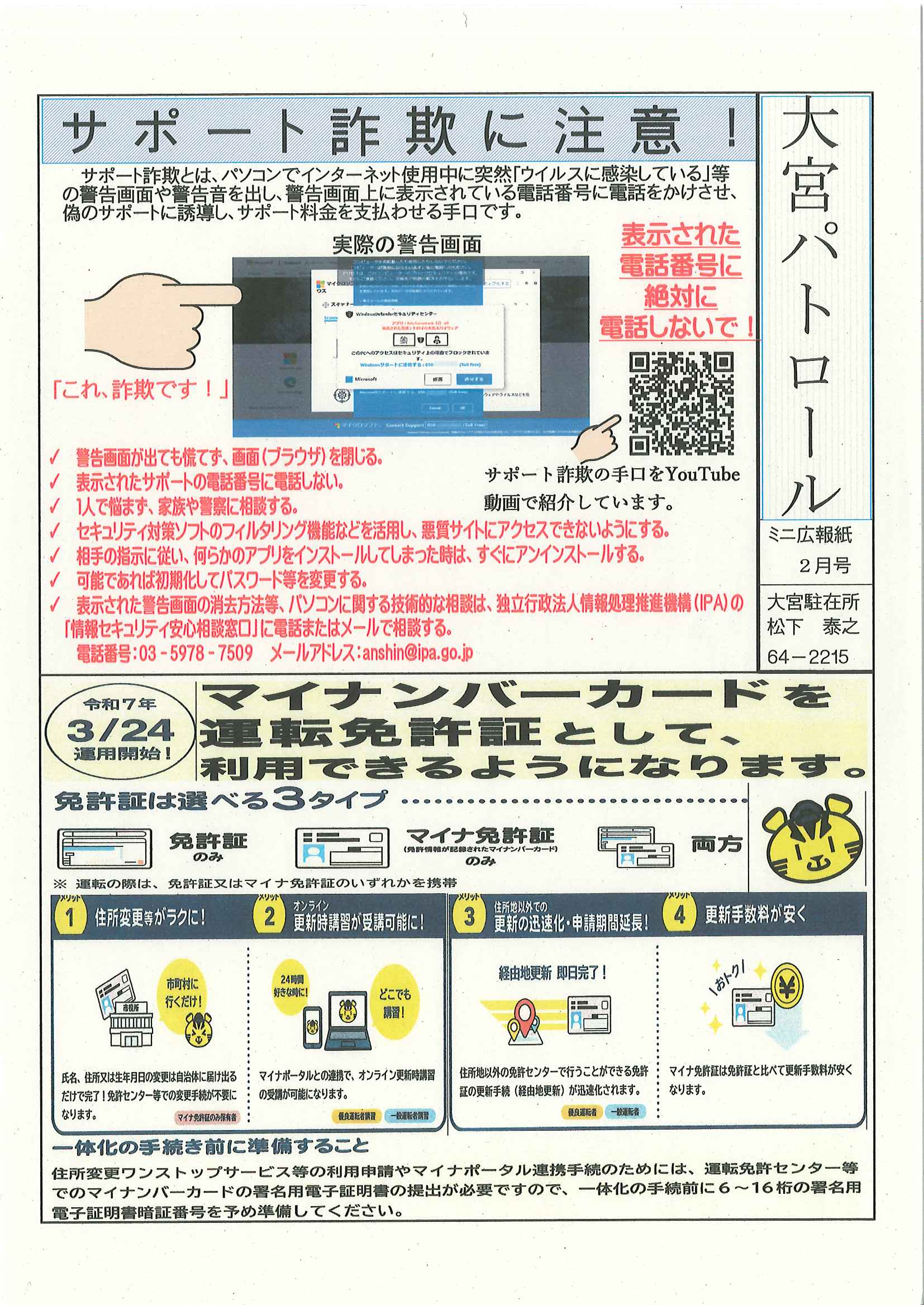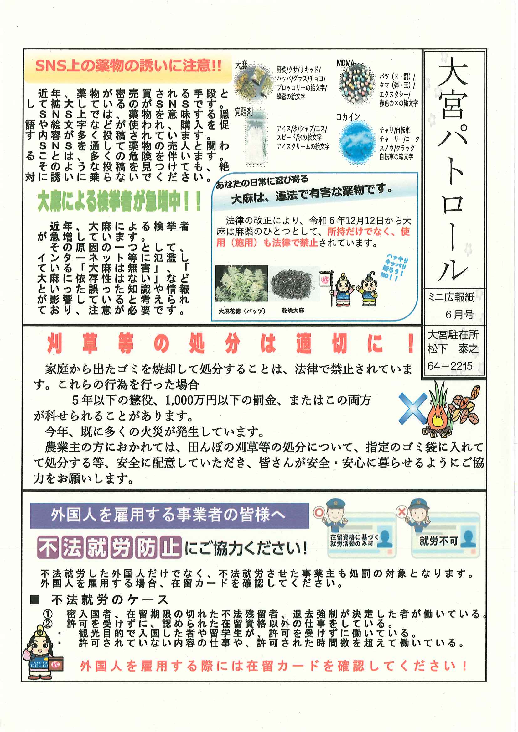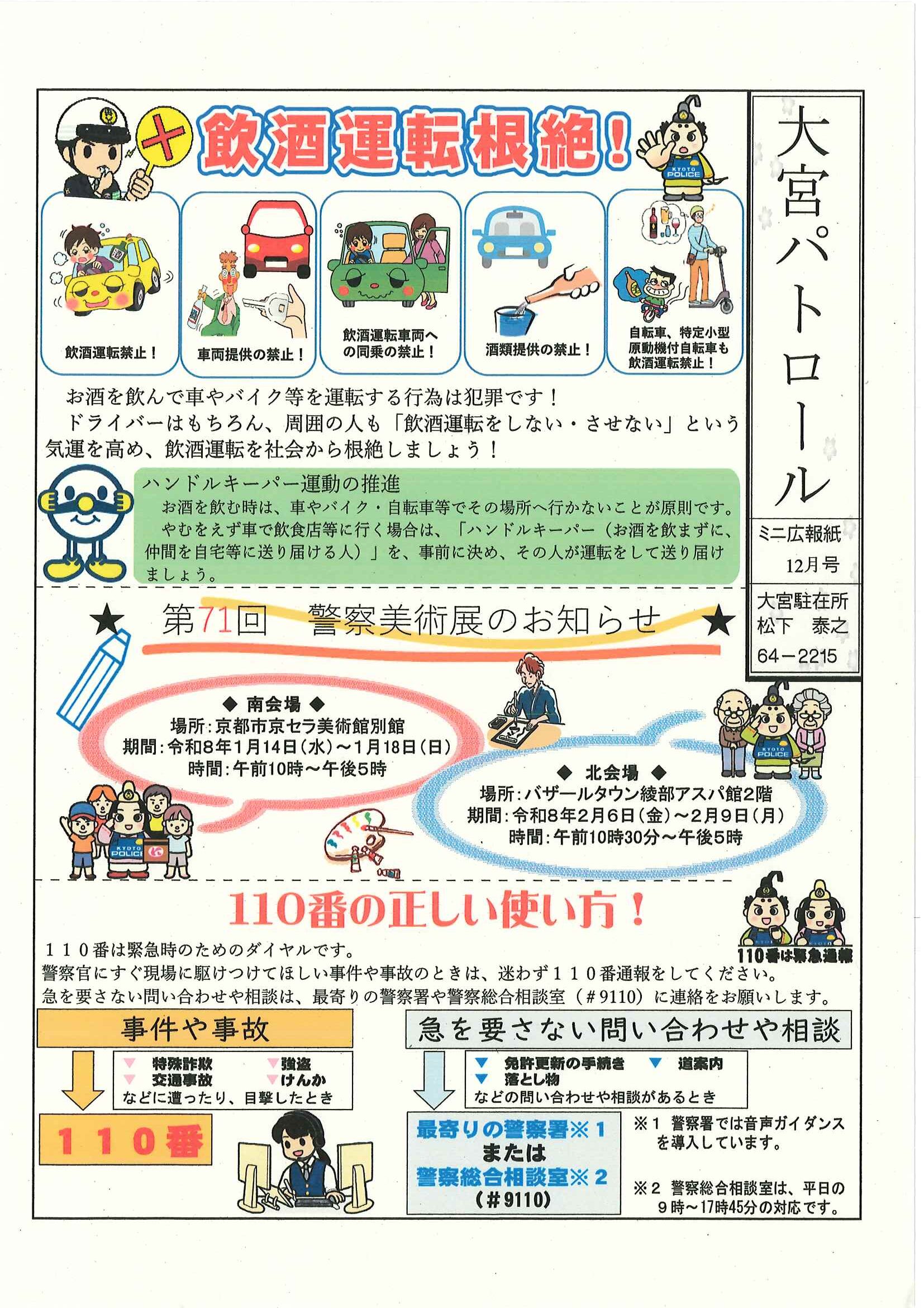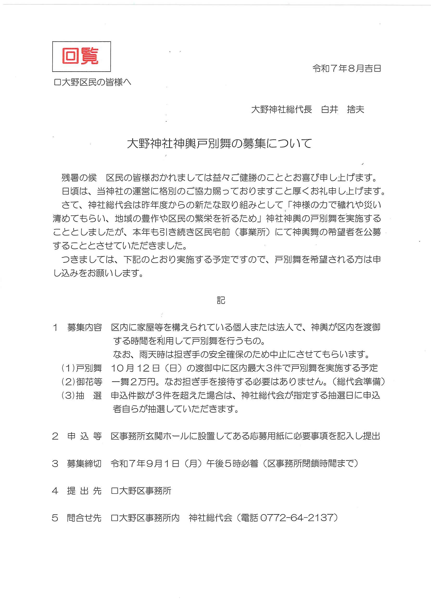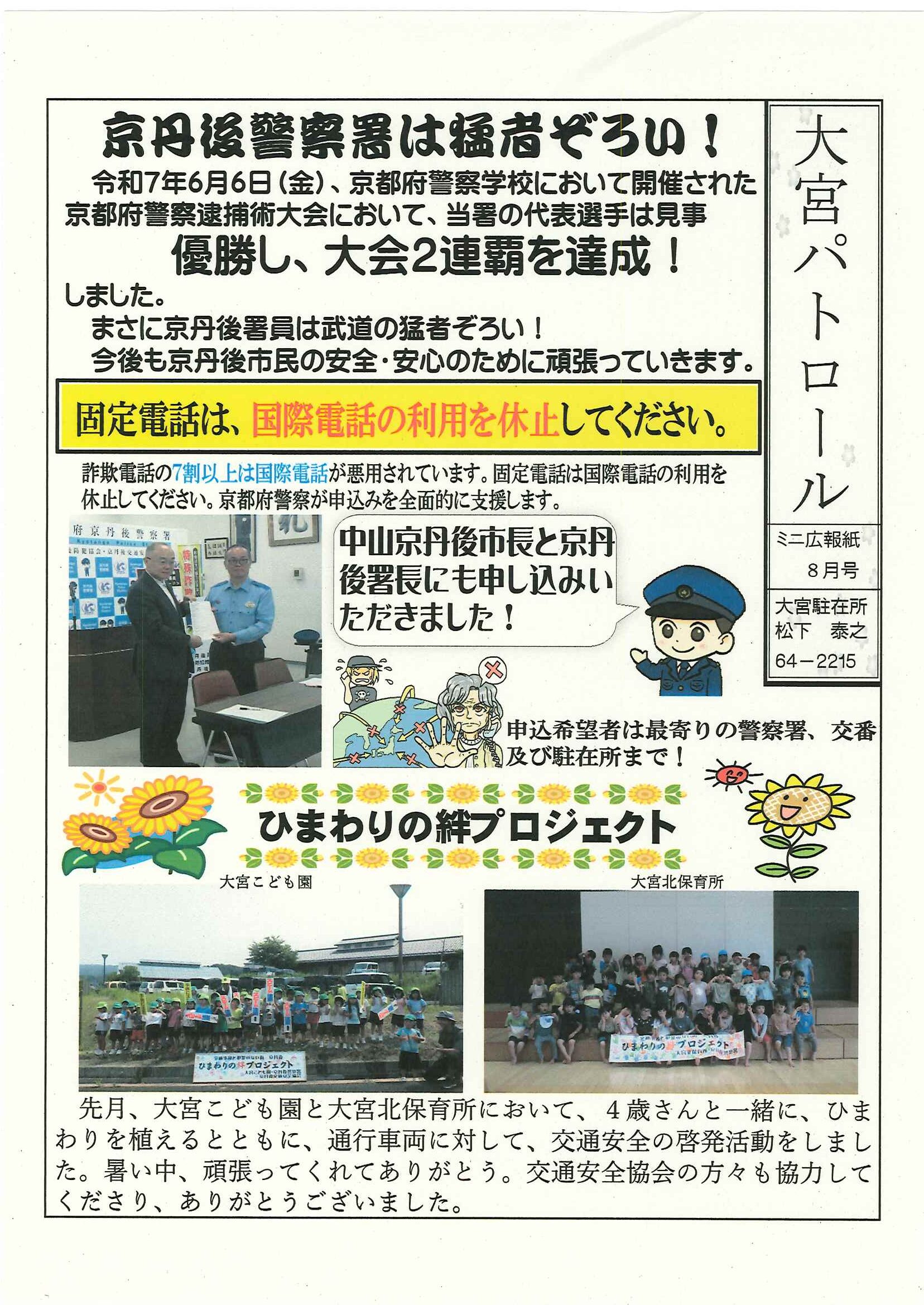 ・大野神社神輿戸別舞の募集について ・大宮駐在所ミニ広報紙大宮パトロール8月号