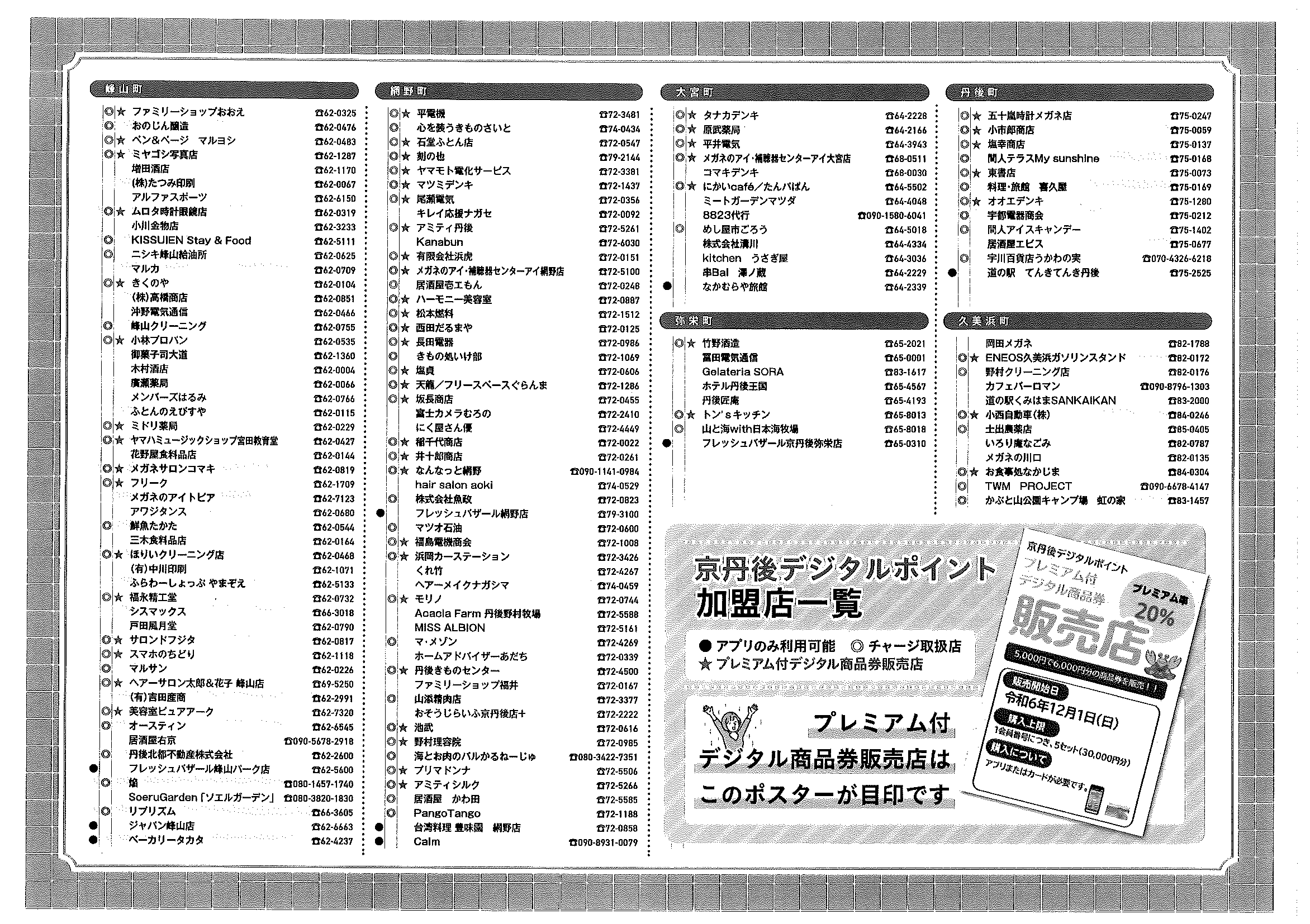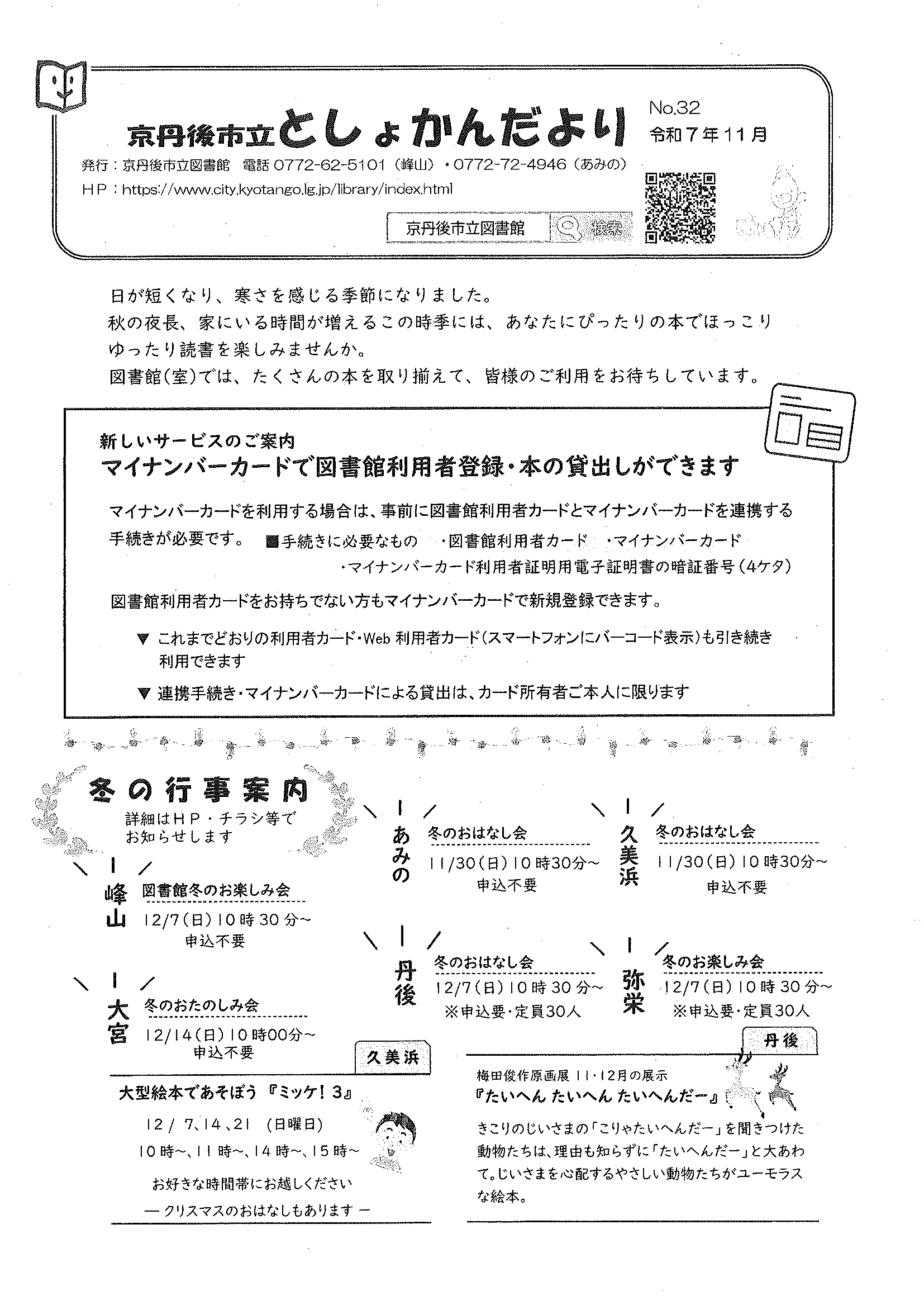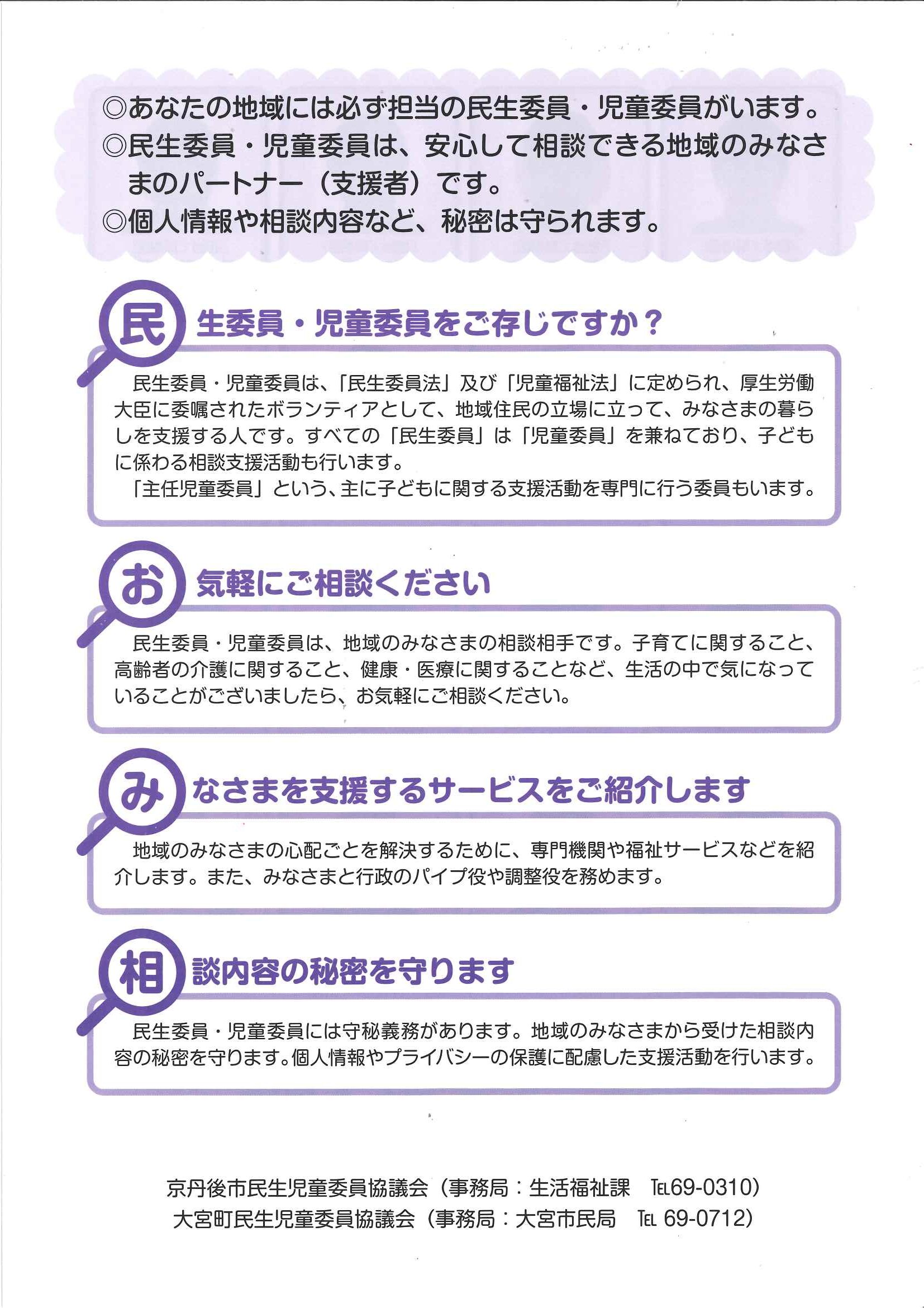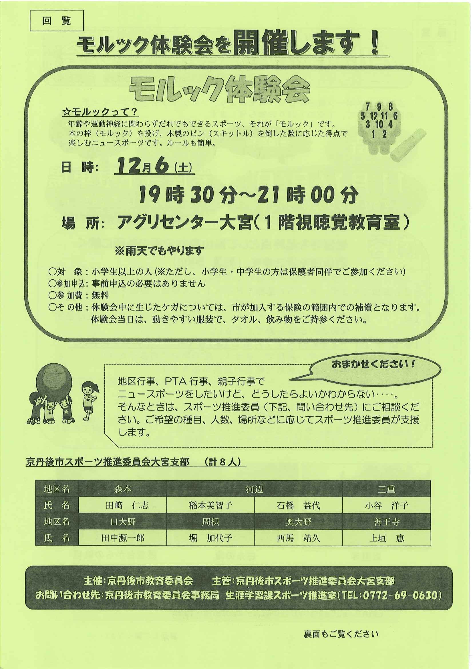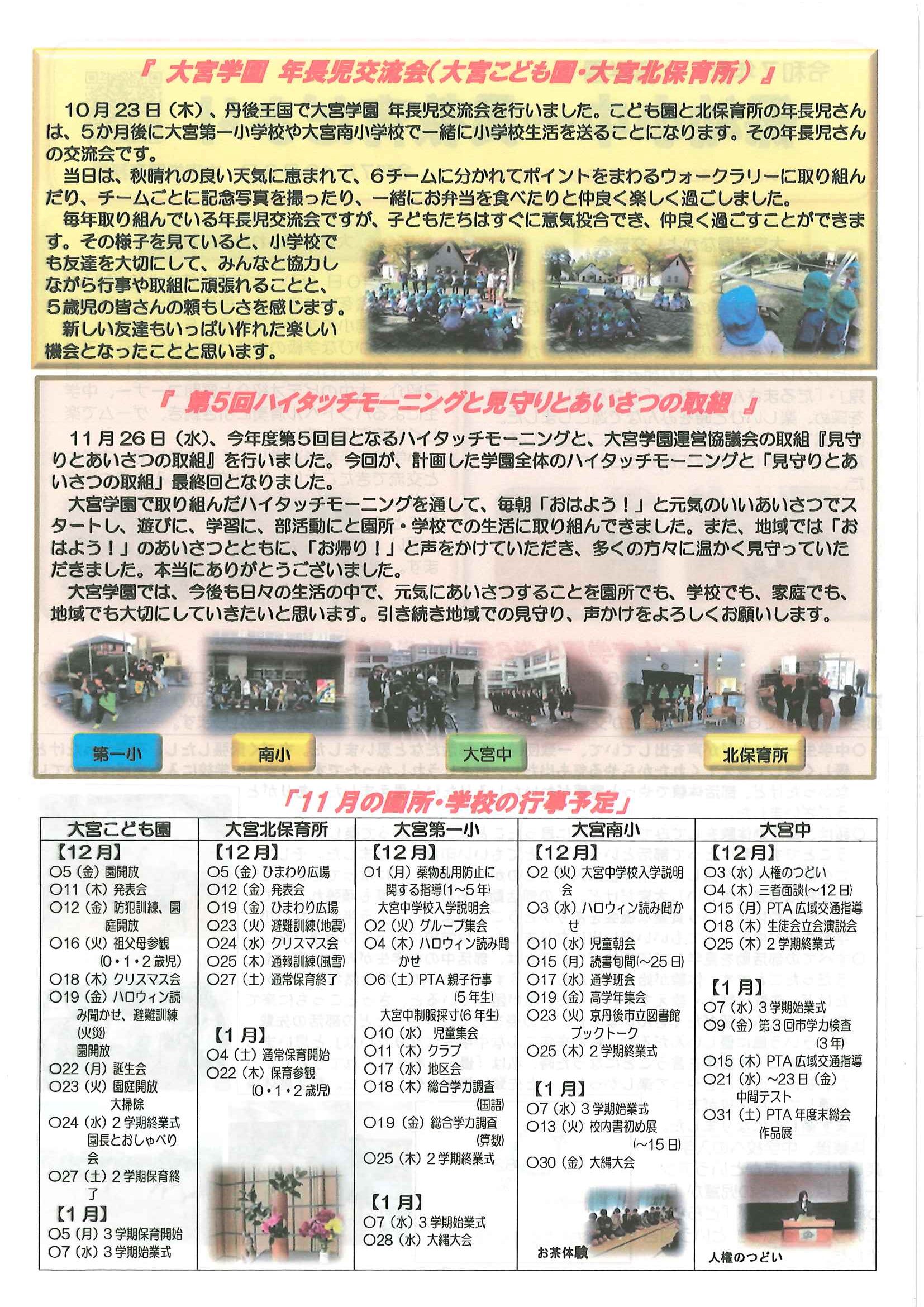 ・文化祭わいわいまつりスタンプラリー 当選番号発表 ・12月ふれあいサロン ・12月にこにこサロン ・大宮市民局NEWSおおみやトピックス 裏面 ・ネットトラブルからみなさんを守るために ・丹後を語る番組 地域おこしラジオ ・下水道工事予定表11/25- ・ぱらすぽーつ体験会 裏面 ・大宮地域公民館だより第107号 裏面 ・市立としょかんだより 裏面