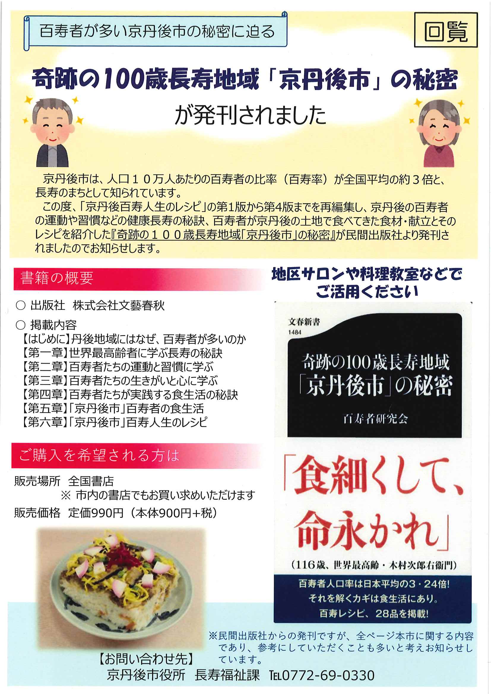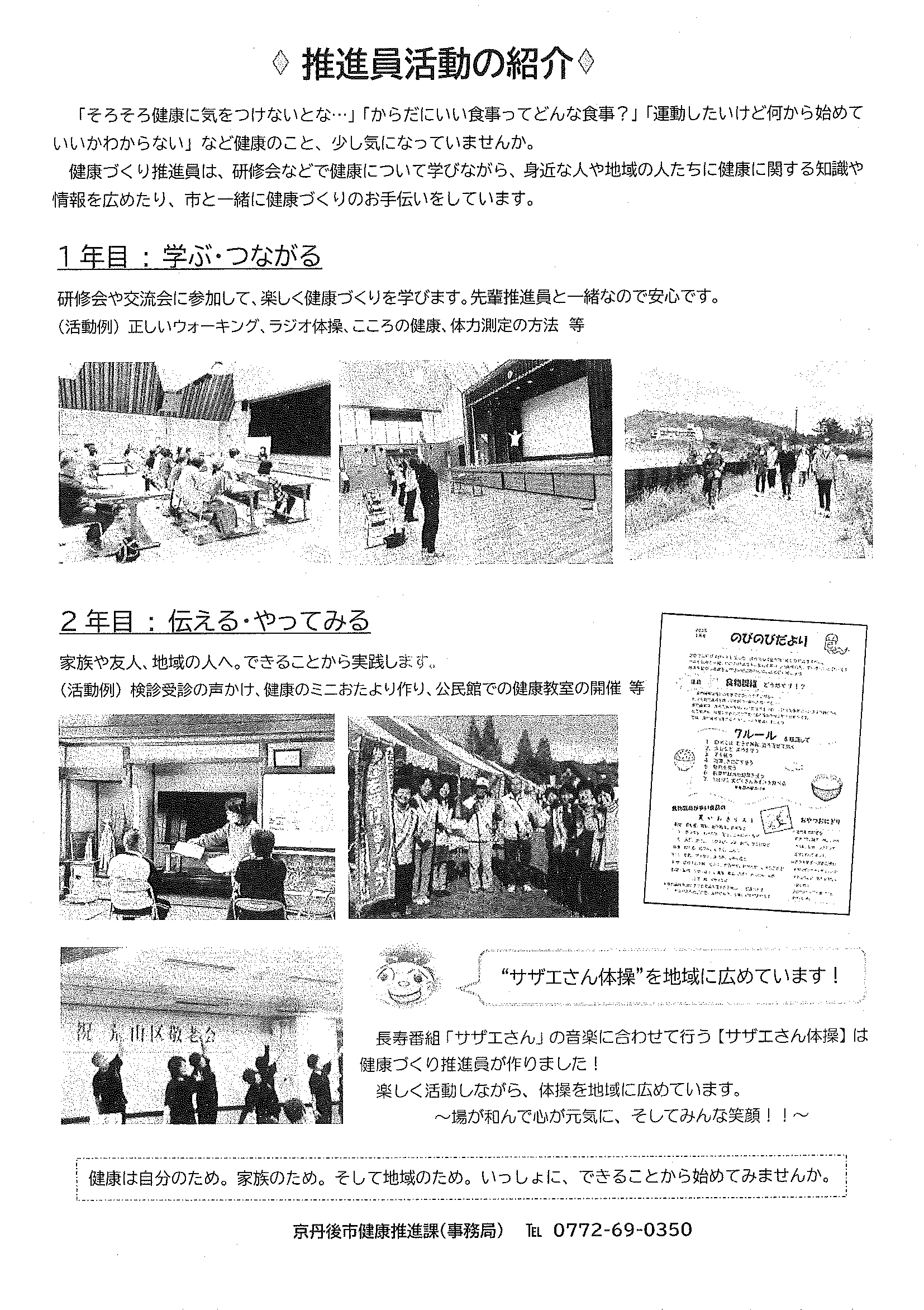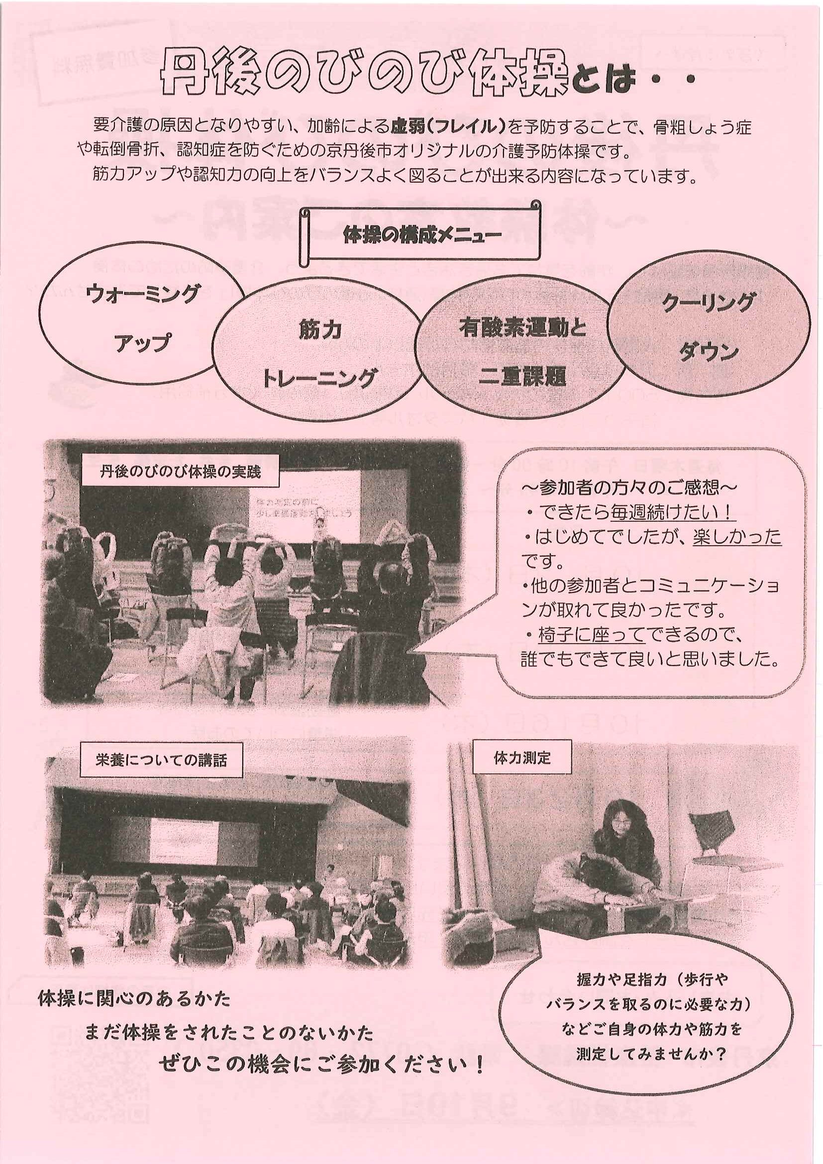 ・奇跡の100歳長寿地域「京丹後市」の秘密 ・京丹後市健康づくり推進員発健康応援だより 裏面 ・大中だより 裏面 ・きたほいくしょだより ・おおみや苑地域交流委員会新聞 ・口大野地区公民館だより ・4月にこにこサロン(子育てサロン) ・下水道工事予定表3/25-