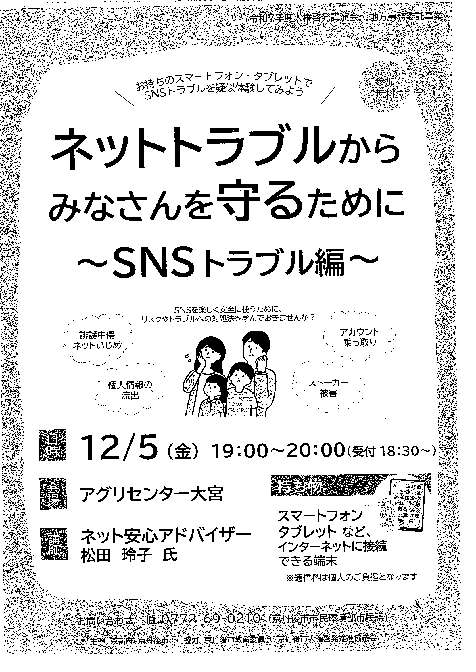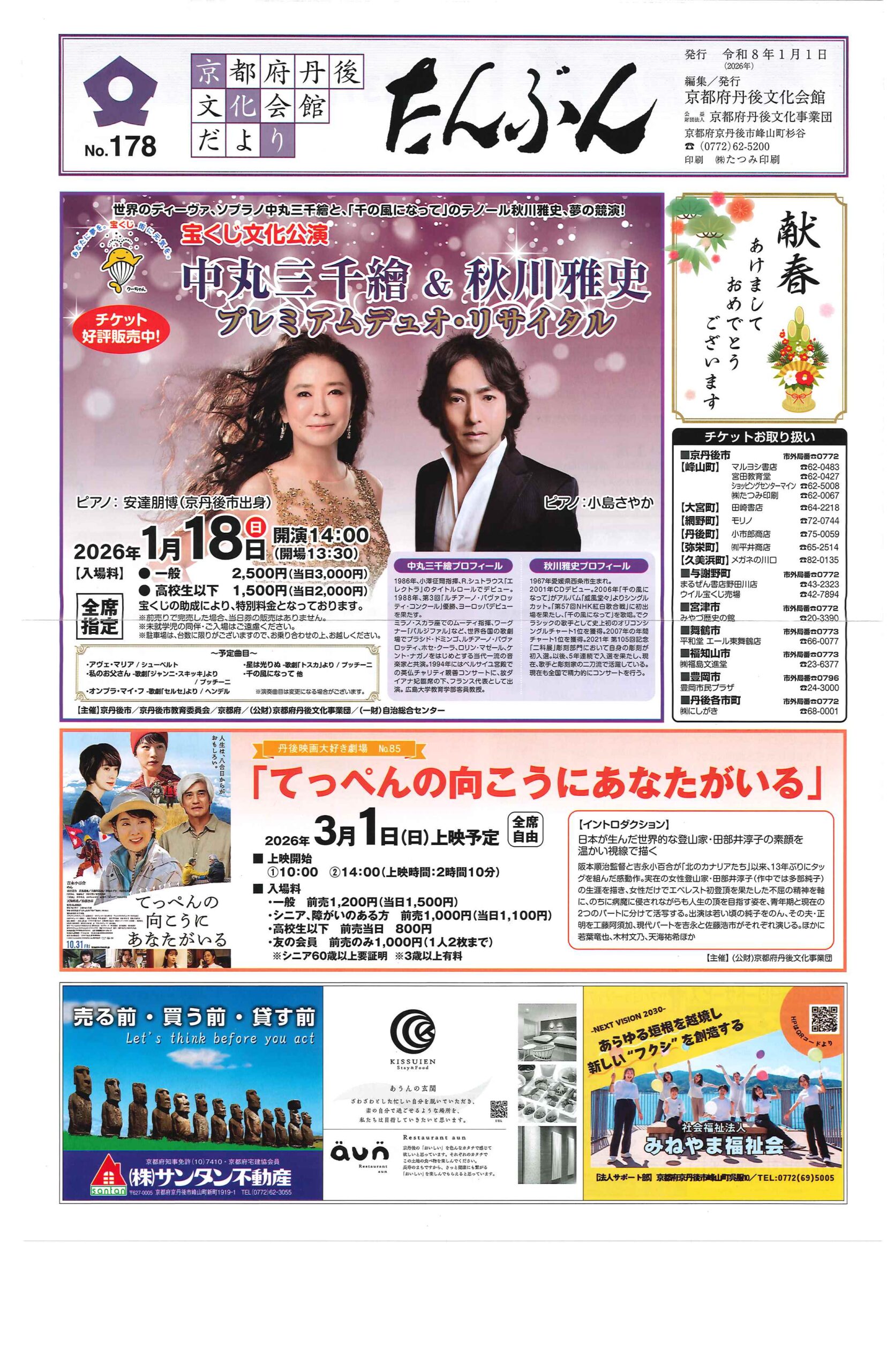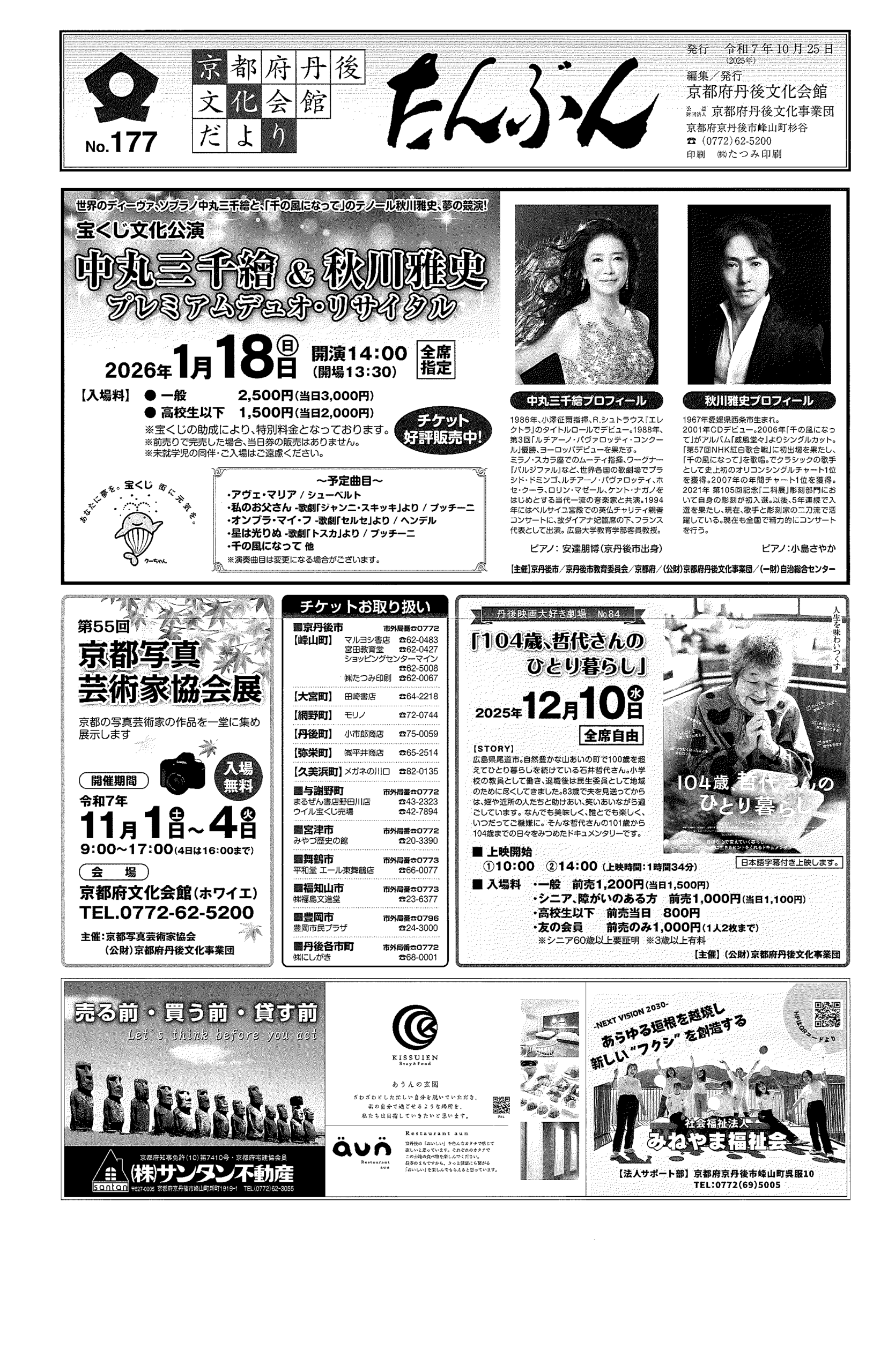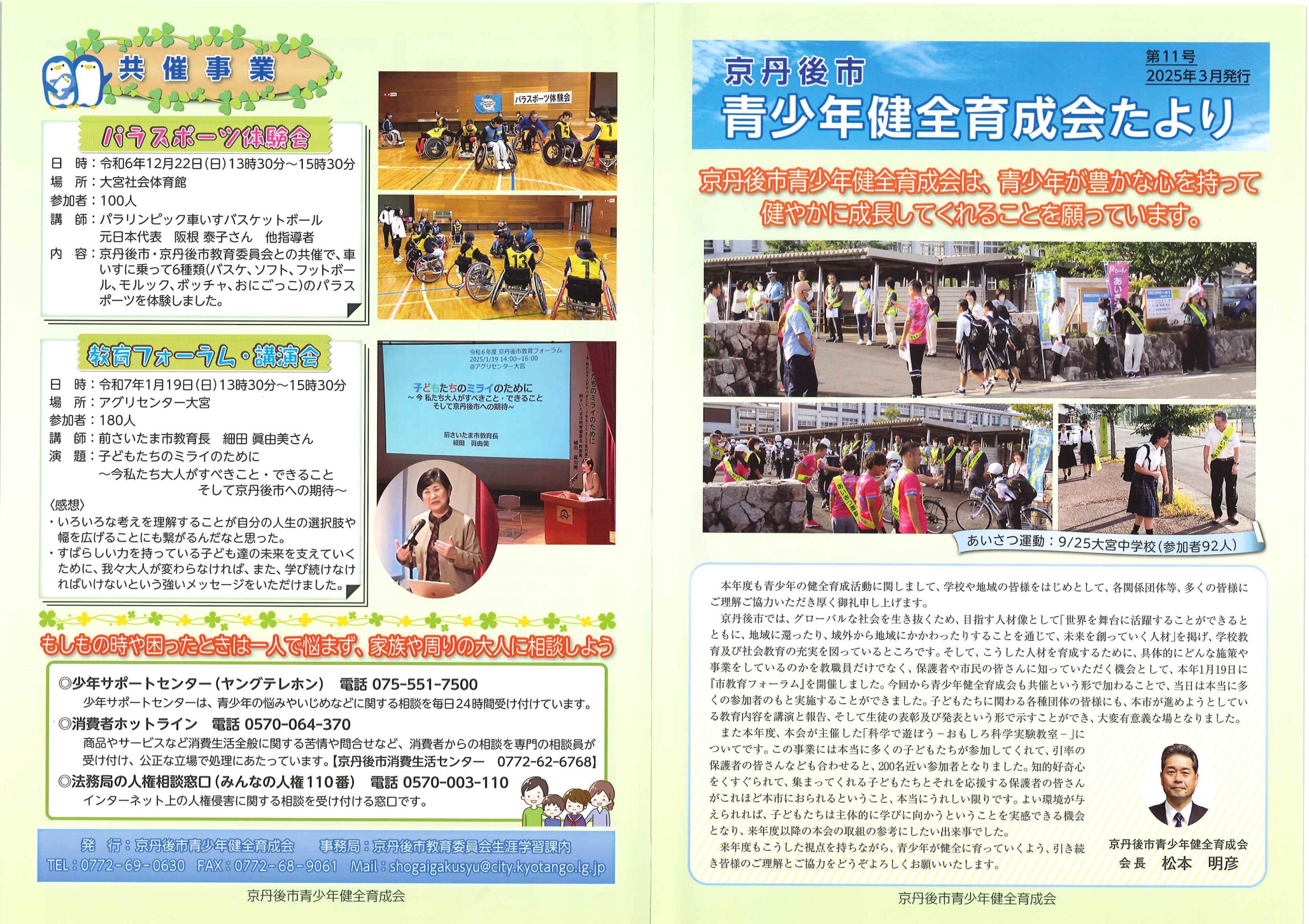 <8月12日> ・京丹後市議会だよりNo85 ・京丹後の人権だより第66号 ・令和7年度京丹後市総合防災訓練 裏面 ・青少年教育事業デュオ”ネドレモ/アベルセット”&加藤和也日本公演 裏面 ・令和7年度社協会費納入のお願い 裏面 ・ひとりで悩まずご相談ください 寄り添い支援総合サポートセンター 裏面