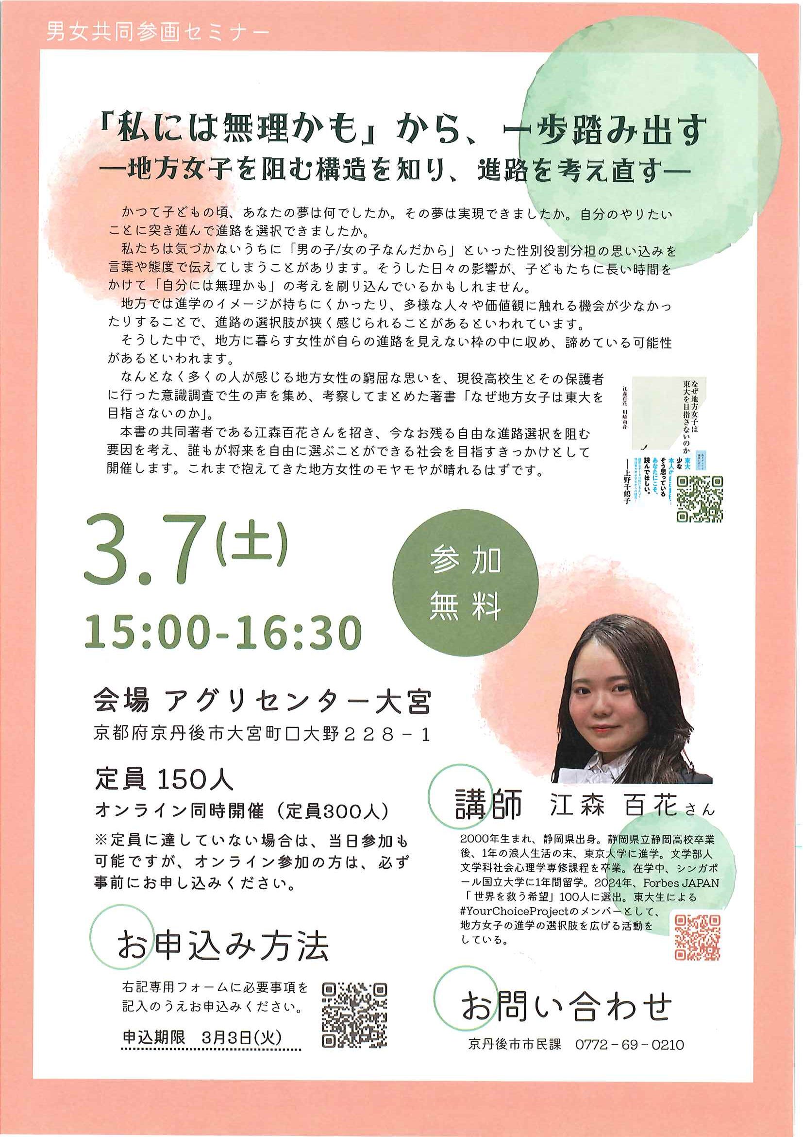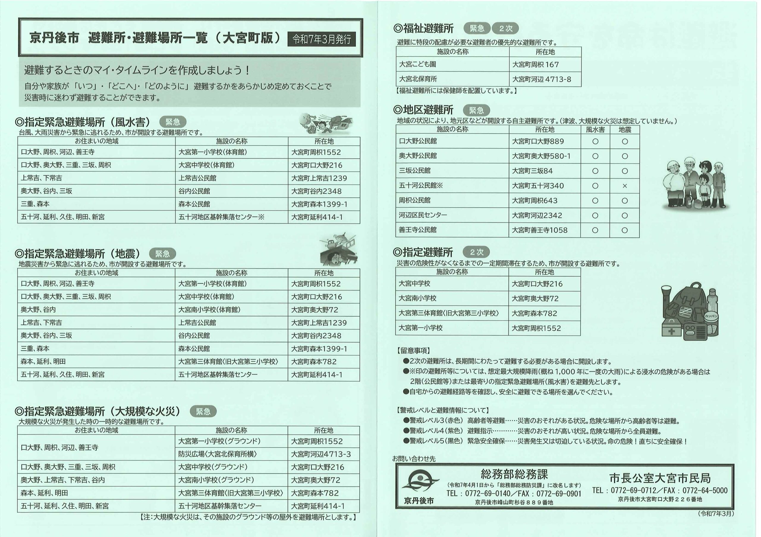 <3月26日> ・広報京丹後4月号 ・京丹後市避難所避難場所一覧(大宮町版、R7.3月) 裏面 ・京丹後市教育振興計画 ・京丹後市農業委員会だより ・社協だより こころ ・シルバーきょうたんご 裏面 ・どっとこむGoSports 裏面 ・地域で支える学校地域で支える子どもの学び 裏面 ・京丹後市青少年育成会だより 裏面 ・京丹後の人権だより 裏面 ・がん検診+特定健診 ・京丹後市民遺産 裏面 ・京丹後市民大学初めての有機野菜つくり ・京丹後市文化協会通信 裏面 ・京丹後市民大学令和7年度受講案内 裏面 ・大宮中学校クラブ後援会だより 裏面