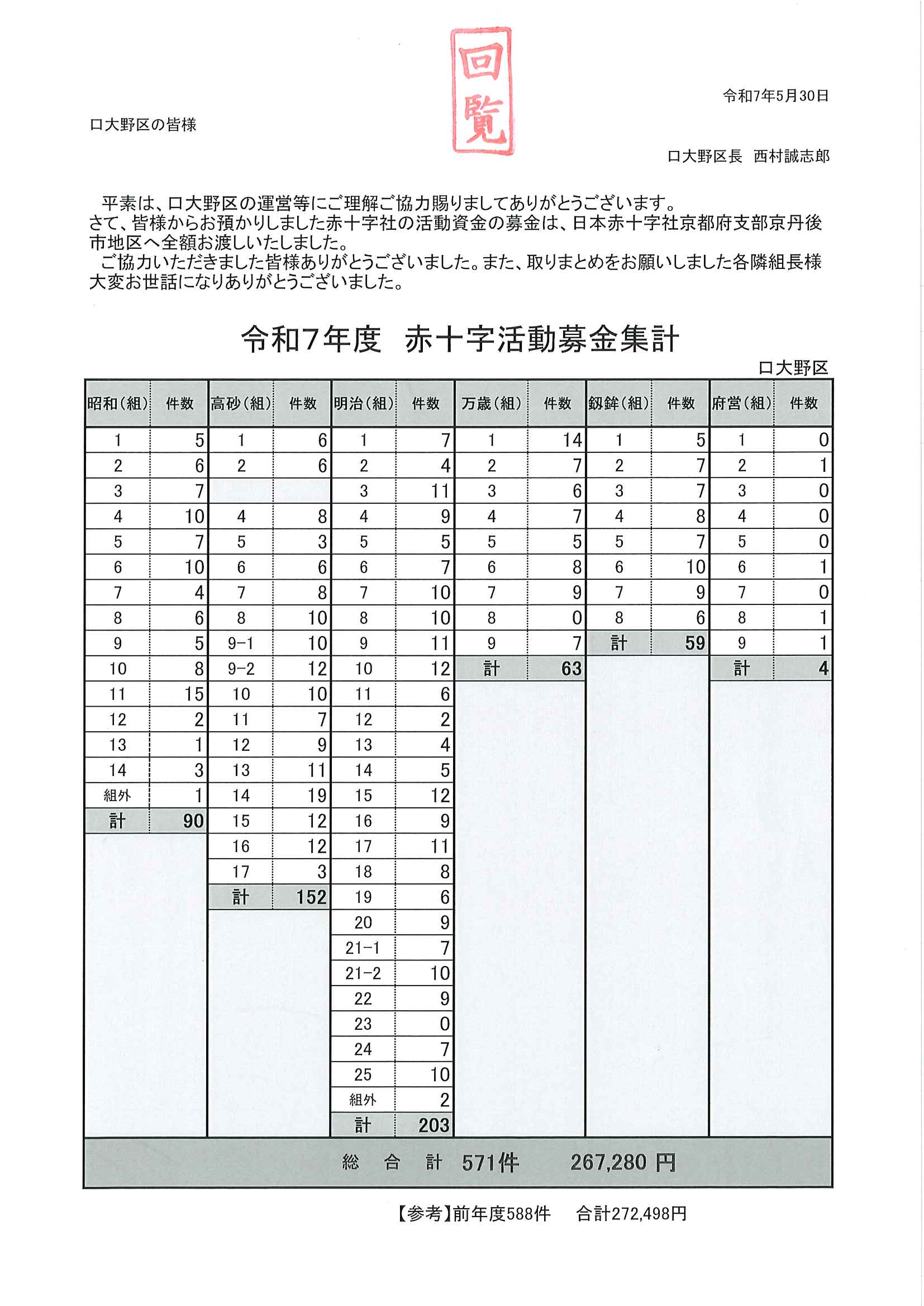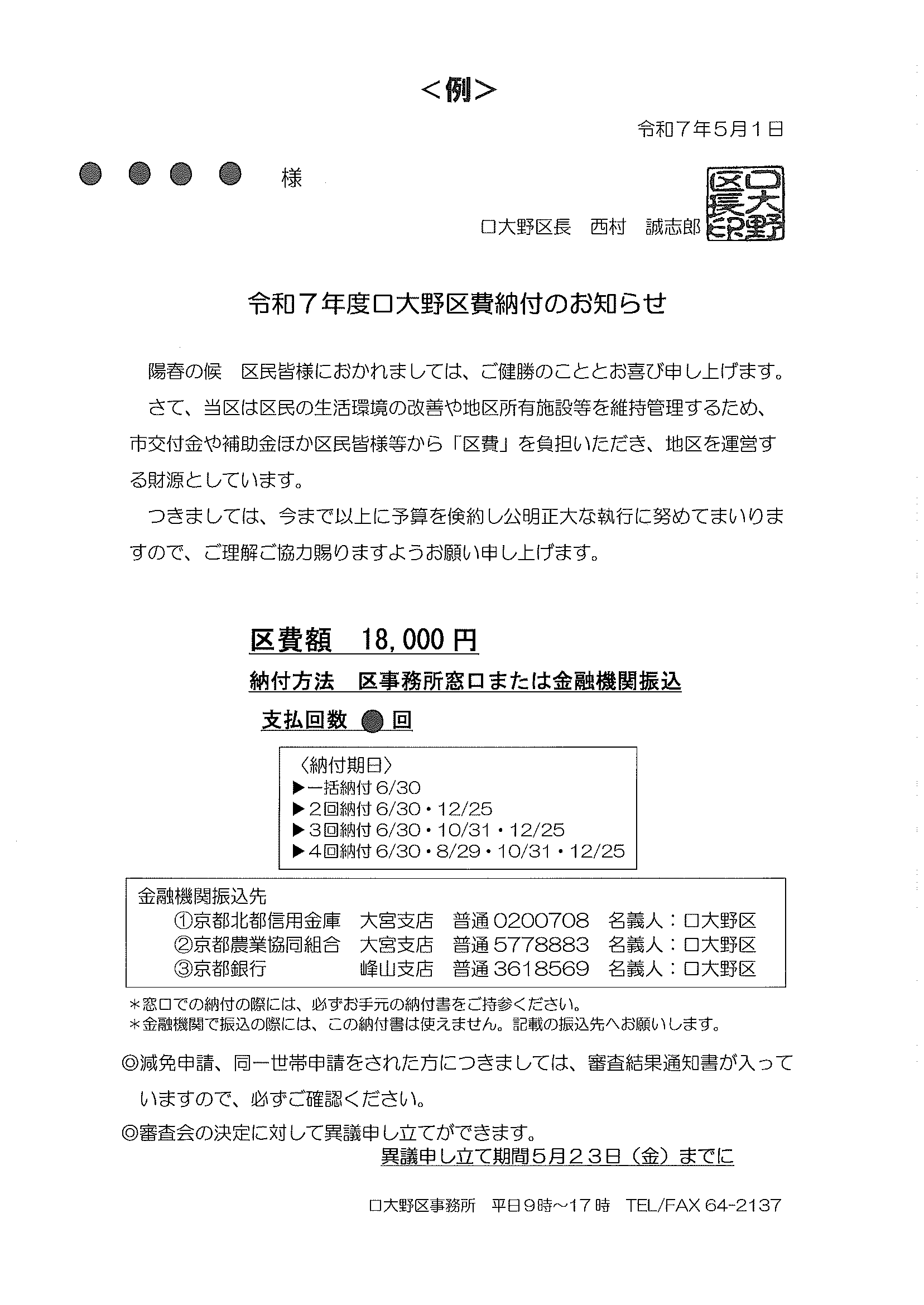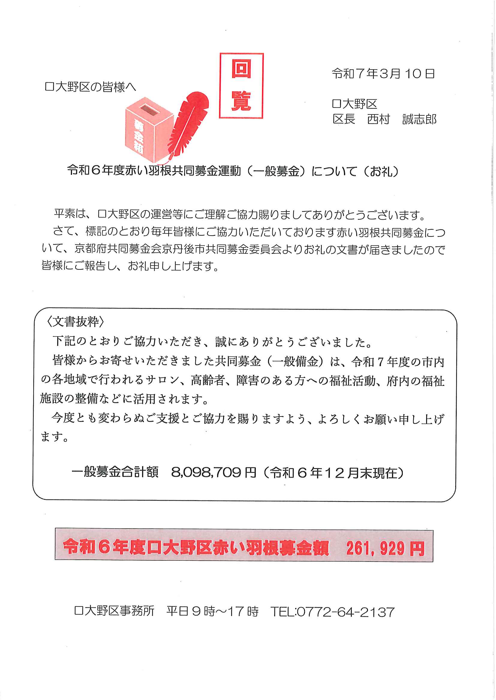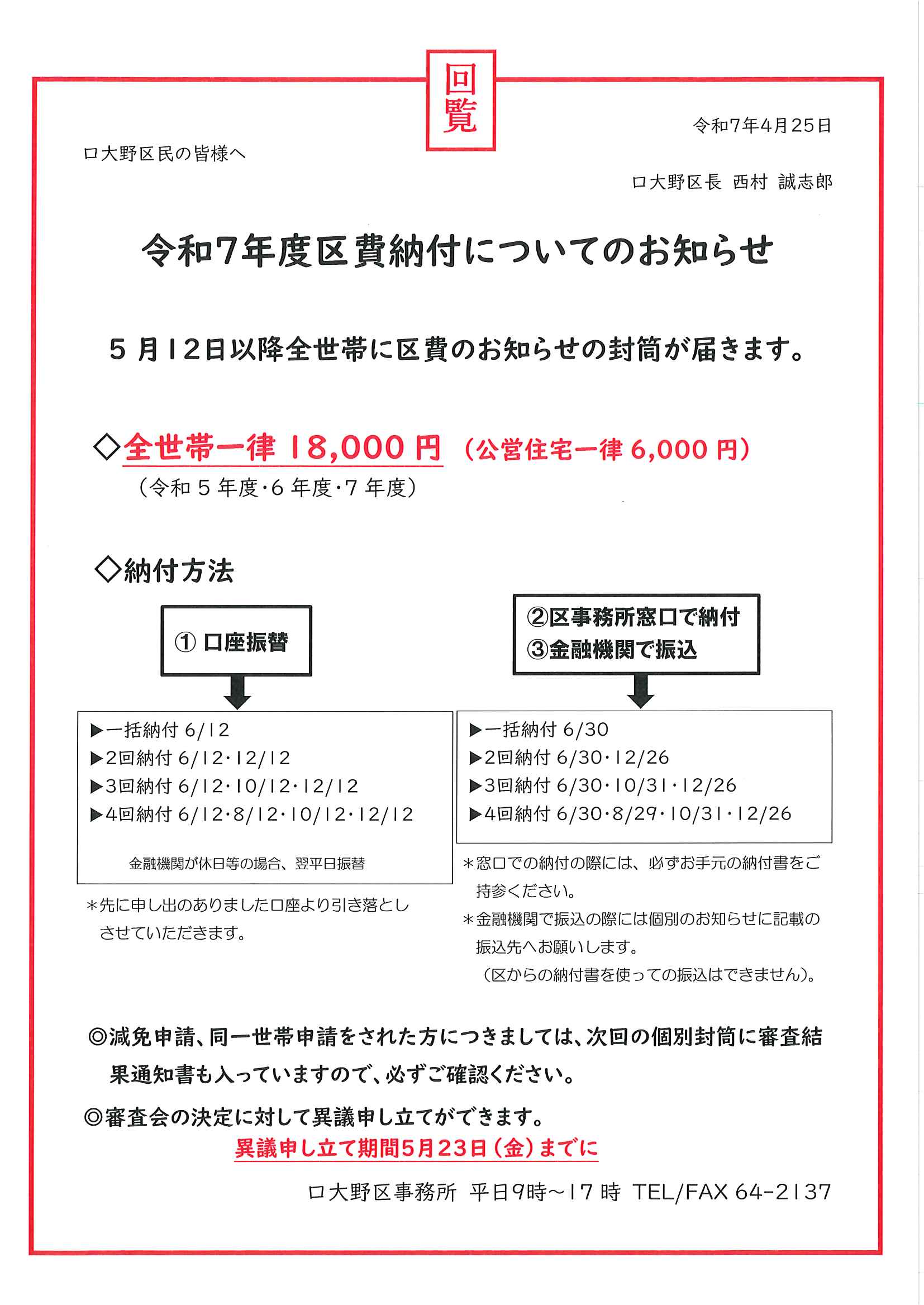 ・<隣組長様あて>・赤十字活動資金募集協力依頼 ・令和7年度区費納付のお知らせ