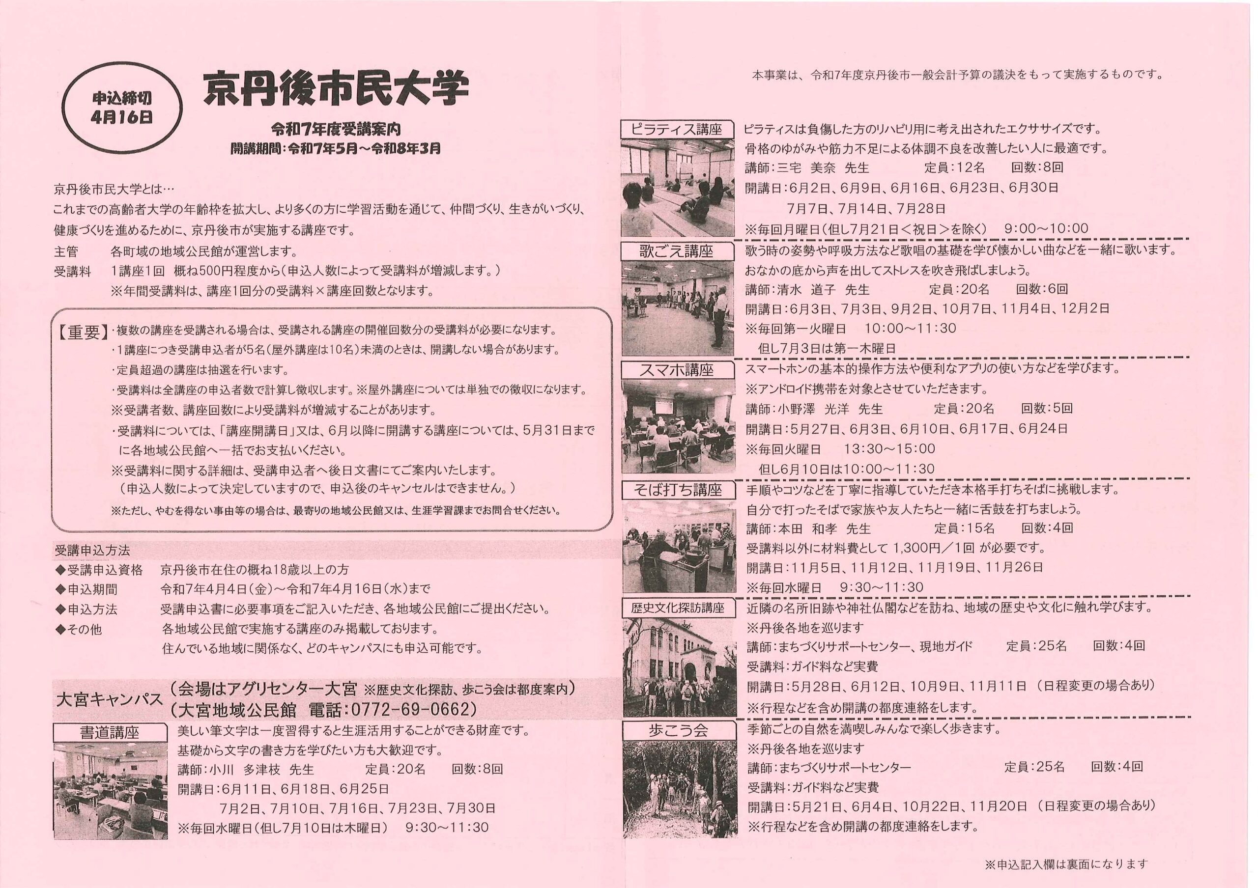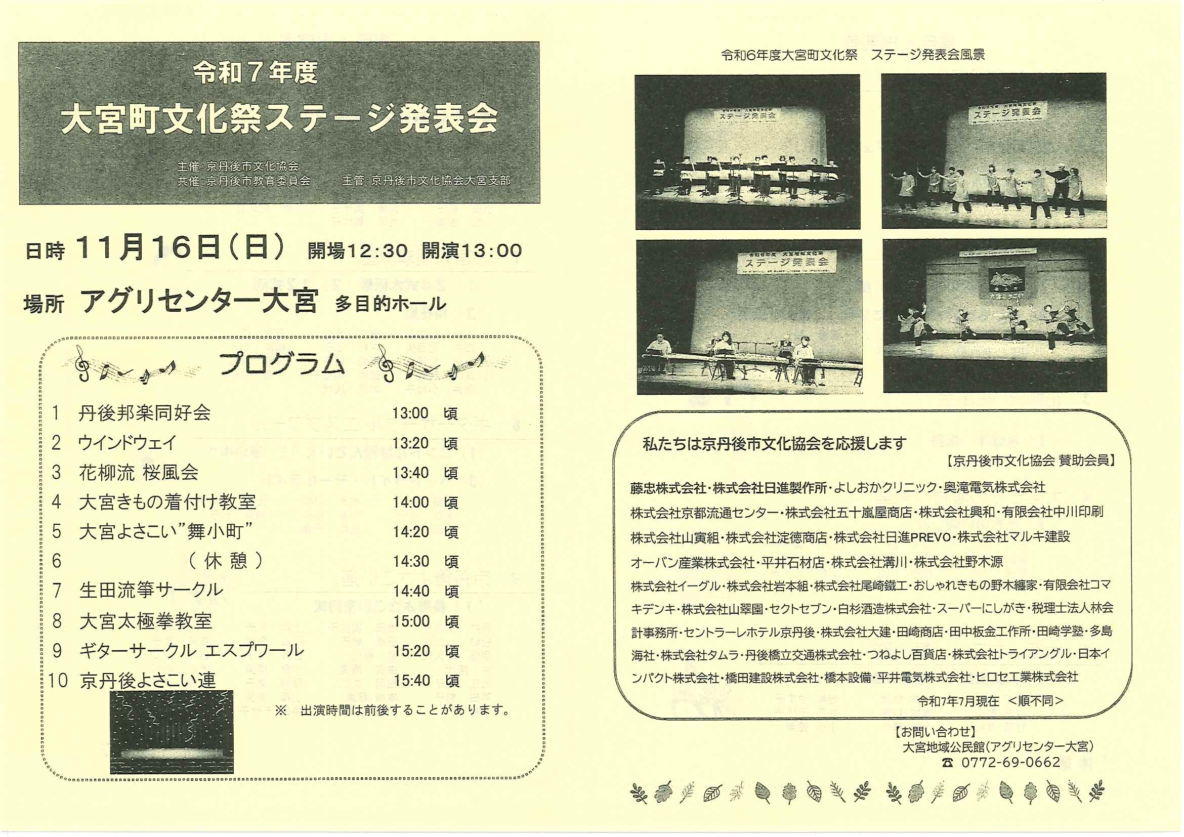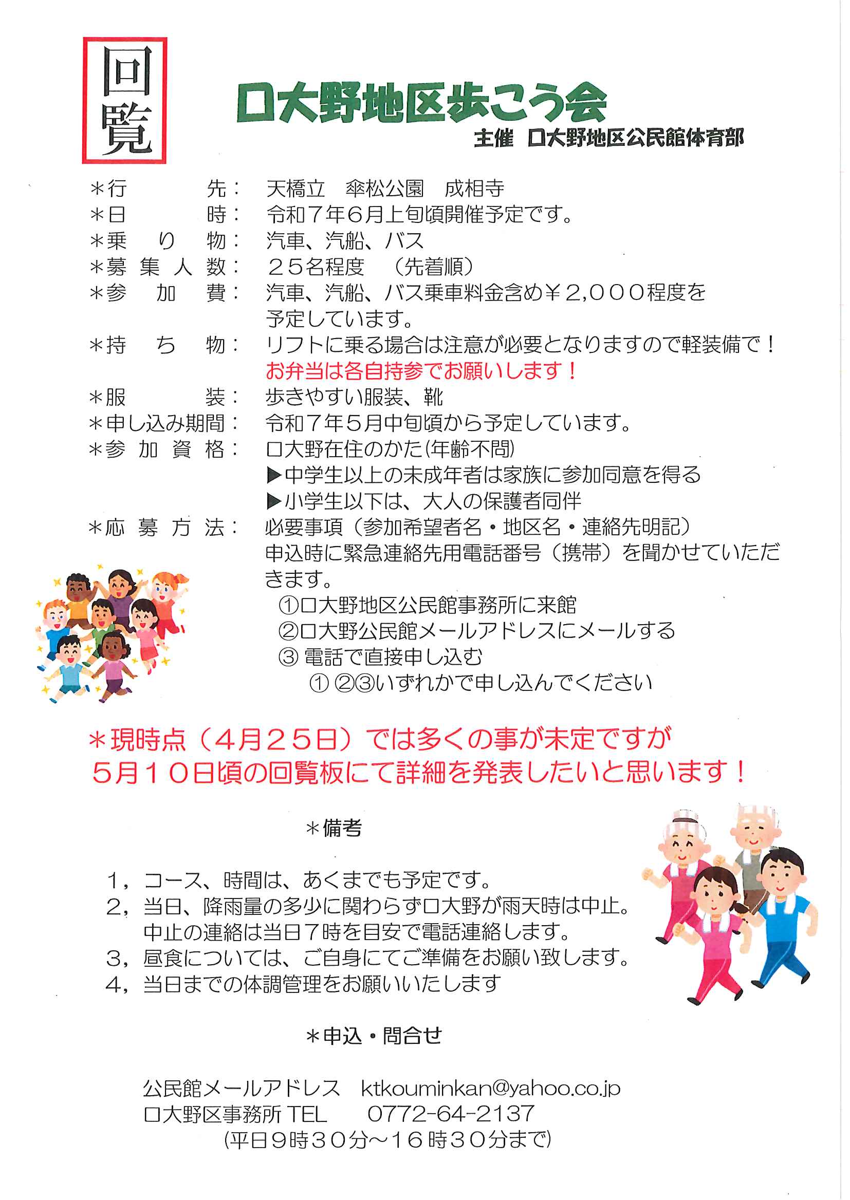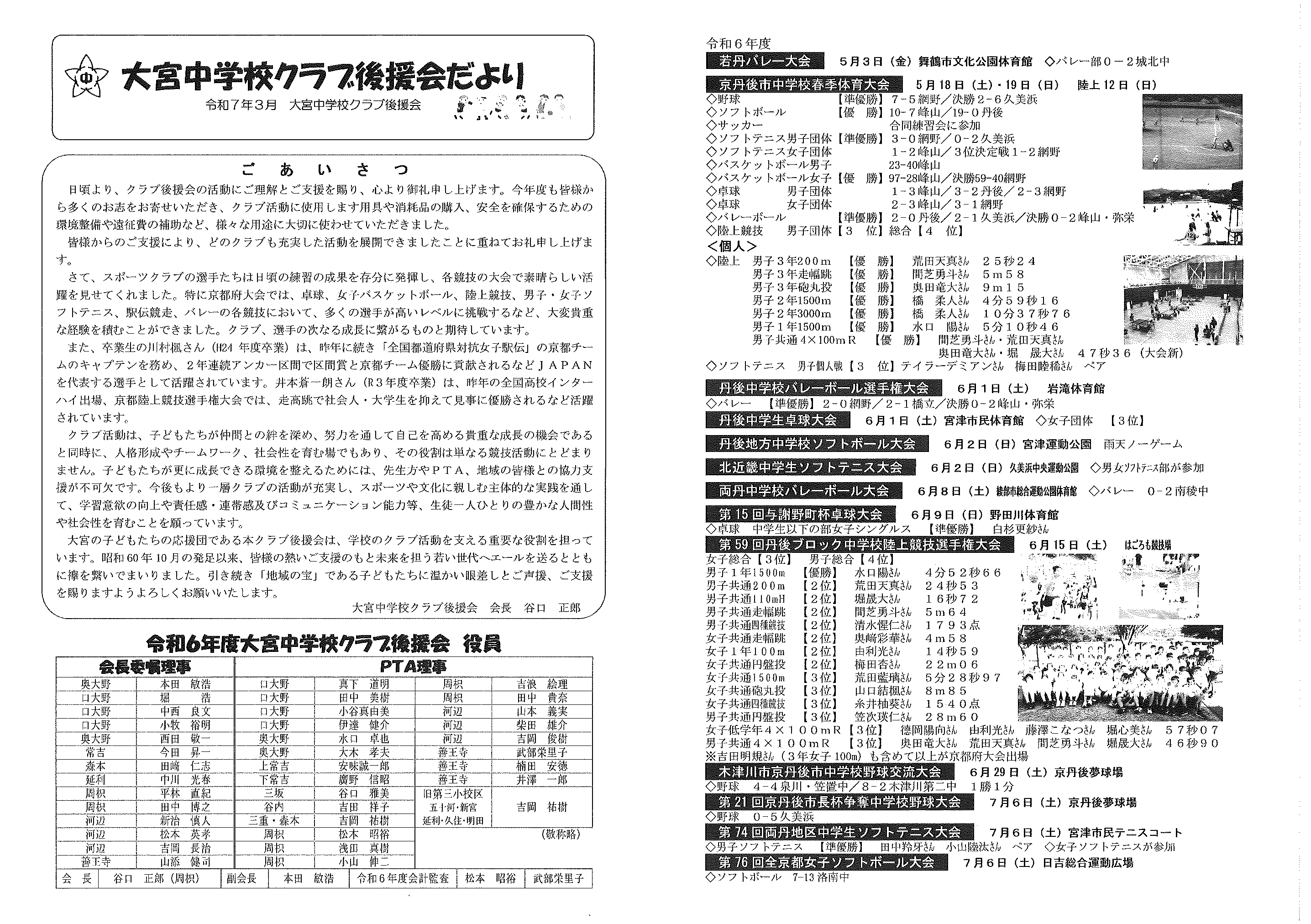 ・令和7年度神社費について ・川溝そうじ ・6月にこにこサロン ・大宮市民局NEWS 大宮トピックス 裏面 ・丹後を語る番組地域おこしラジオ放送中 ・峯山海軍航空隊歴史探訪ノルディックウオーキング参加者募集 ・下水道工事予定表5/25- ・保幼小中一貫教育だより 裏面