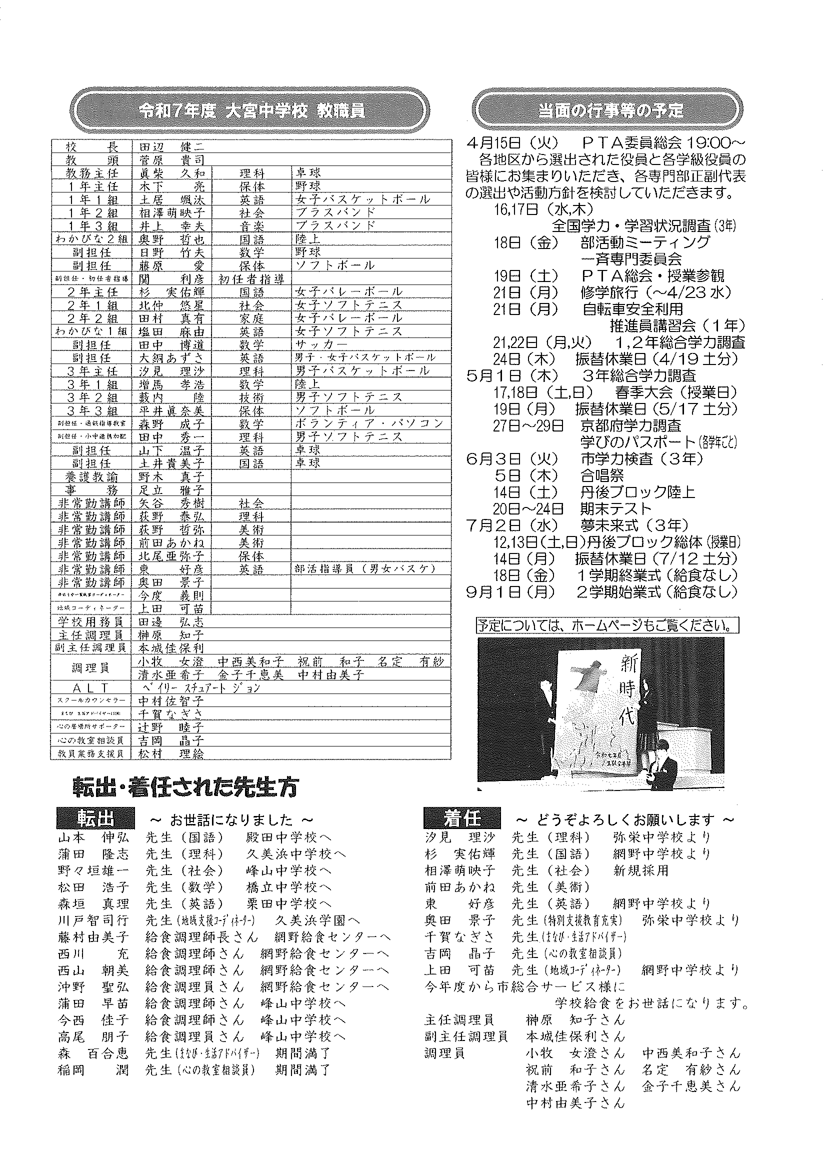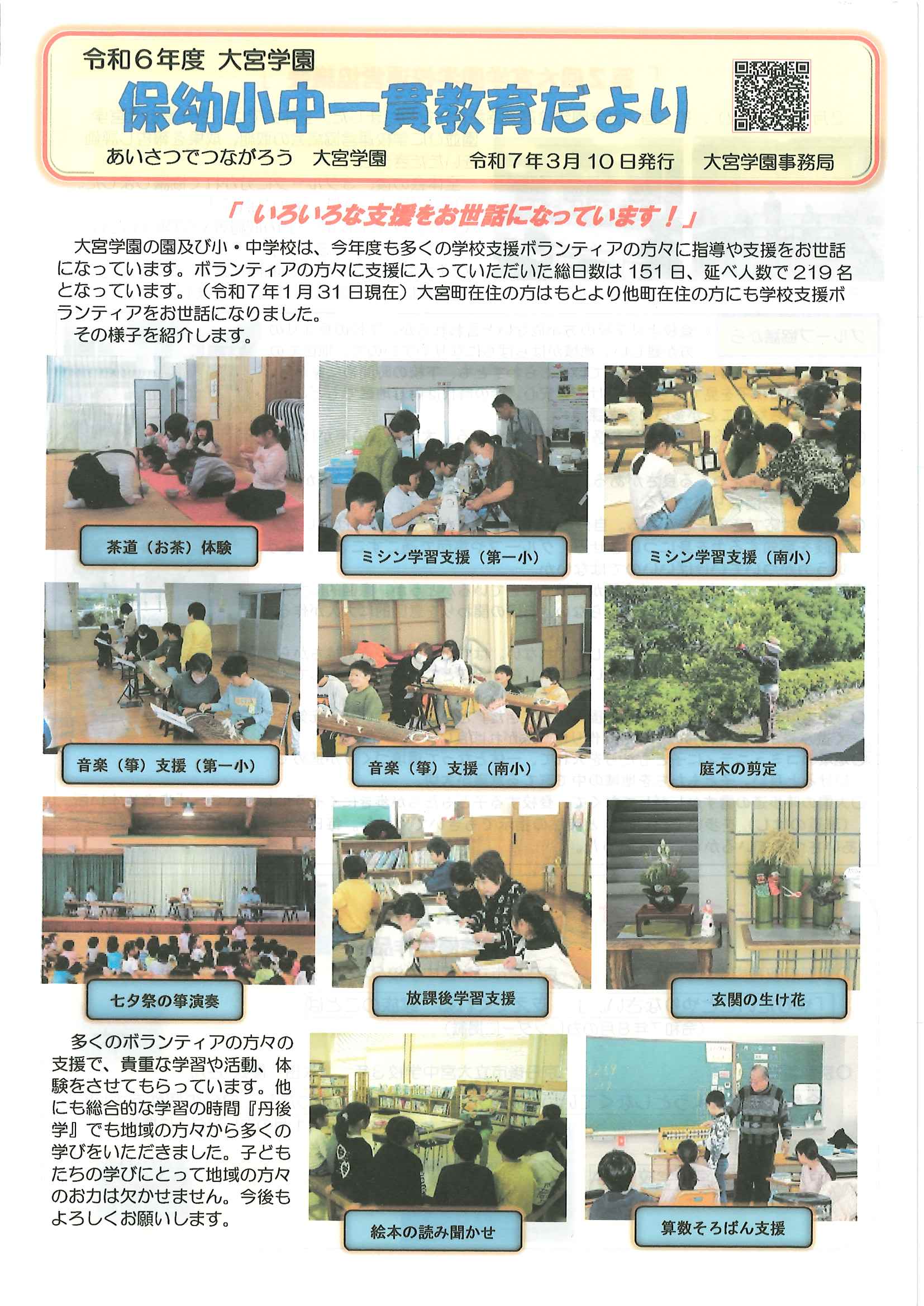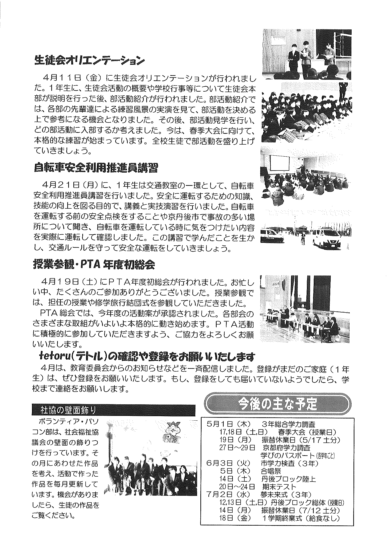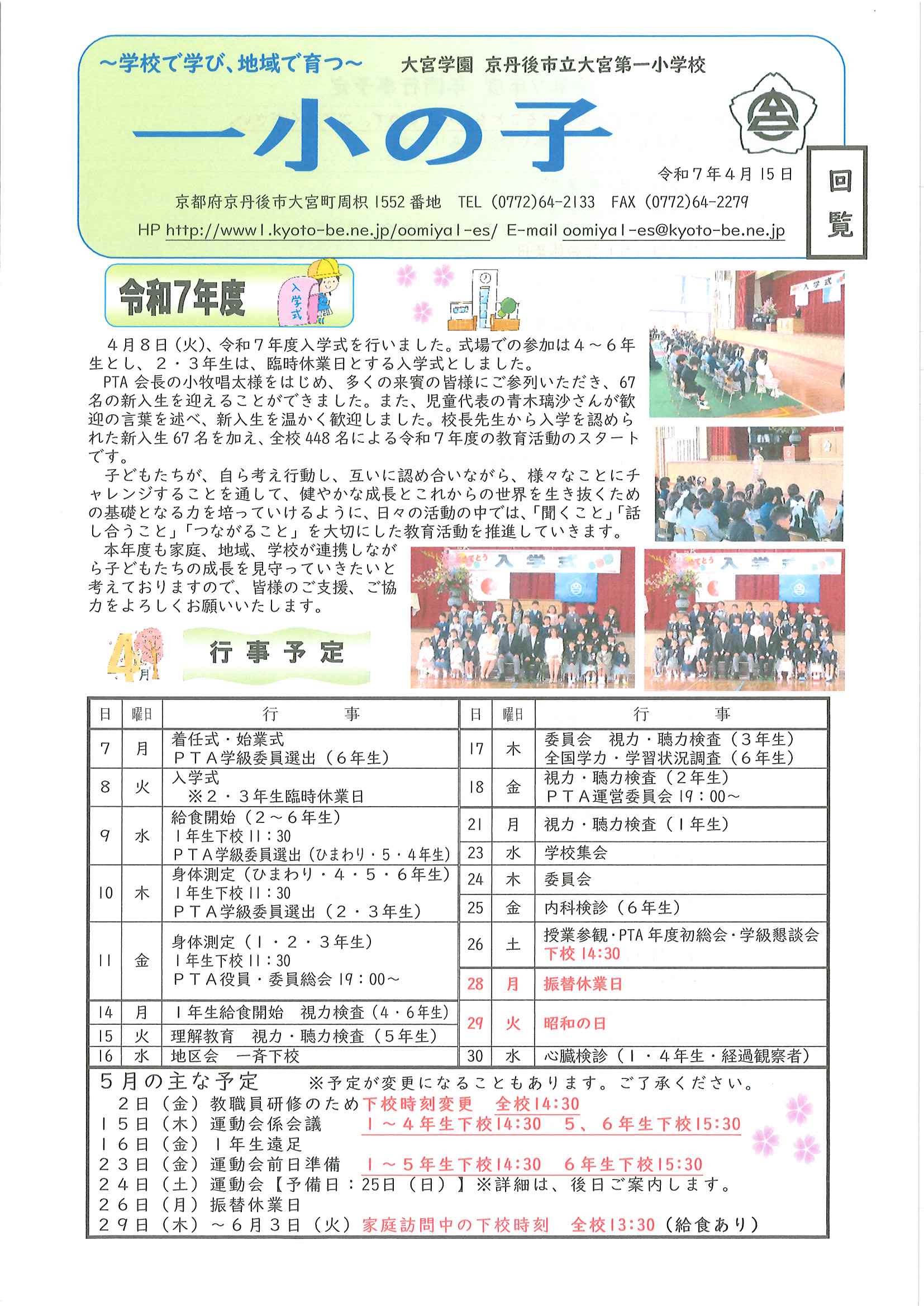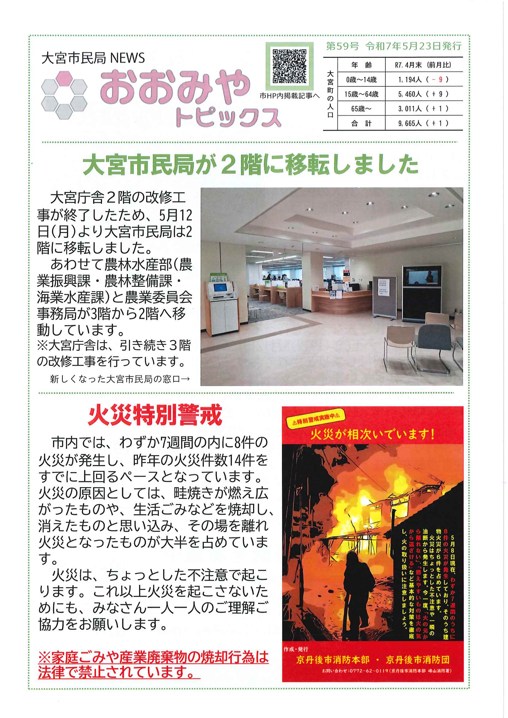 ・令和7年度神社費について ・川溝そうじ ・6月にこにこサロン ・大宮市民局NEWS 大宮トピックス 裏面 ・丹後を語る番組地域おこしラジオ放送中 ・峯山海軍航空隊歴史探訪ノルディックウオーキング参加者募集 ・下水道工事予定表5/25- ・保幼小中一貫教育だより 裏面