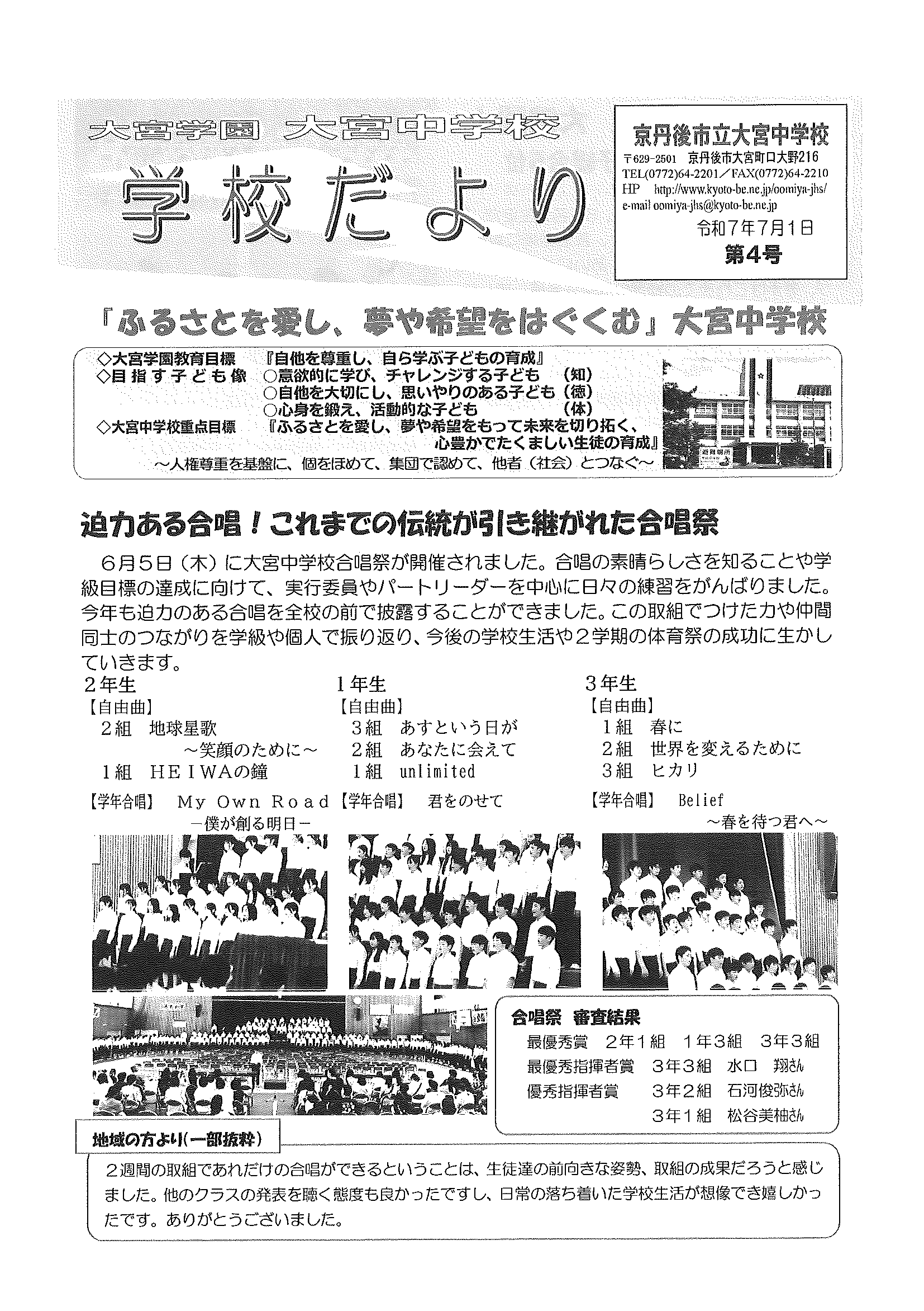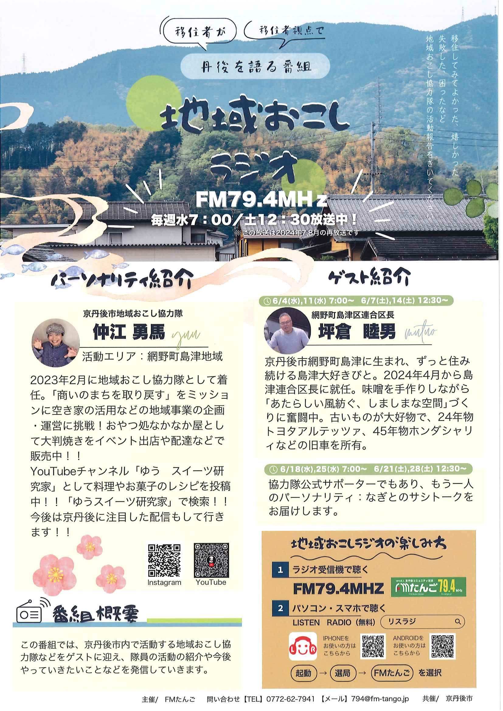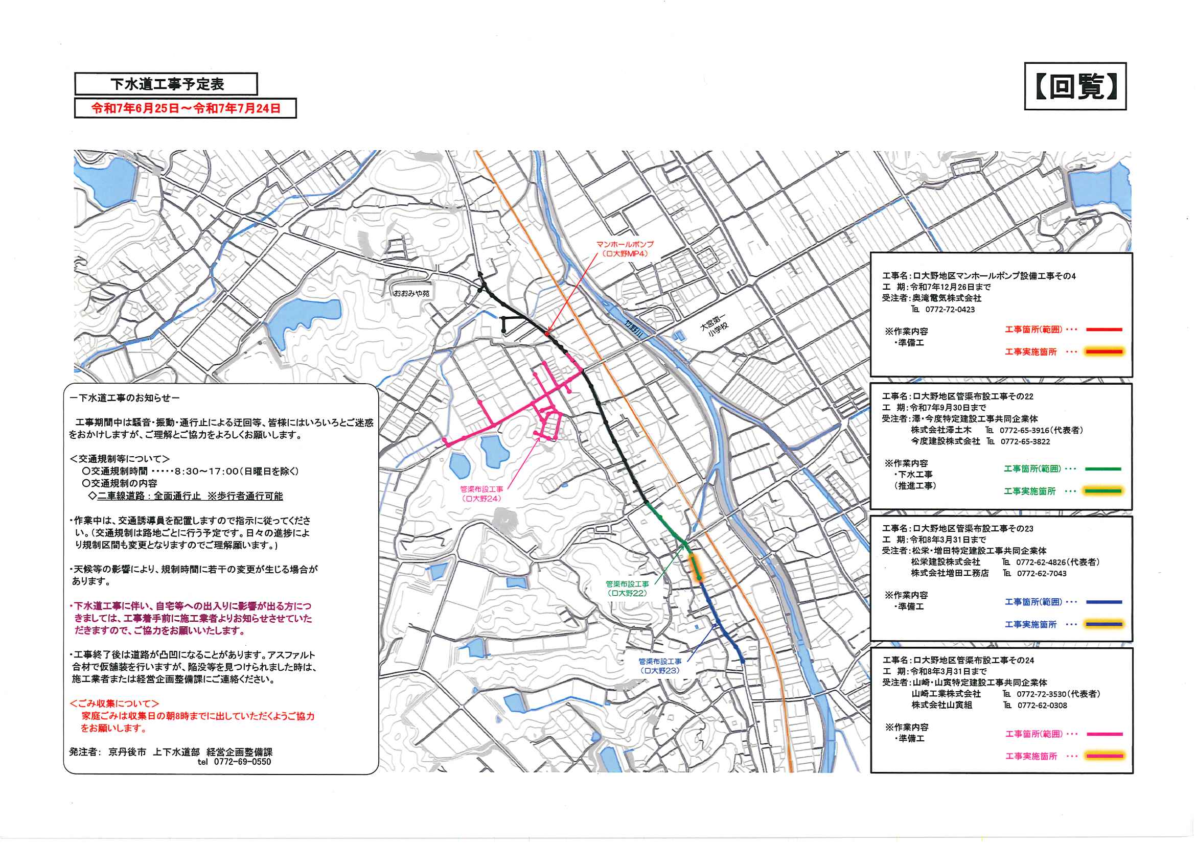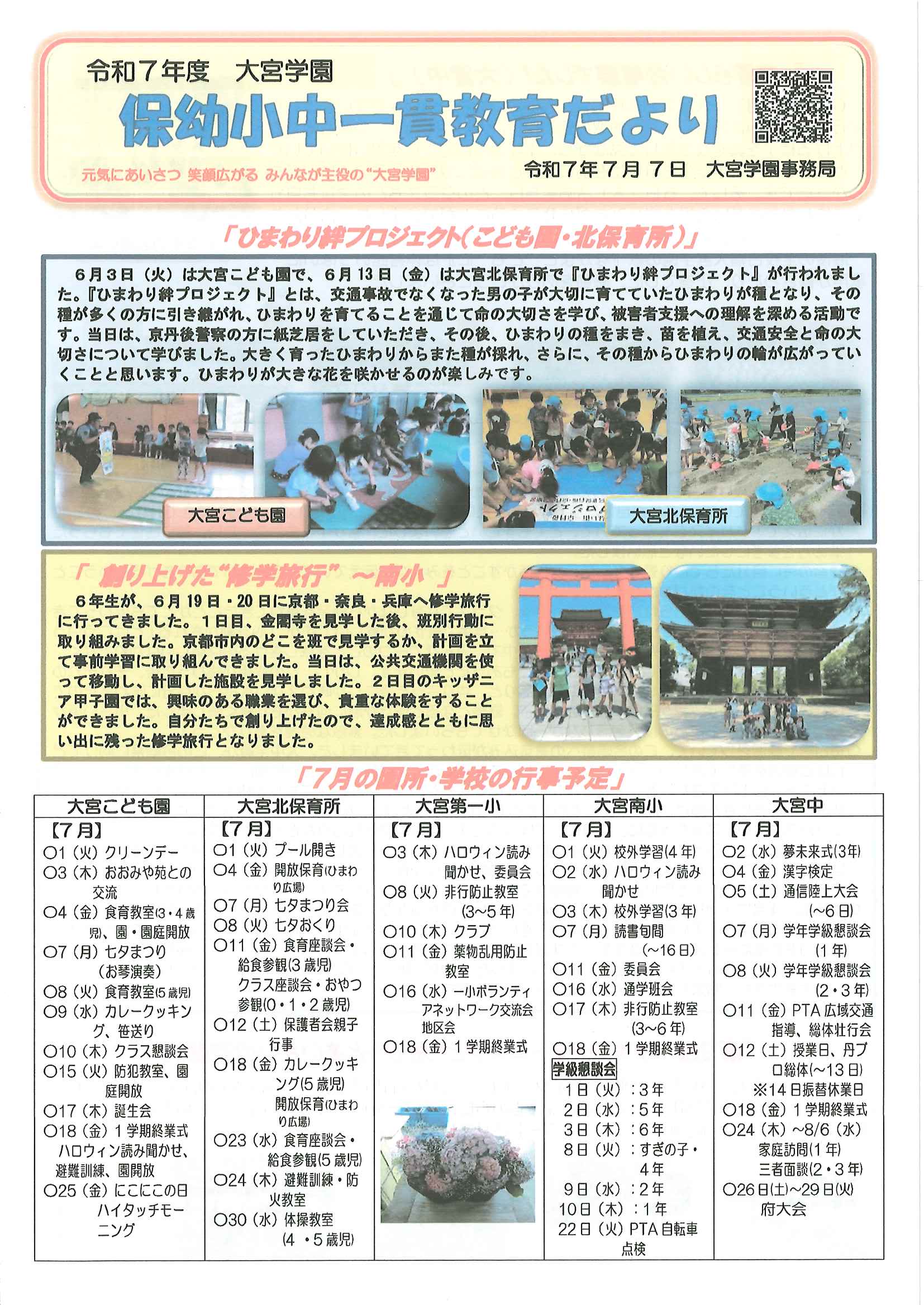 ・令和7年度神社費について ・川溝そうじ ・6月にこにこサロン ・大宮市民局NEWS 大宮トピックス 裏面 ・丹後を語る番組地域おこしラジオ放送中 ・峯山海軍航空隊歴史探訪ノルディックウオーキング参加者募集 ・下水道工事予定表5/25- ・保幼小中一貫教育だより 裏面
