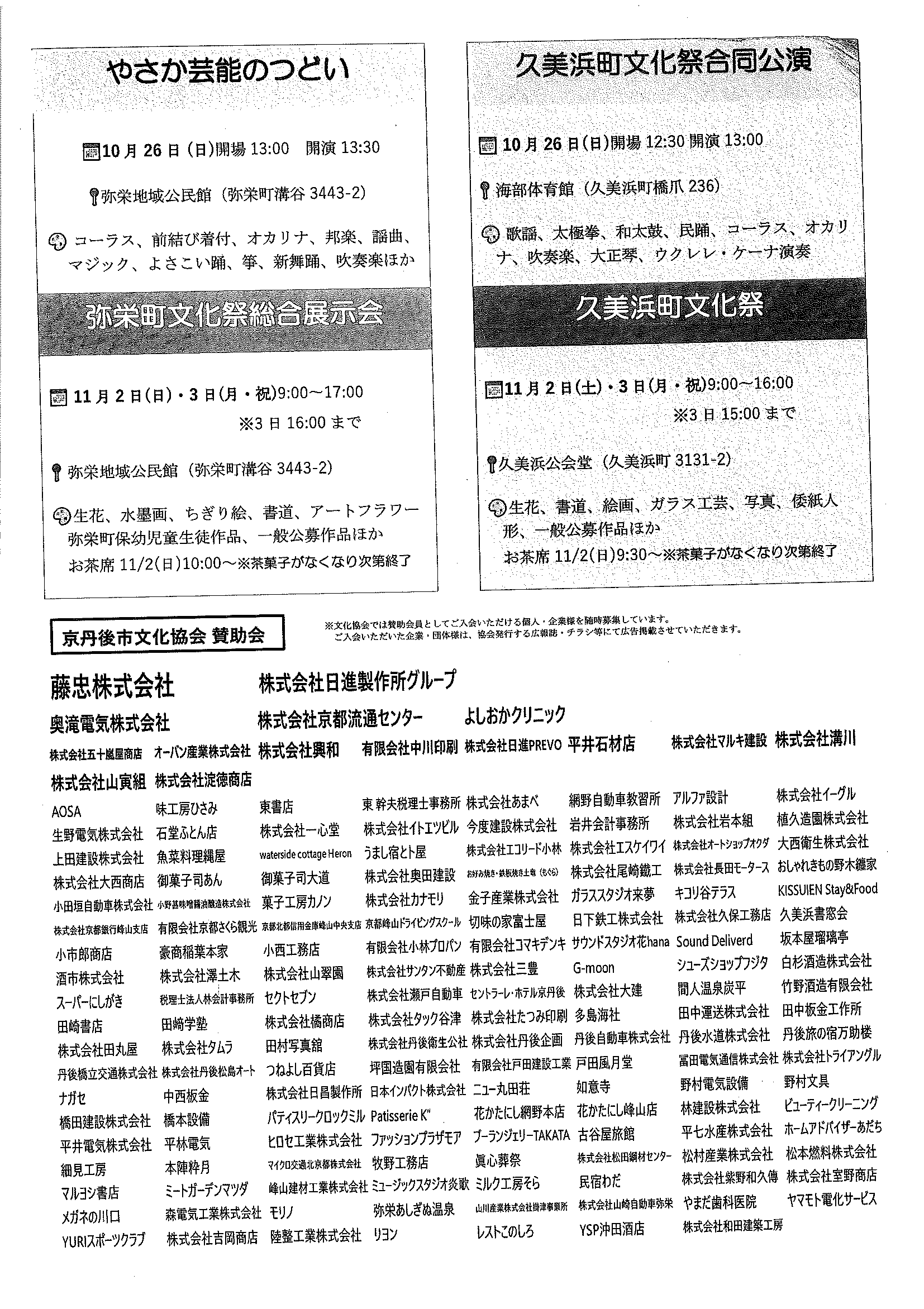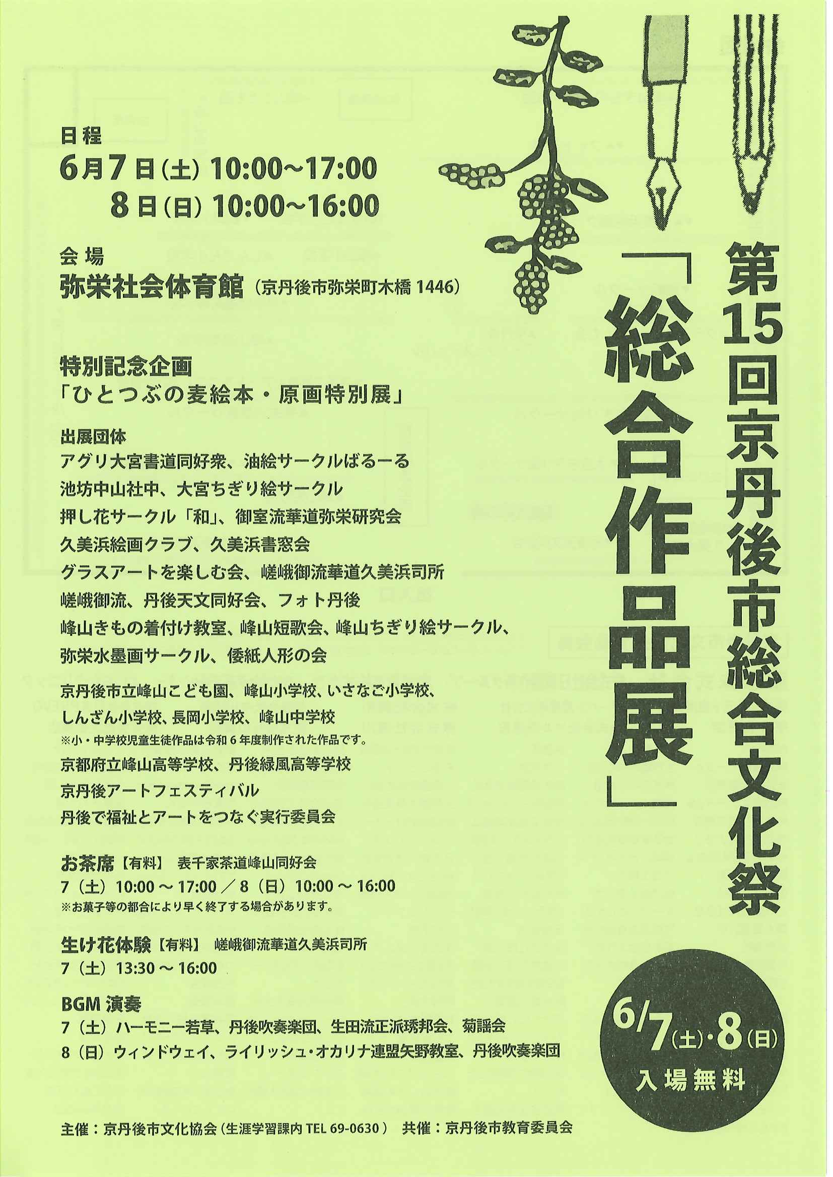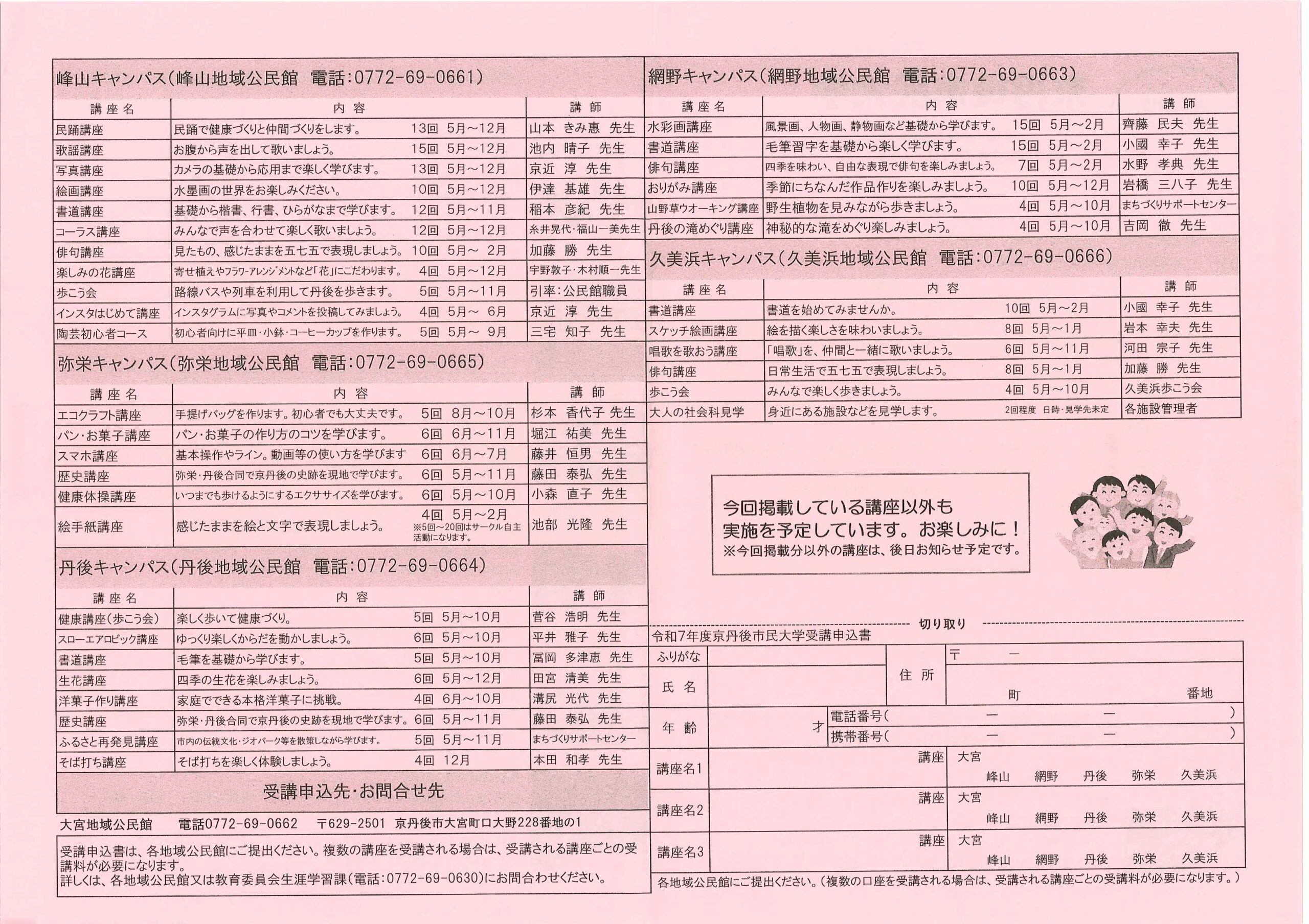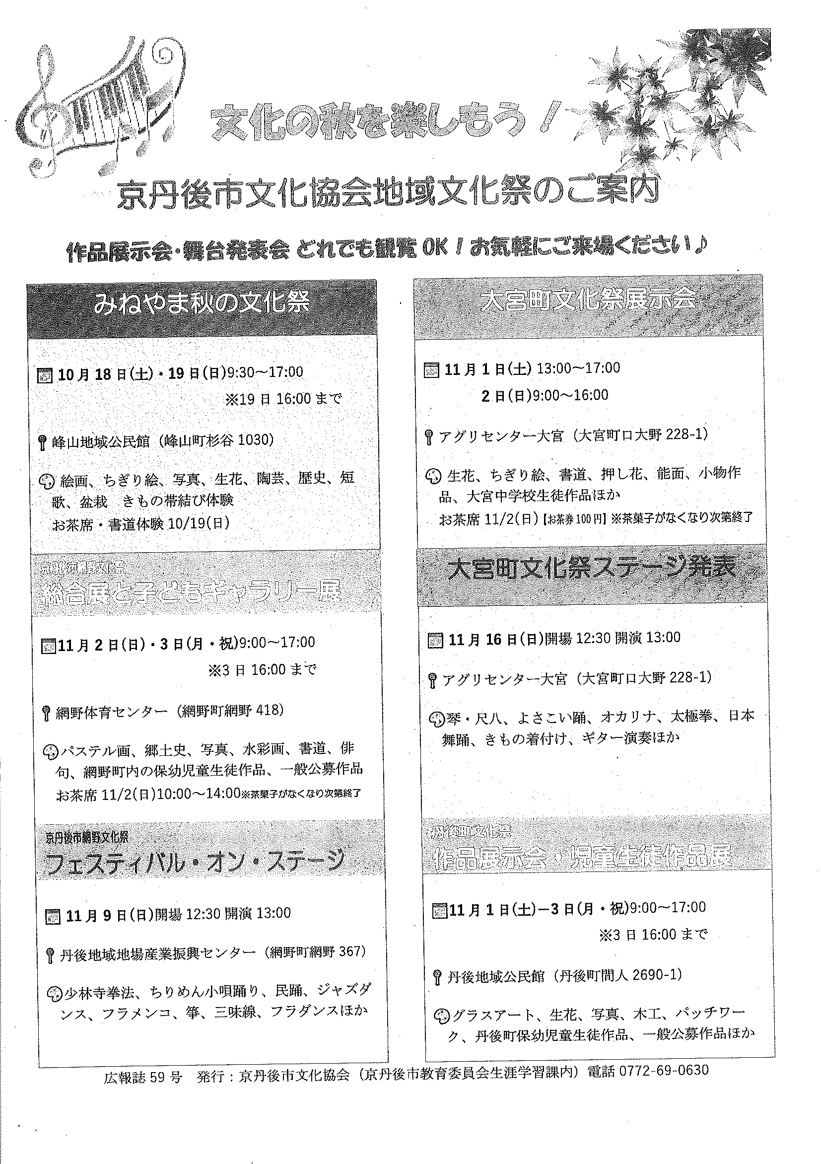 <5月26日> ・広報京丹後6月号 ・市社協だより こころ(105号) ・第15回京丹後市総合文化祭「総合作品展」 裏面 ・府民公開講座(府立医大附属北部医療センター)