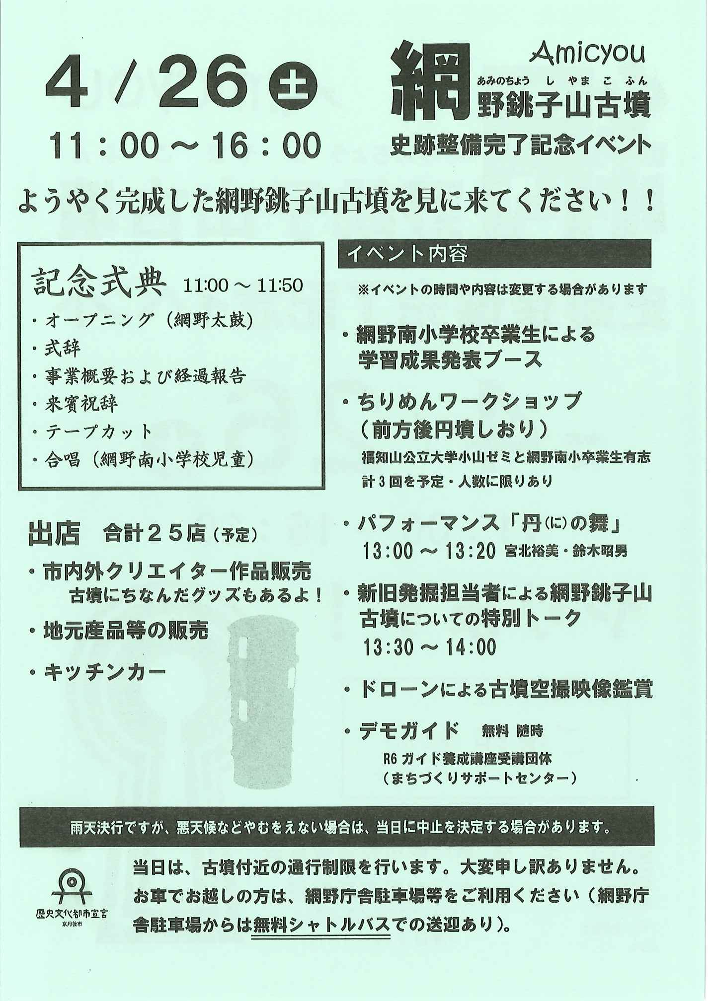 <4月11日> ・広報京丹後04_10号 ・網野銚子山古墳史跡整備完了記念イベント 裏面