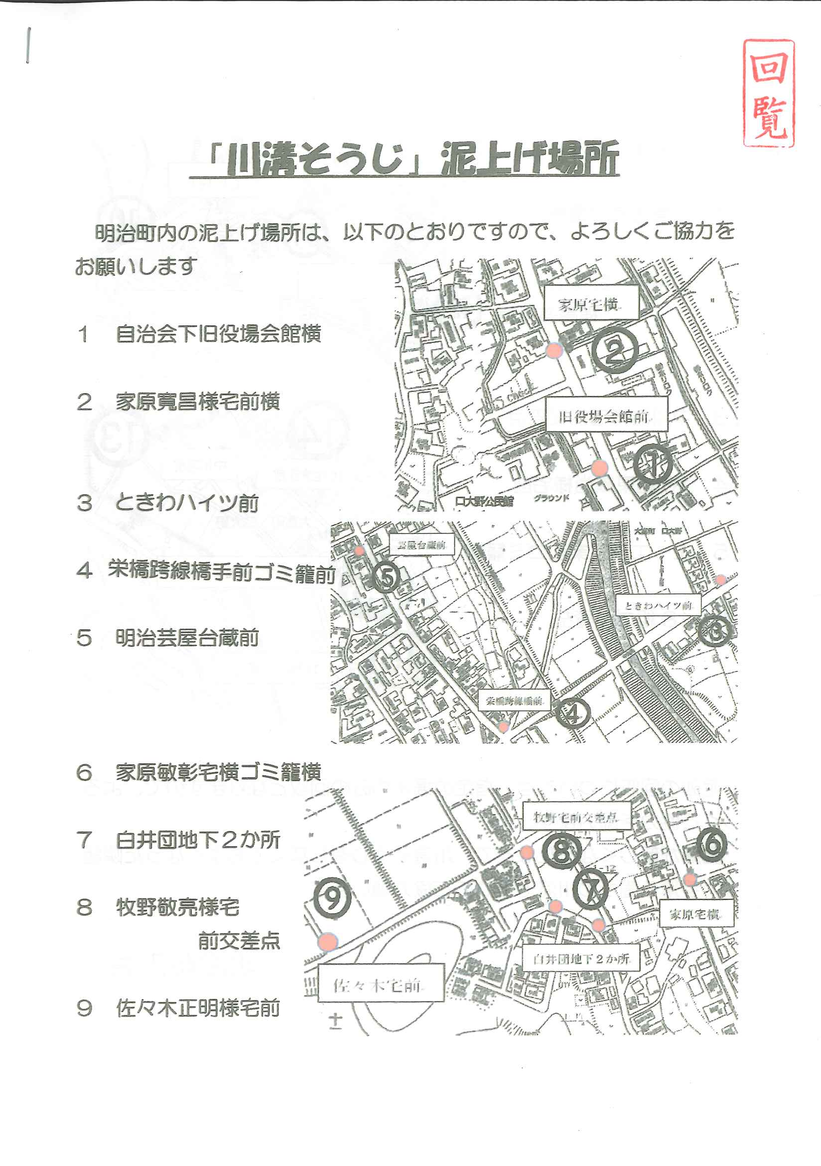 ・<昭和町内会>川溝そうじ 図面1 図面2 <明治町内会>ゴミ分別ニュース➁ 裏面 <剱鉾町内会>回覧版について