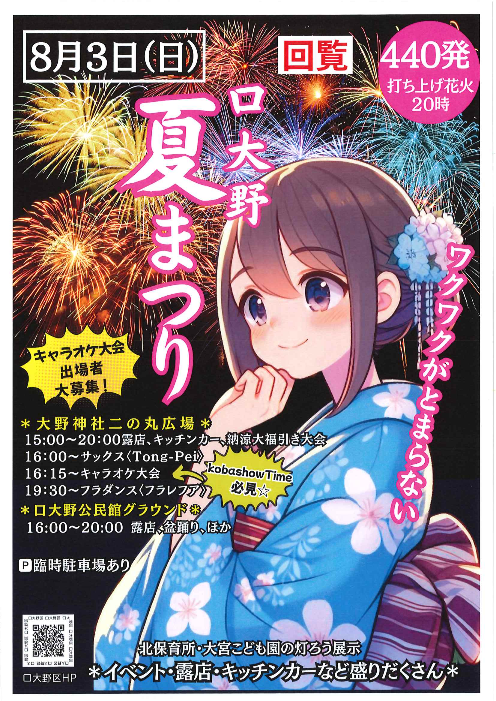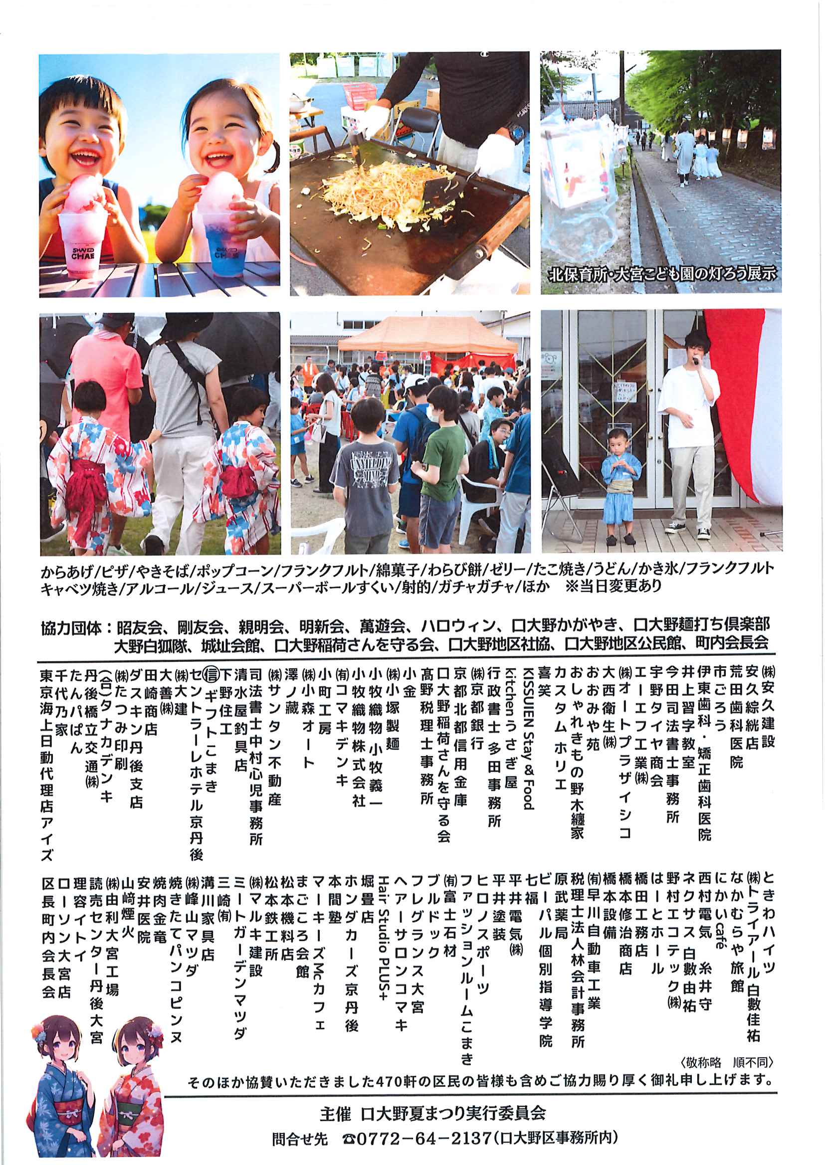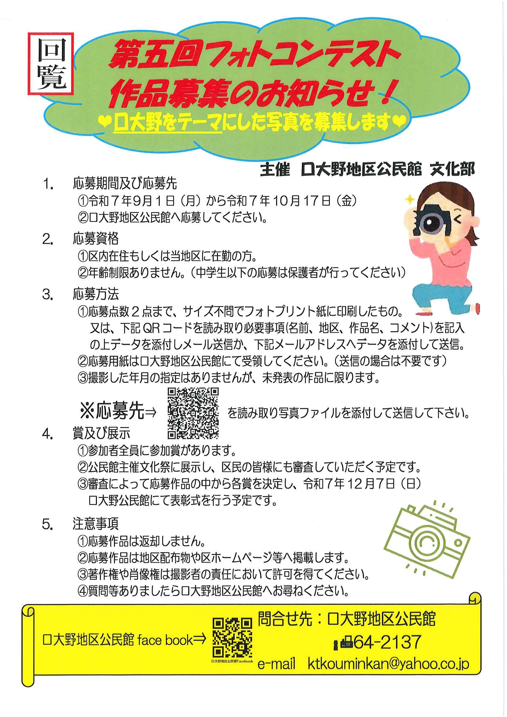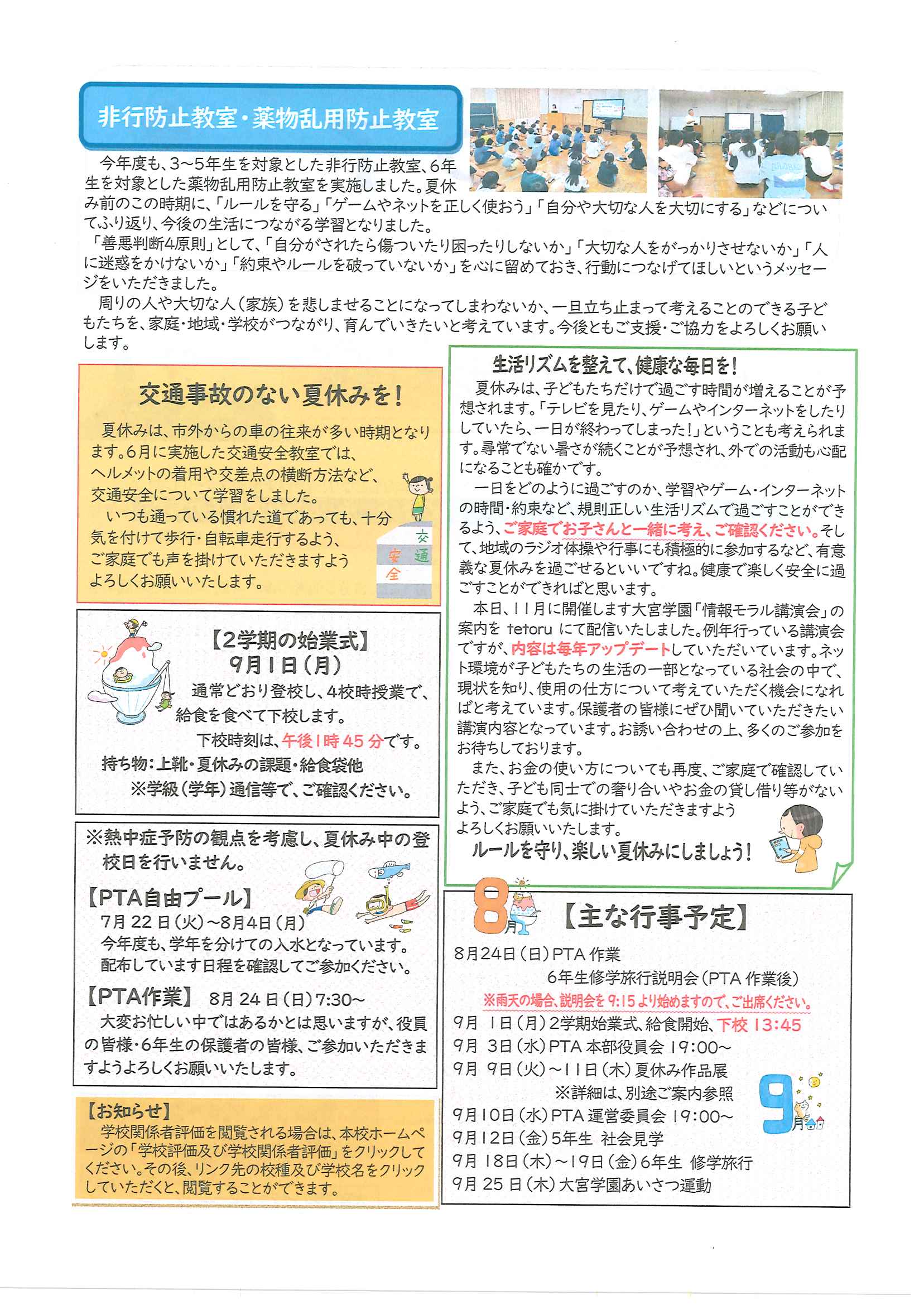 ・口大野夏まつり 裏面 ・あつまれ子ども祭衆 応募様式 ・令和7年神社例大祭樂太鼓子ども祭衆の募集について 応募様式 ・7月ふれあいサロン ・口大野区敬老会 ・大宮駐在所ミニ広報紙大宮パトロール7月号 ・一小の子7月号 裏面 ・大中だより7月号 裏面 ・きたほいくしょだより ・保幼小中一貫教育だより 裏面