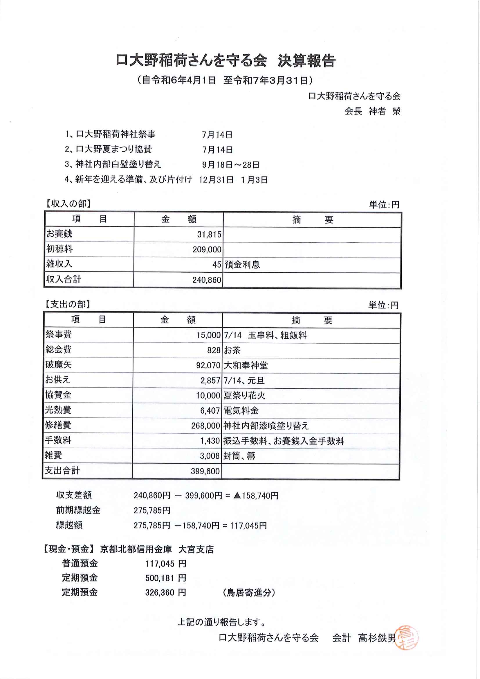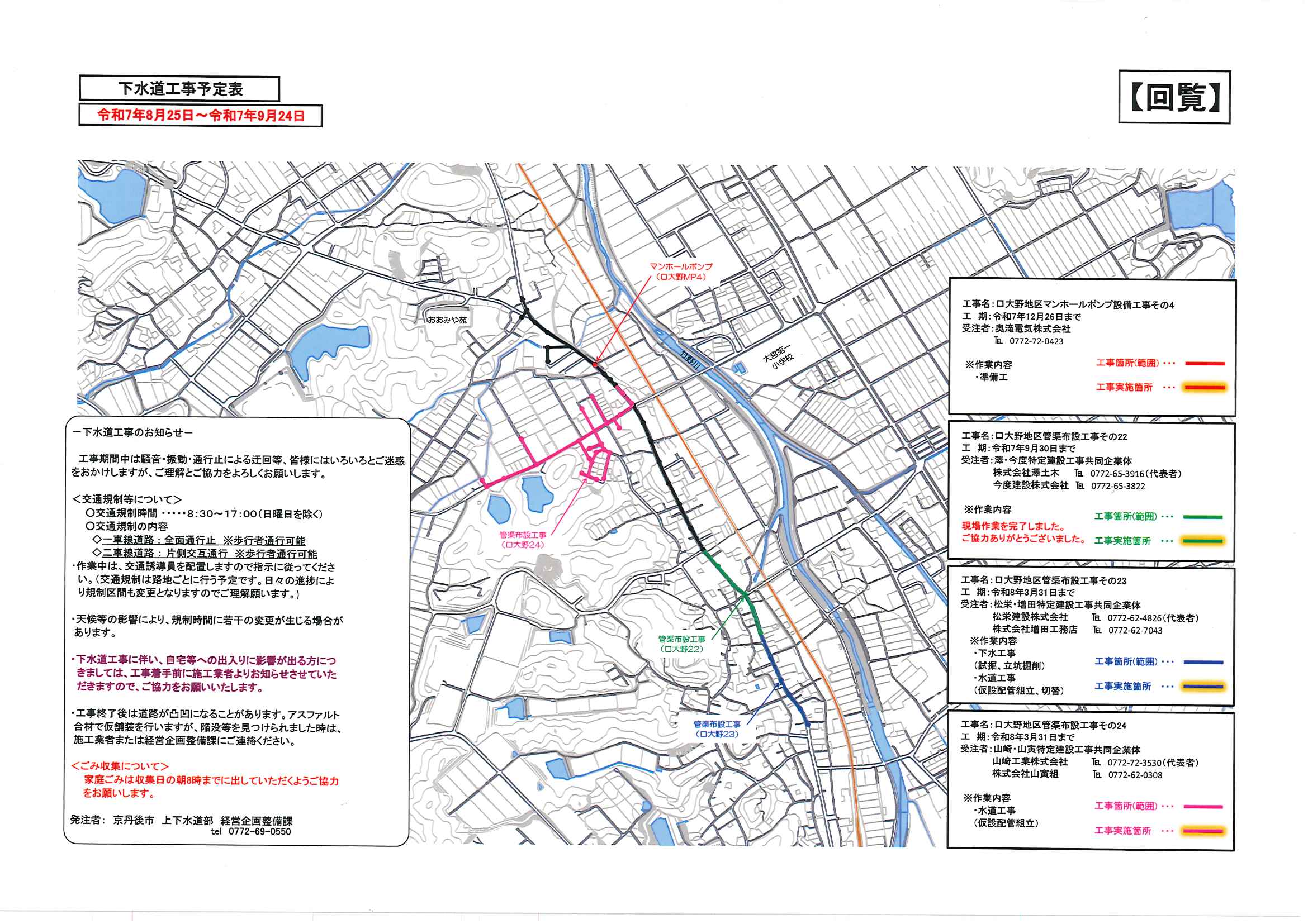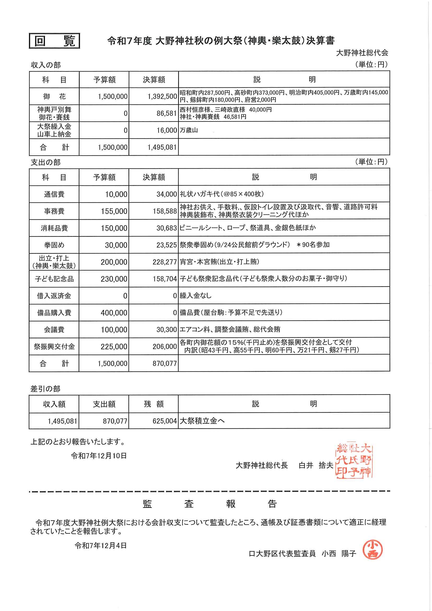 ・令和6年度口大野区一般会計歳入歳出決算書 決算書資料編 ・令和6年度口大野地区公民館会計収入支出決算書 ・令和6年度大野神社会計収入支出決算書 ・7月にこにこサロン(子育てサロン) ・下水道工事予定表6/25- ・地域おこしラジオ ・京丹後アートフェスティバル2025 裏面 ・大宮市民局NEWSおおみやトピックス