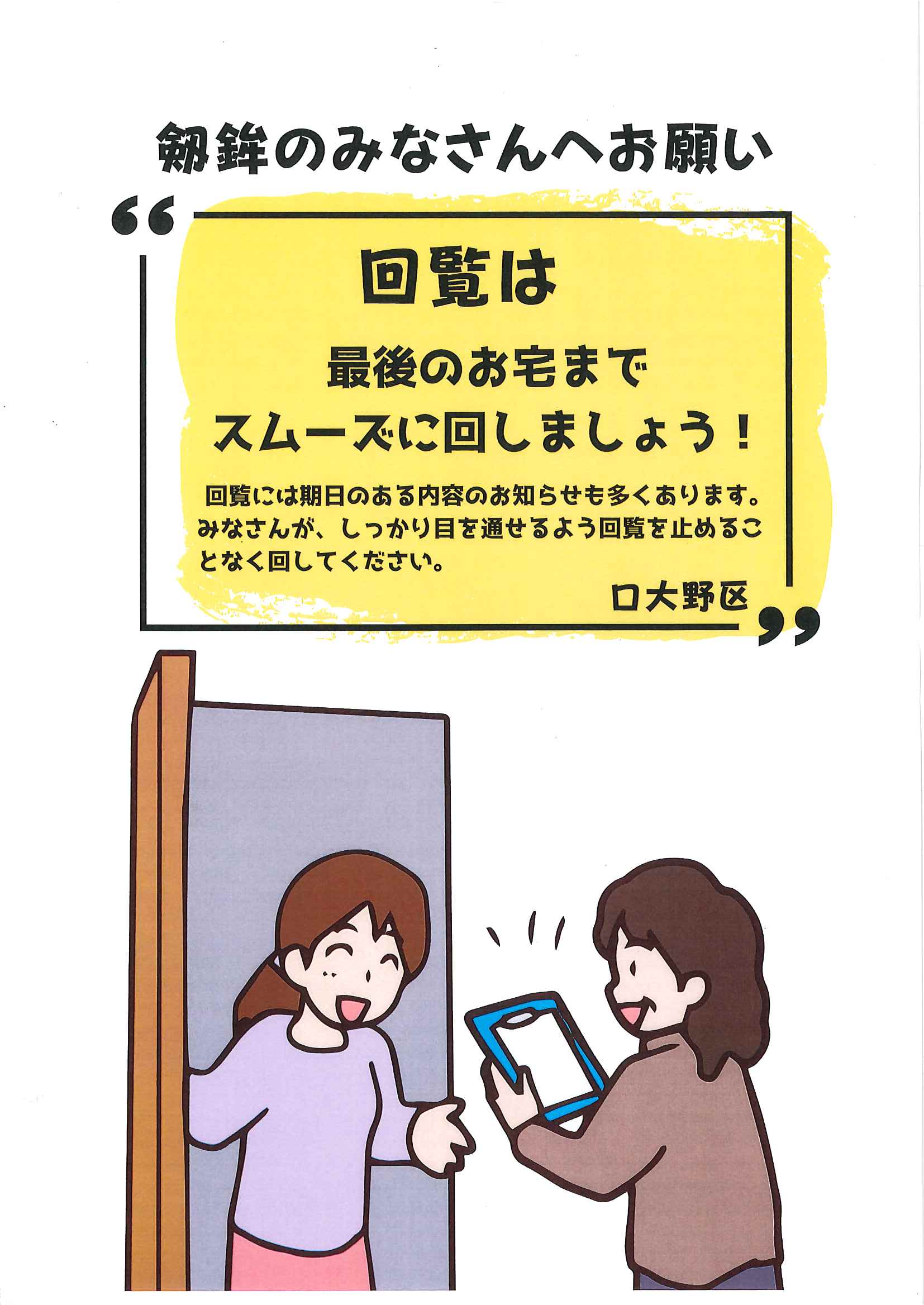 回覧版は読み終えたらすぐにお隣さんへ! 次回配布は6月26日の予定です