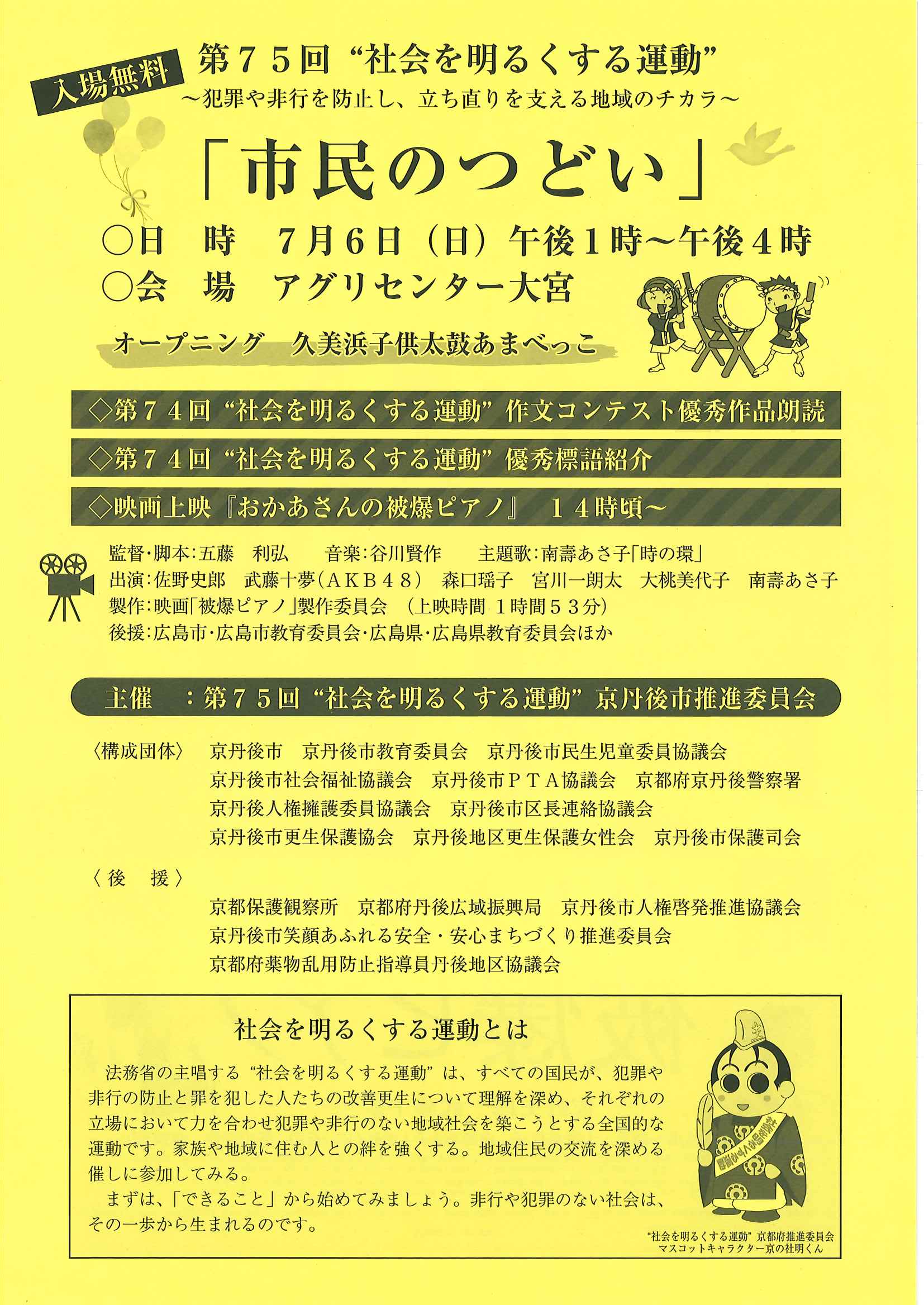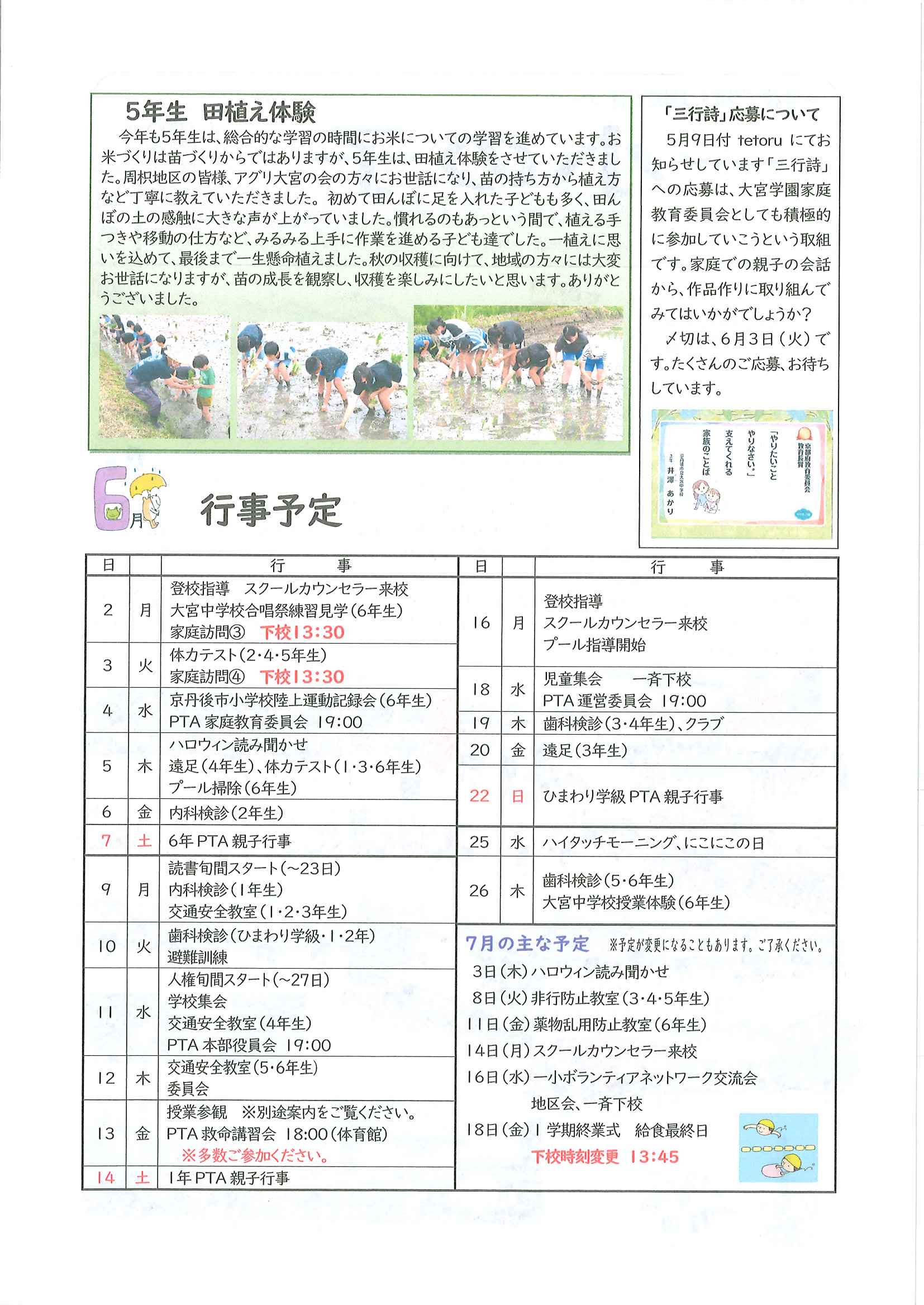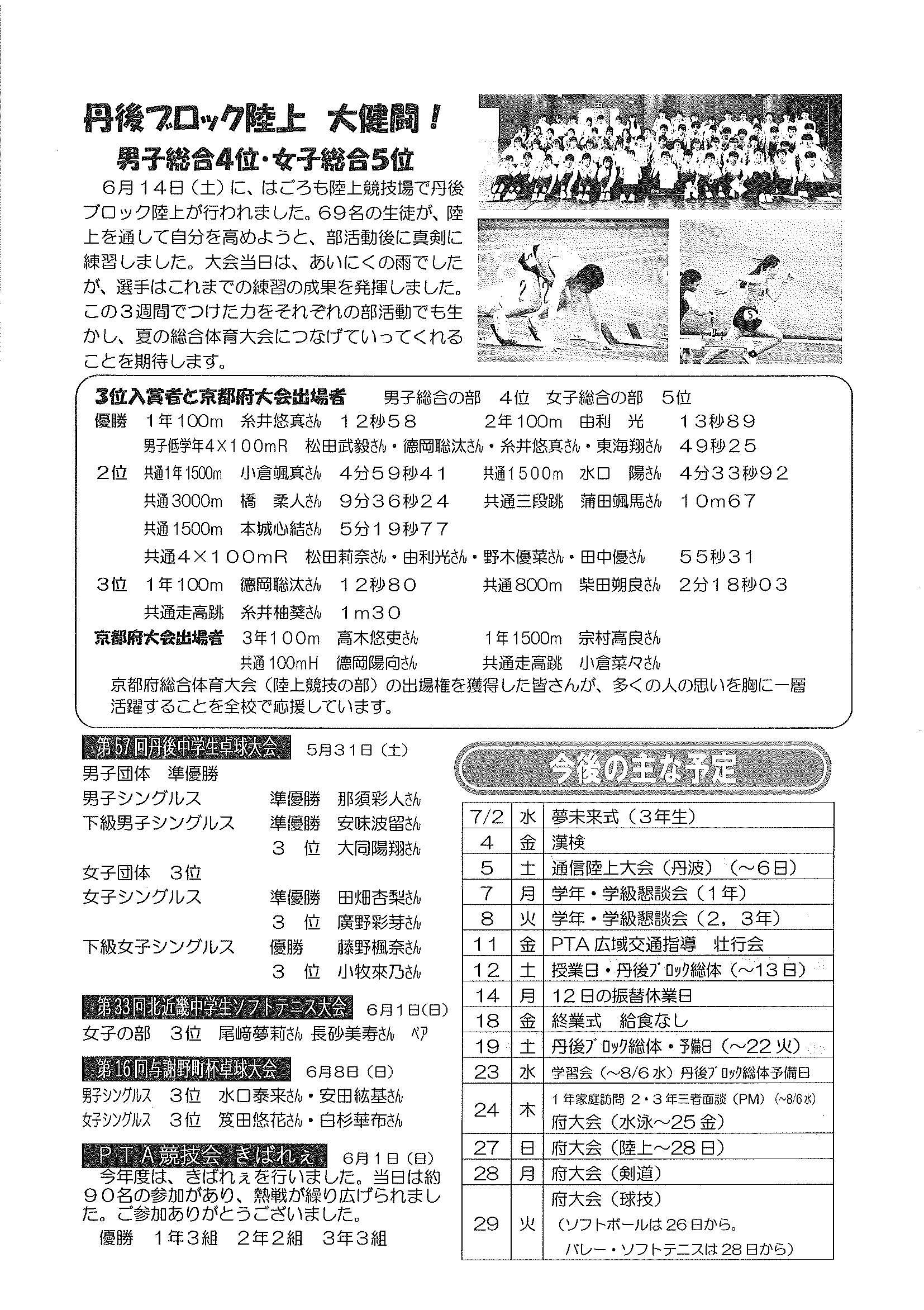 <6月11日> ・社会を明るくする運動「市民の集い」 裏面 ・全日本ライフセービング種目別選手権大会SURF CARNIVAL 裏面 ・京丹後ビーチ一斉クリーン作戦 裏面