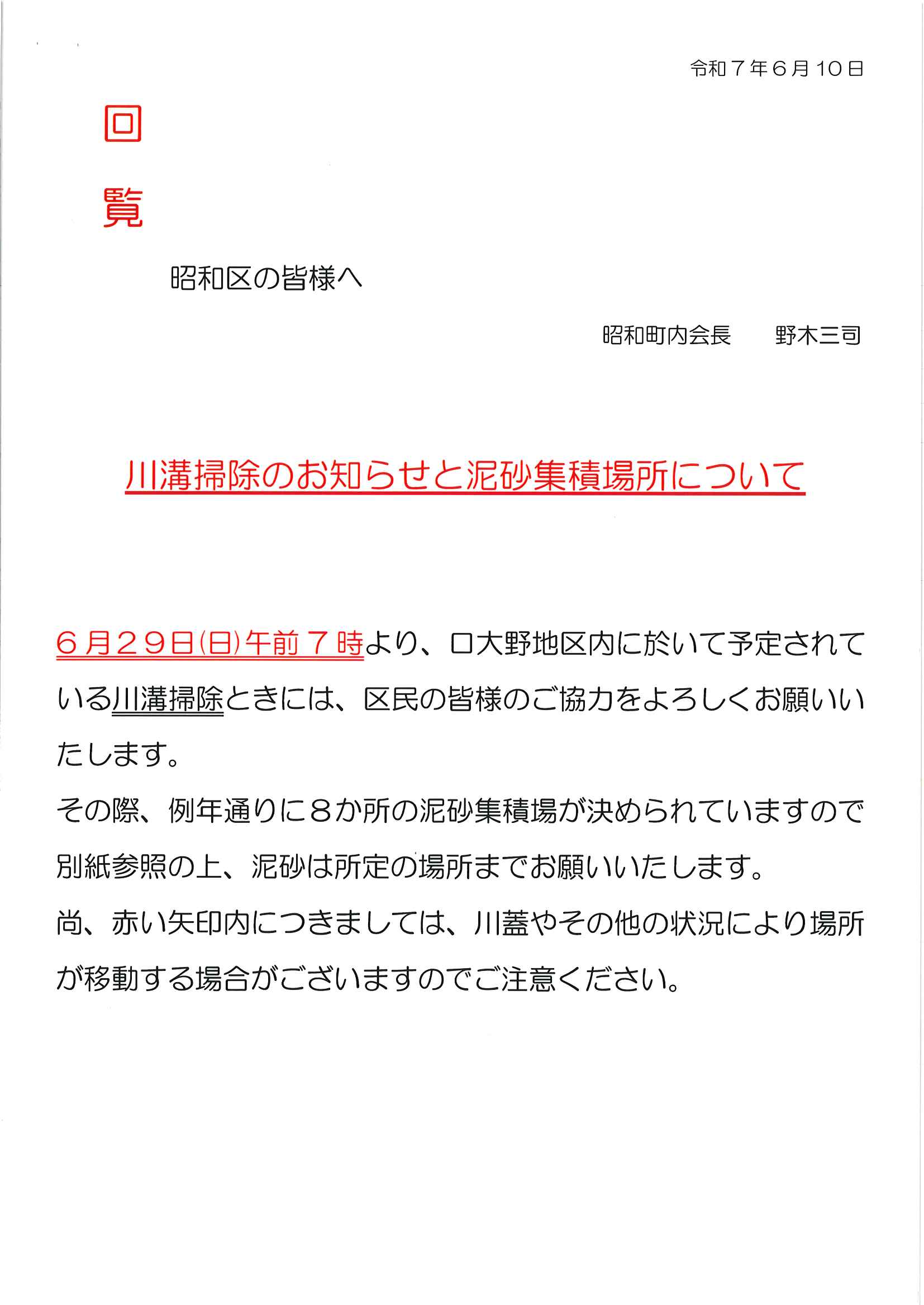 <昭和町内会>・秋祭りについて <明治町内会>・求む6/29草刈りボランティア