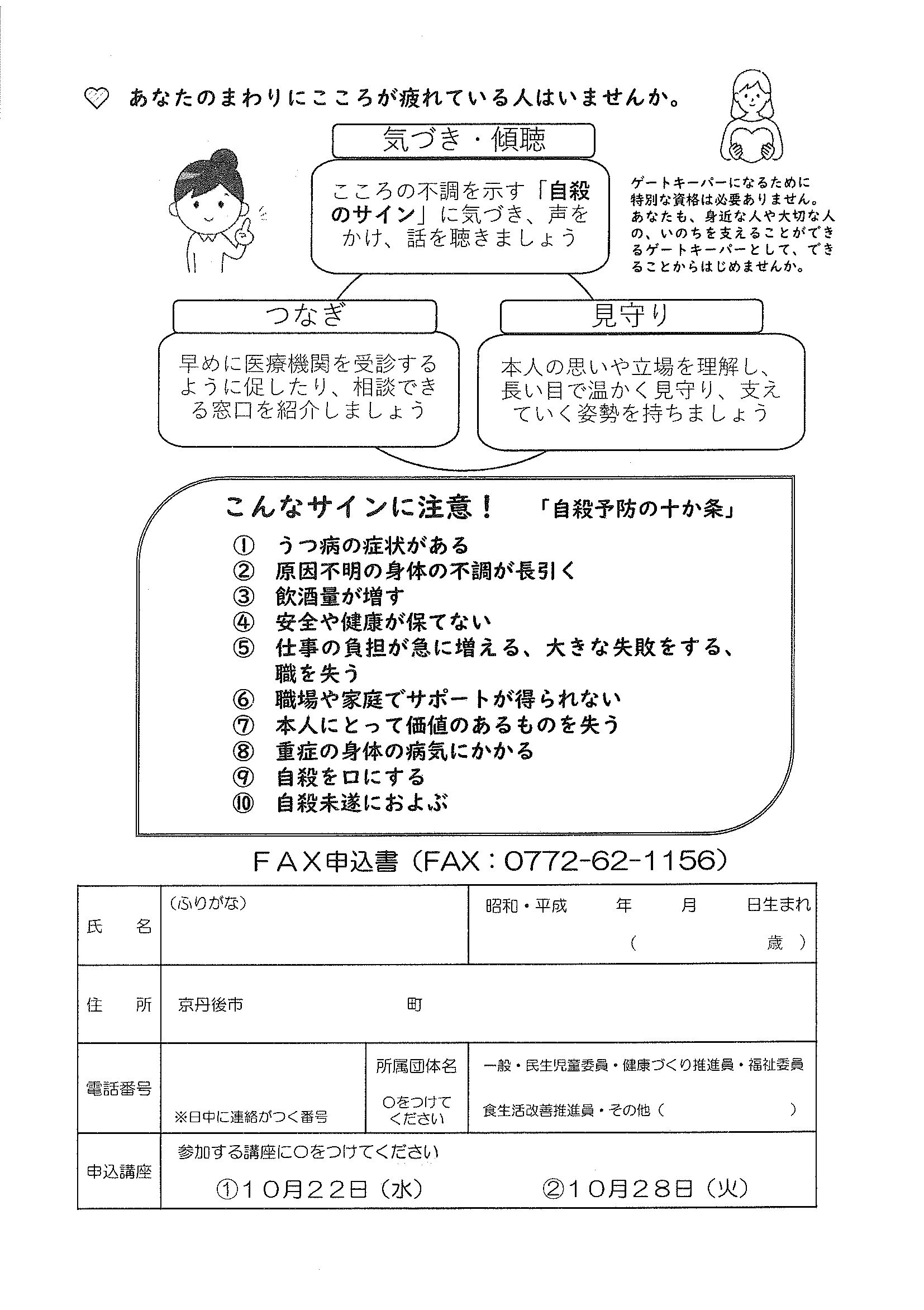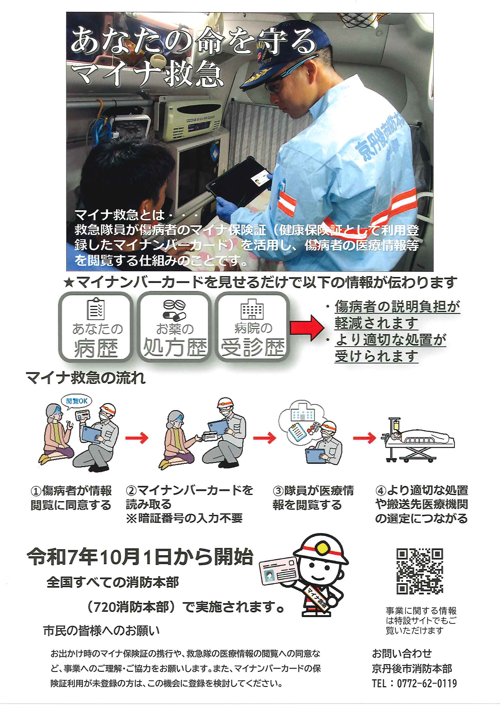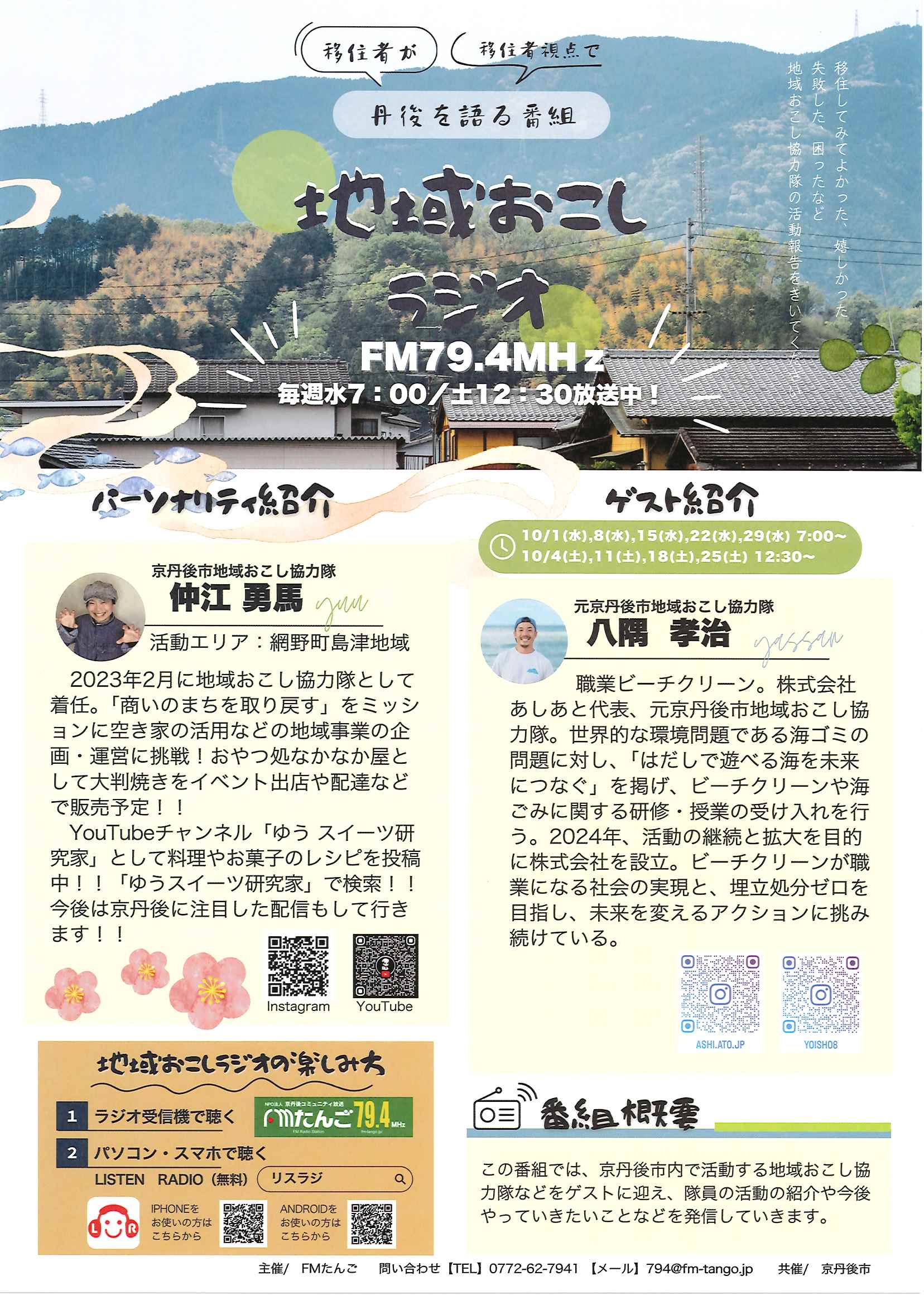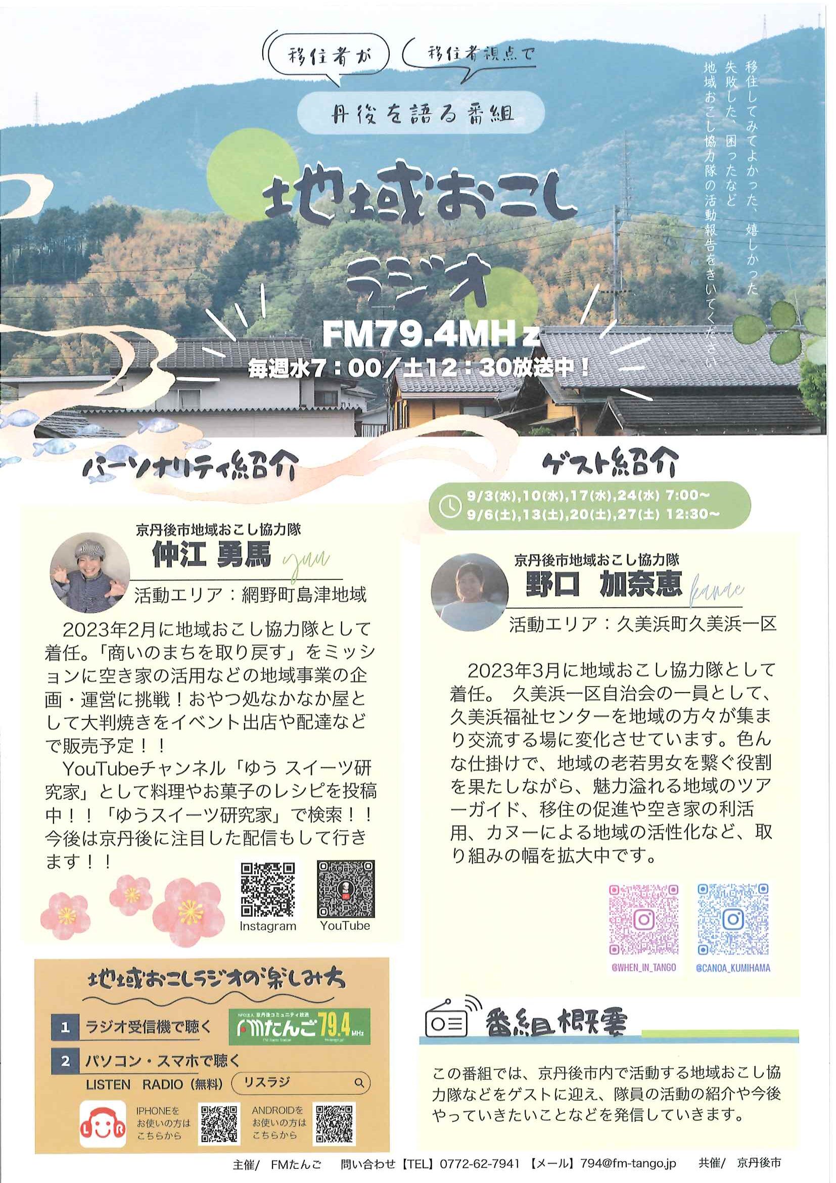<9月26日> ・広報京丹後10月号 ・市社協だより こころNo107 ・こころ・いのち・つなぐ手(ゲートキーパー)養成講座 裏面 ・あなたの命を守るマイナ救急 10/1から開始 ・織センフェスティバル120周年記念 裏面 ・第3回丹後ウッドフェス 裏面 ・大宮地域公民館だより 裏面 ・地域おこしラジオ