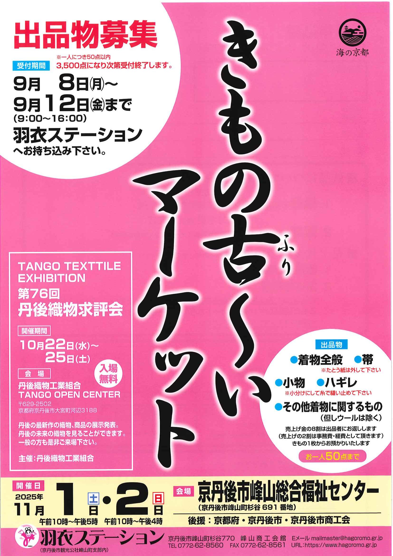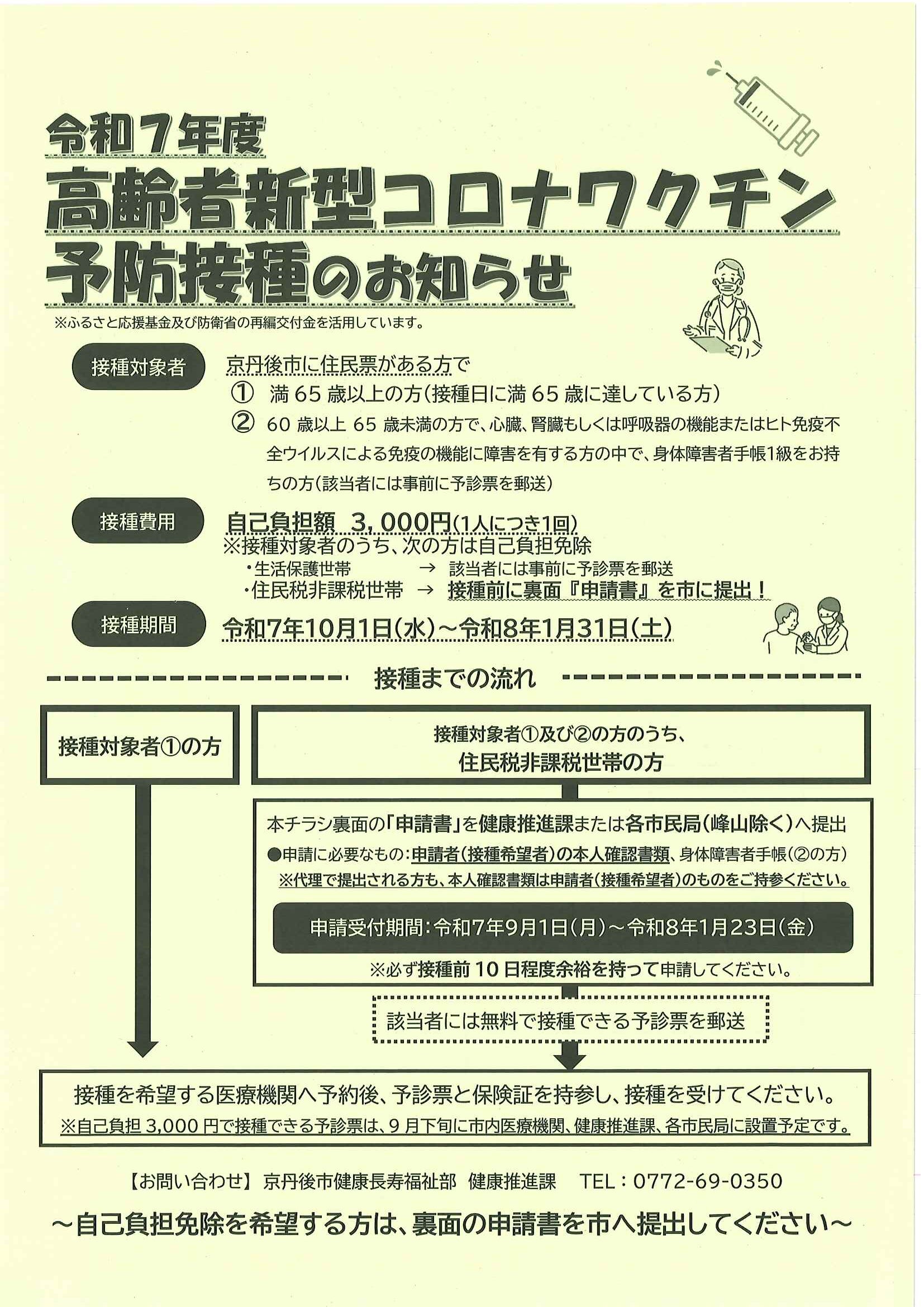 <8月26日> ・広報京丹後9月号 ・きょうと探検ウォーキングある古っ都 裏面 ・丹後まるごとお茶の博覧会in天橋立 裏面 ・令和7年度高齢者インフルエンザ予防接種のお知らせ 裏面 ・丹後のびのび体操体験教室のご案内 裏面 ・令和7年度高齢者新型コロナワクチン予防接種のお知らせ 裏面 ・きもの古~いマーケット出品者募集 裏面