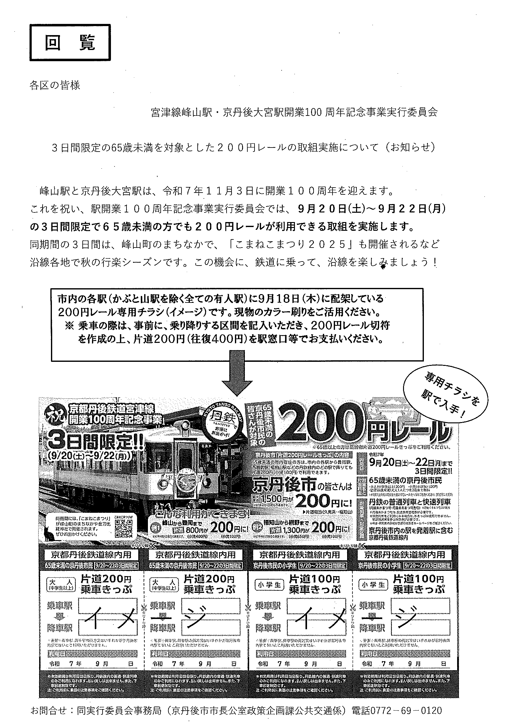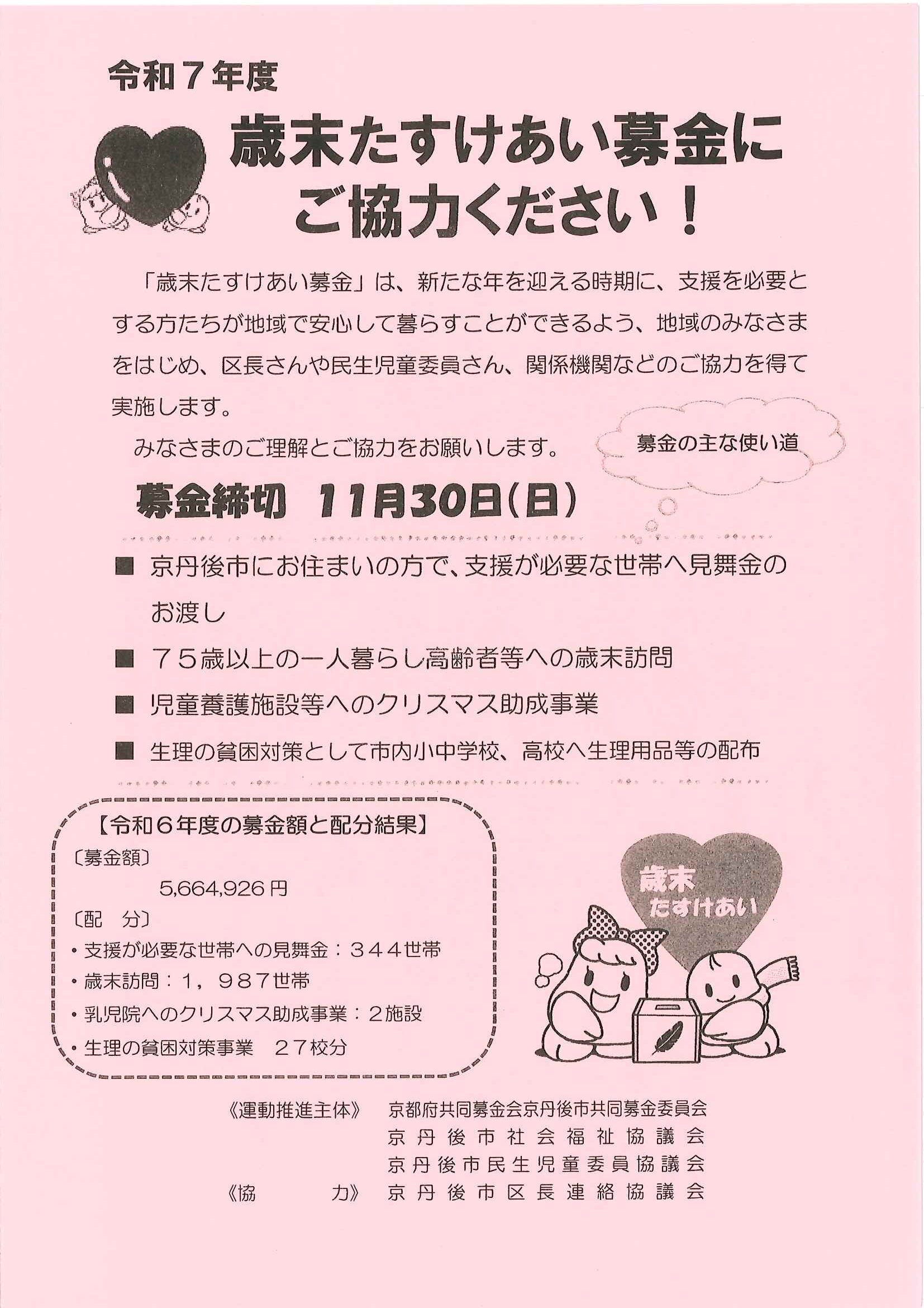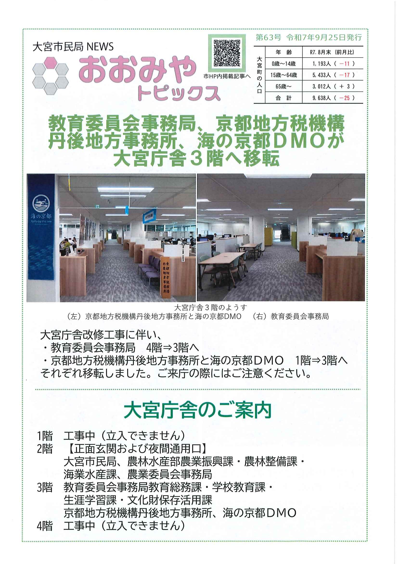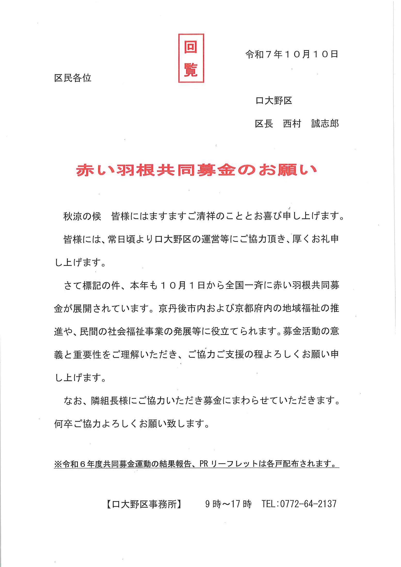 <10月14日> ・京丹後市公共交通ガイドブック ・第3次京丹後市総合計画概要版 ・大宮町文化祭展示会 裏面 ・京丹後市文化協会地域文化祭のご案内 裏面 ・京丹後アートフェスティバル2025上前智祐 裏面 ・行政なんでも相談所 裏面 ・全国水源の里シンポジウム 裏面 ・いきいきライフ講演会 ・赤い羽根共同募金は 裏面 ・令和6年度京都府共同募金運動結果報告 ・令和8年厄除け・健康長寿祈願祭のお知らせ ・赤い羽根共同募金のお願い ・スマートフォン教室 ・峯山海軍航空隊歴史探訪 裏面 ・シニア向け求人情報 裏面 ・大宮駐在所ミニ広報紙大宮パトロール ・保護者のための情報モラル講座 ・保幼小中一貫教育だより 裏面 ・大中だより10月号 裏面 ・一小の子10月号 裏面 ・きたほいくしょだより10月号 <隣組長あて>・赤い羽根共同募金とりまとめのお願い