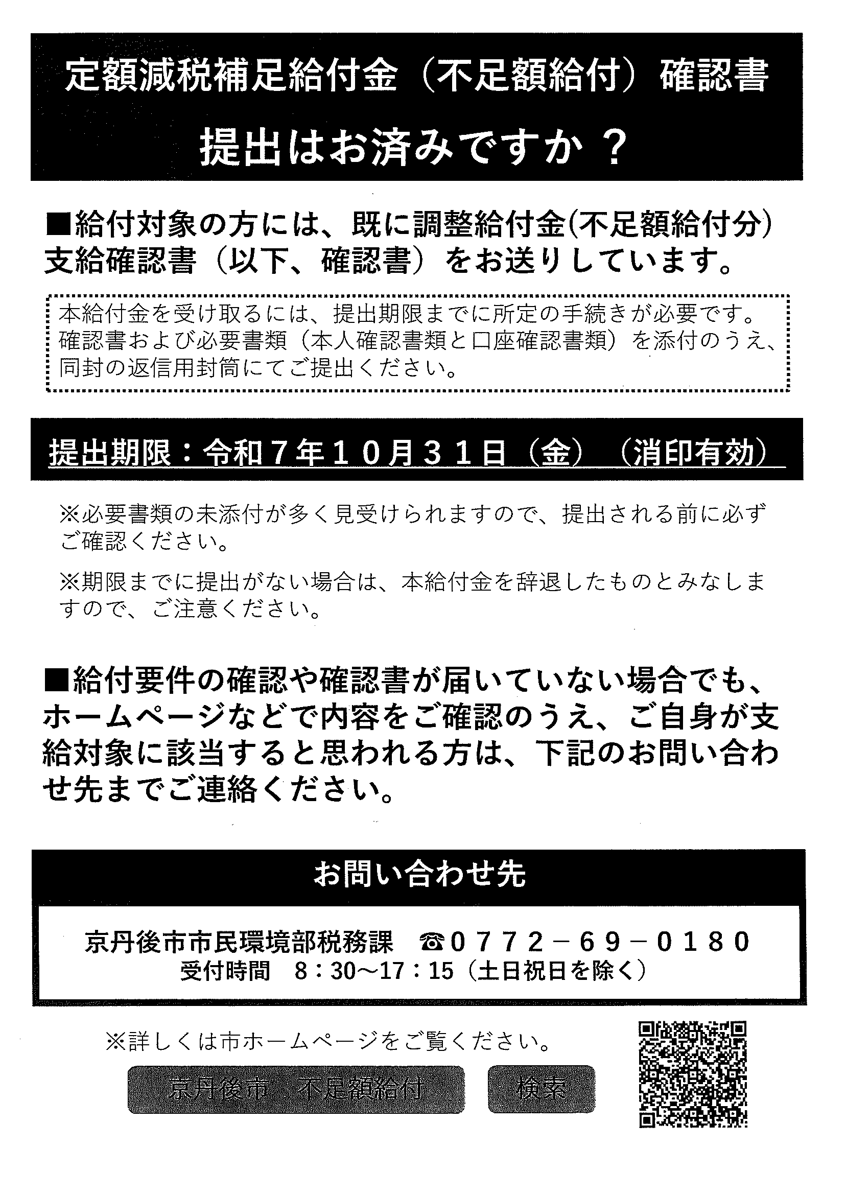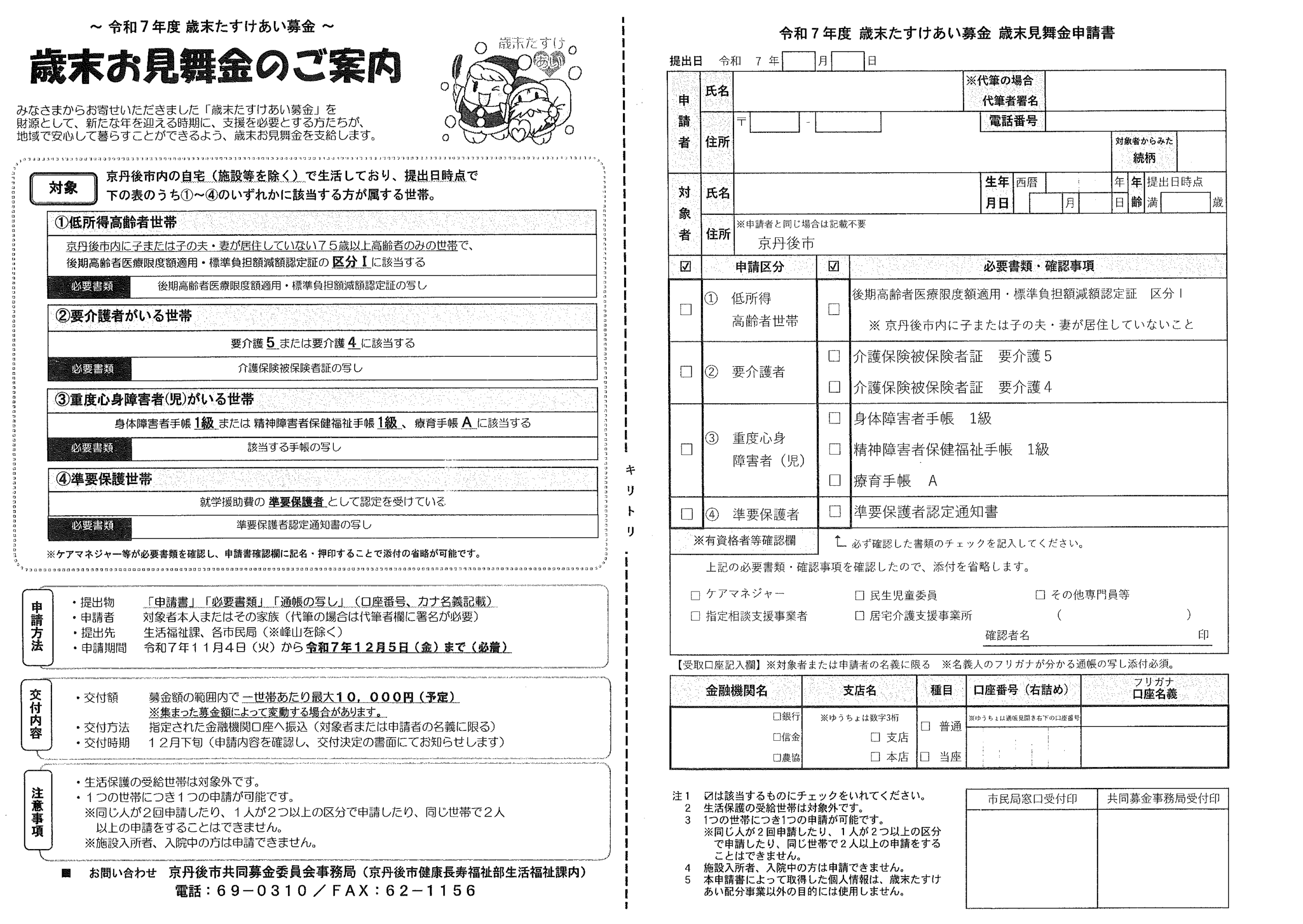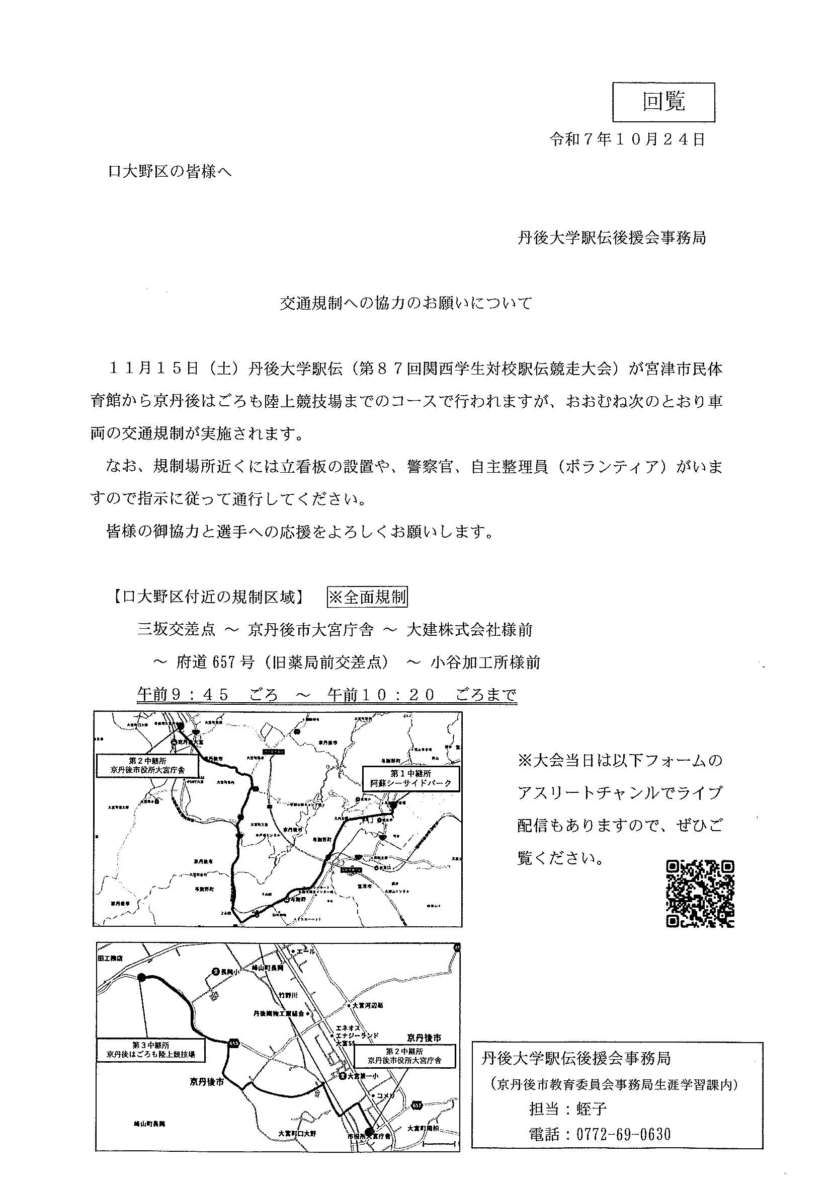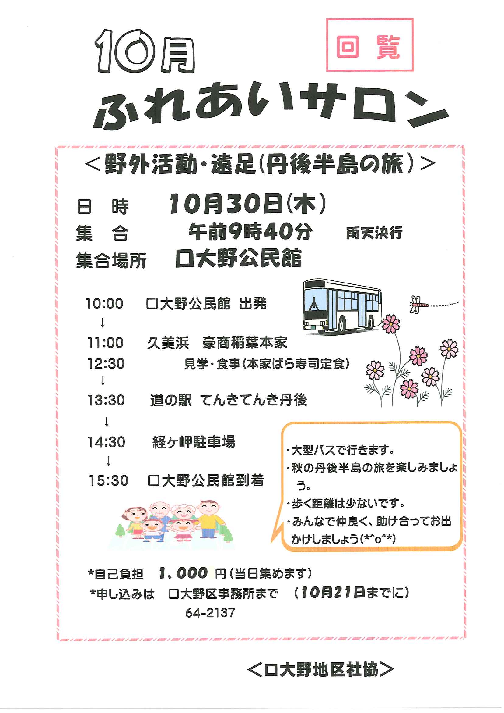<10月14日> ・京丹後市公共交通ガイドブック ・第3次京丹後市総合計画概要版 ・大宮町文化祭展示会 裏面 ・京丹後市文化協会地域文化祭のご案内 裏面 ・京丹後アートフェスティバル2025上前智祐 裏面 ・行政なんでも相談所 裏面 ・全国水源の里シンポジウム 裏面 ・いきいきライフ講演会 ・赤い羽根共同募金は 裏面 ・令和6年度京都府共同募金運動結果報告 ・令和8年厄除け・健康長寿祈願祭のお知らせ ・赤い羽根共同募金のお願い ・スマートフォン教室 ・峯山海軍航空隊歴史探訪 裏面 ・シニア向け求人情報 裏面 ・大宮駐在所ミニ広報紙大宮パトロール ・保護者のための情報モラル講座 ・保幼小中一貫教育だより 裏面 ・大中だより10月号 裏面 ・一小の子10月号 裏面 ・きたほいくしょだより10月号 <隣組長あて>・赤い羽根共同募金とりまとめのお願い