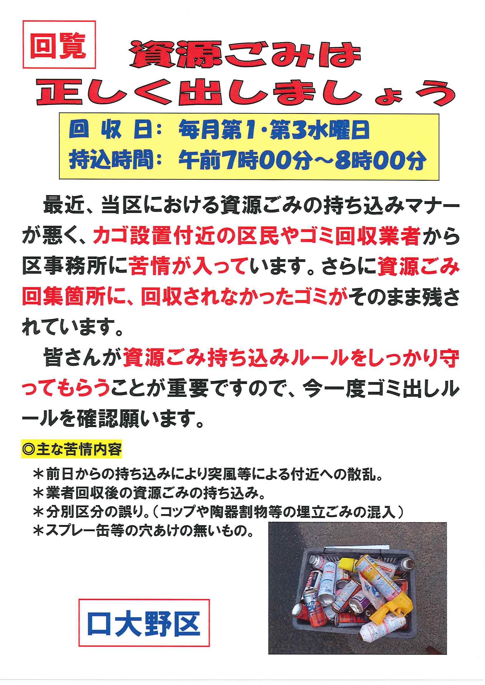<高砂町内のみ>・資源ごみの出し方について 裏面