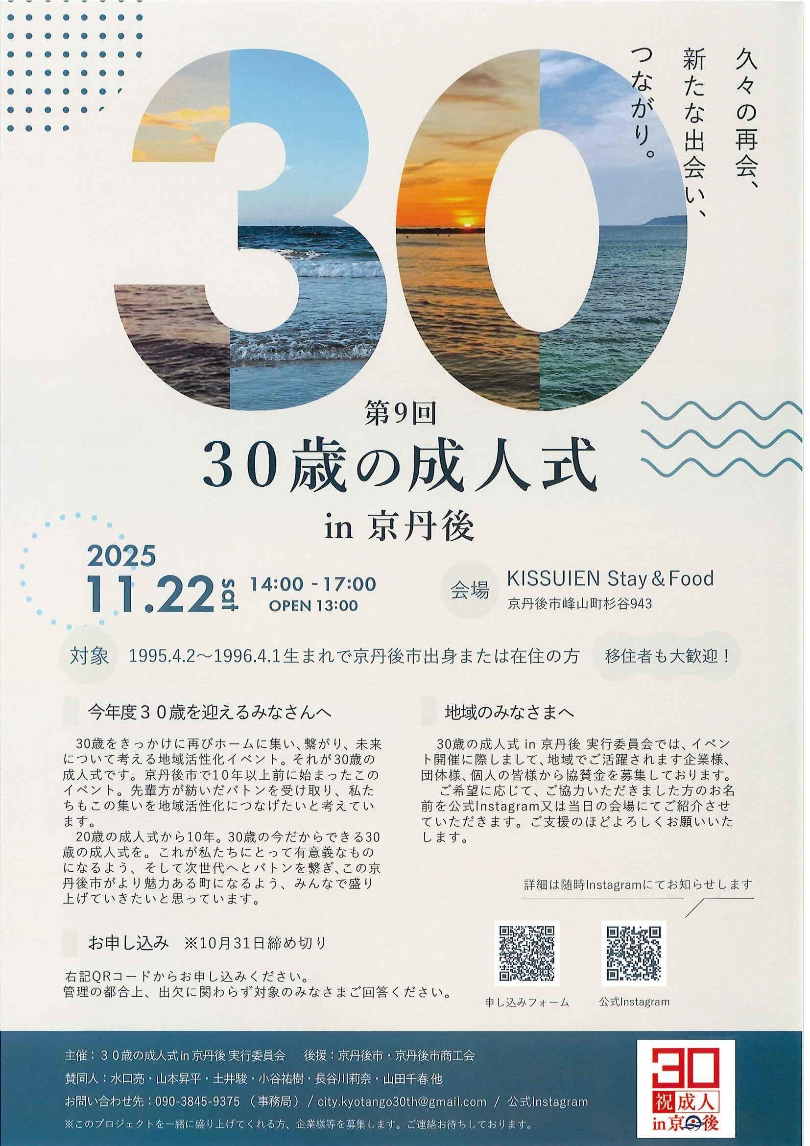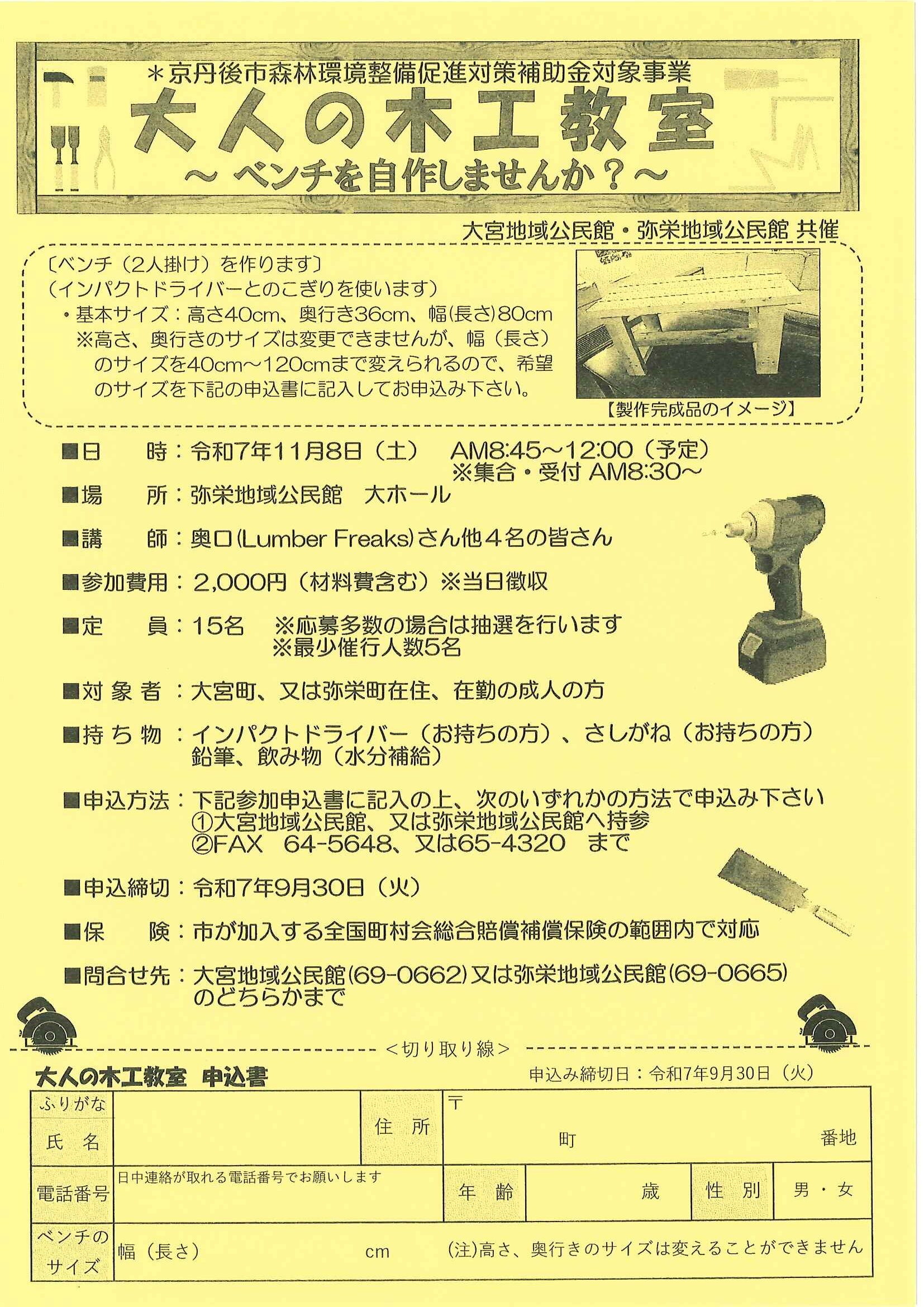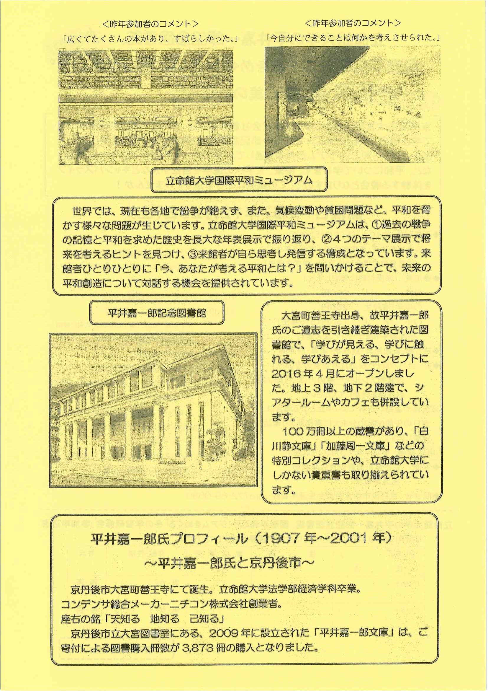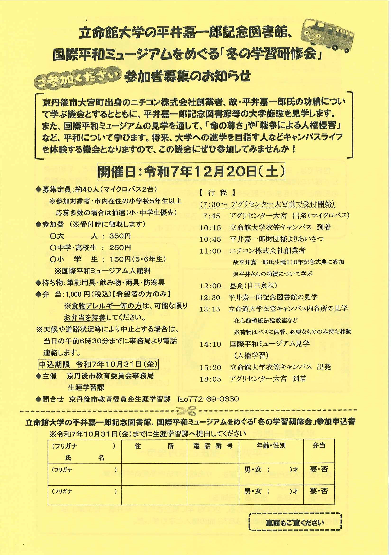 <9月11日> ・第9回30歳の成人式in京丹後 ・体協だより どっとこむGoSports ・立命館大学平井嘉一郎記念図書館「冬の学習研修会」 裏面 ・タクシーチケット等の乗車チケット販売75歳以上の方へ 裏面 ・大人の木工教室~ベンチを自作しませんか~ ・交通安全ニュース 秋の全国交通安全運動 裏面