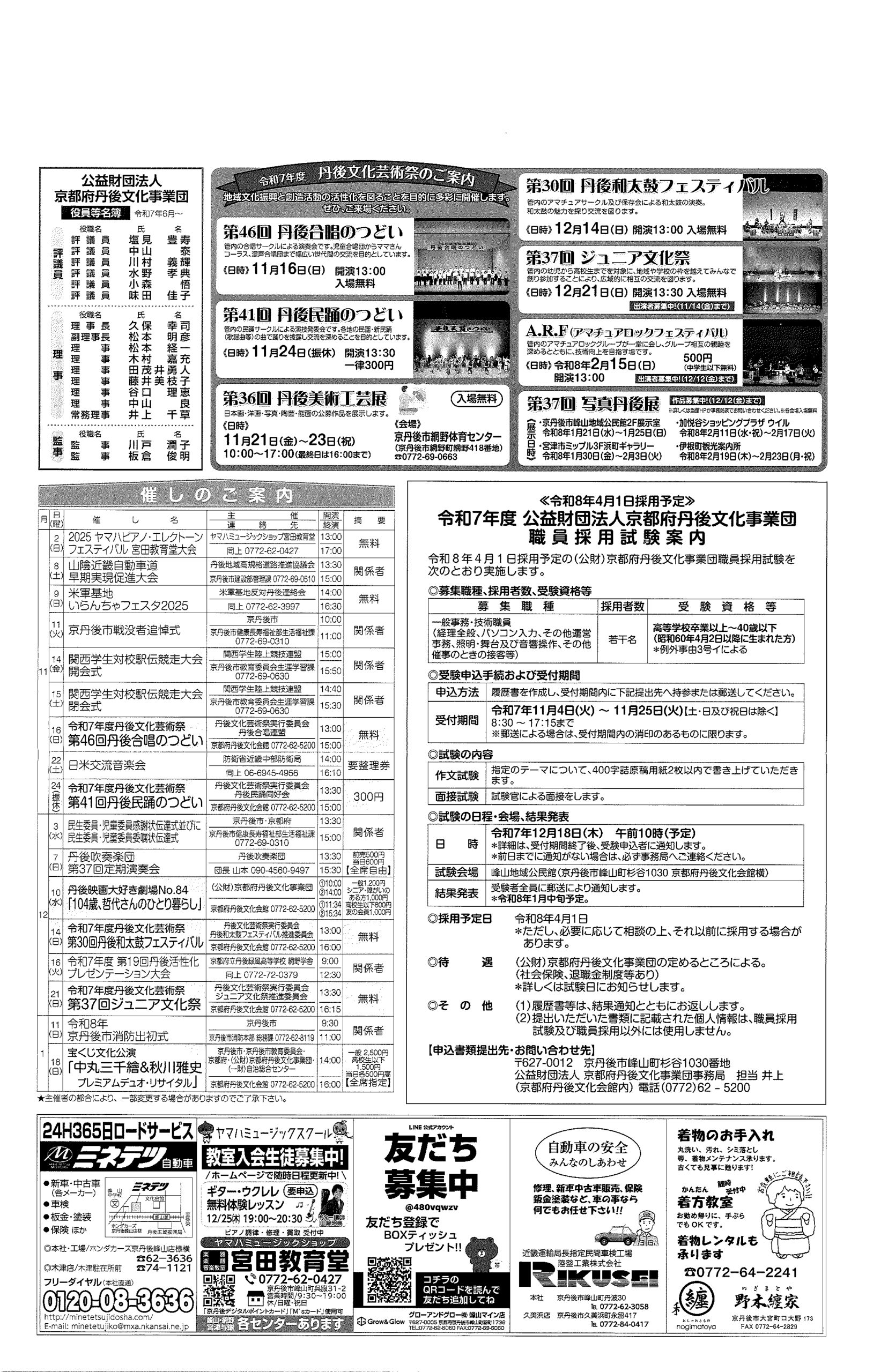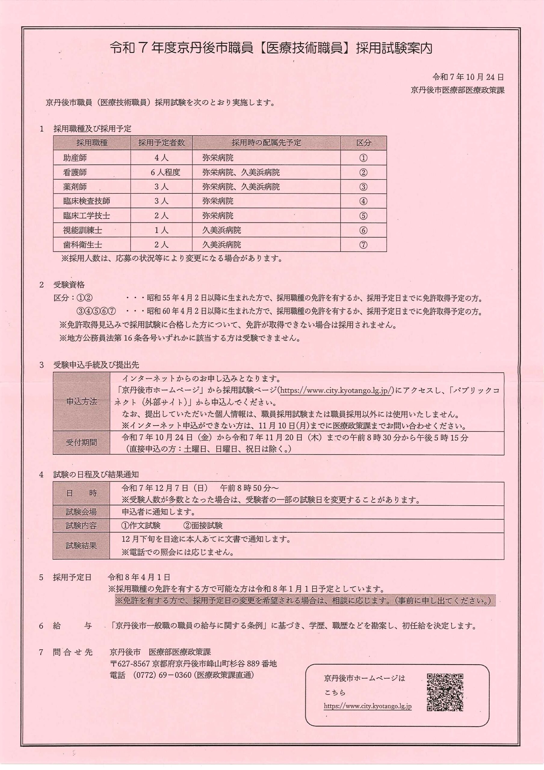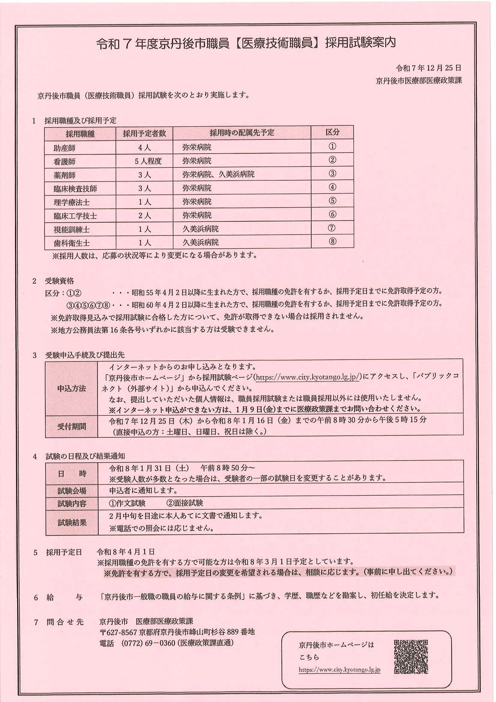 <12月26日> ・京丹後市職員(医療技術職員)採用試験案内 ・京丹後市消防本部からのお知らせ 裏面