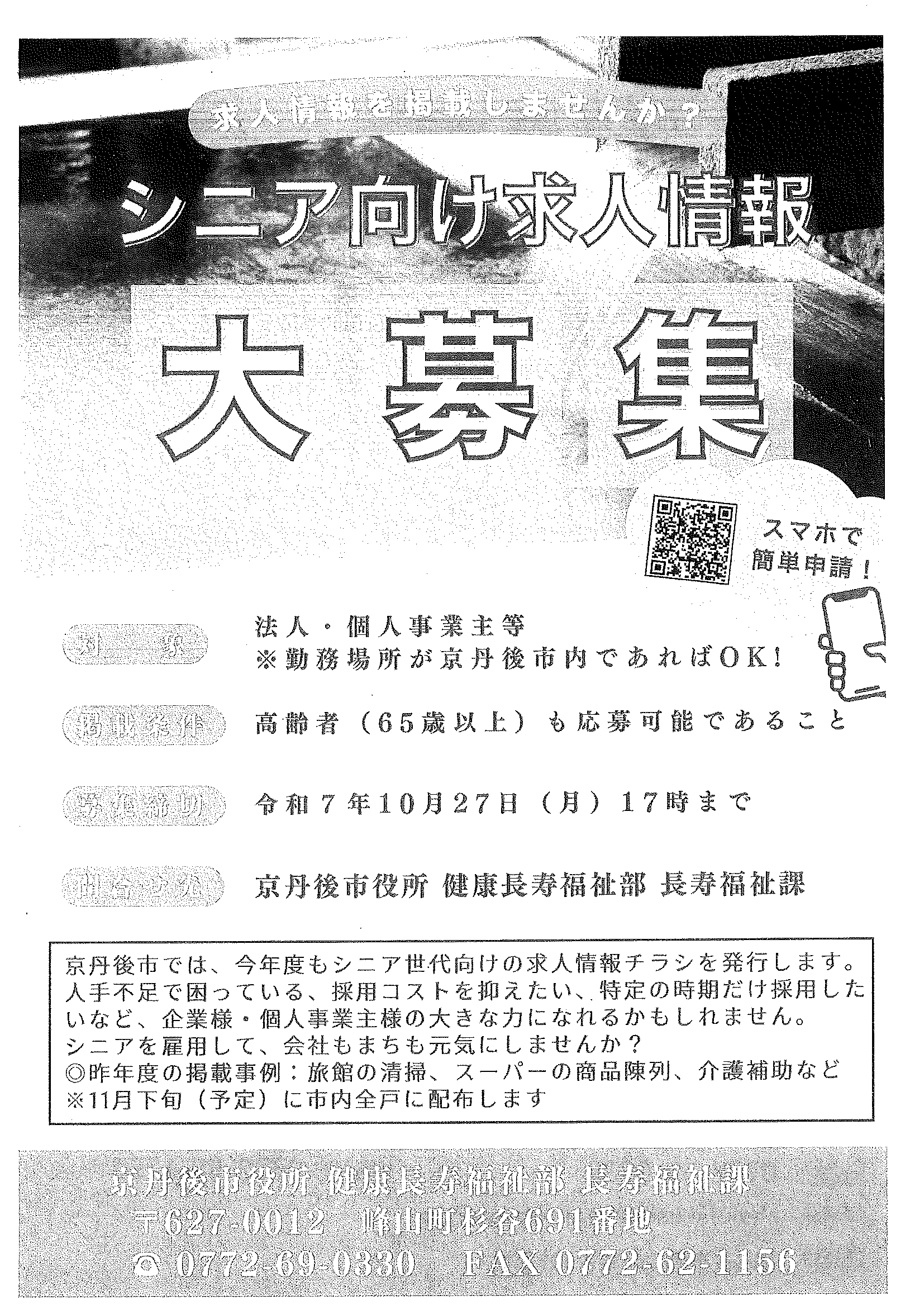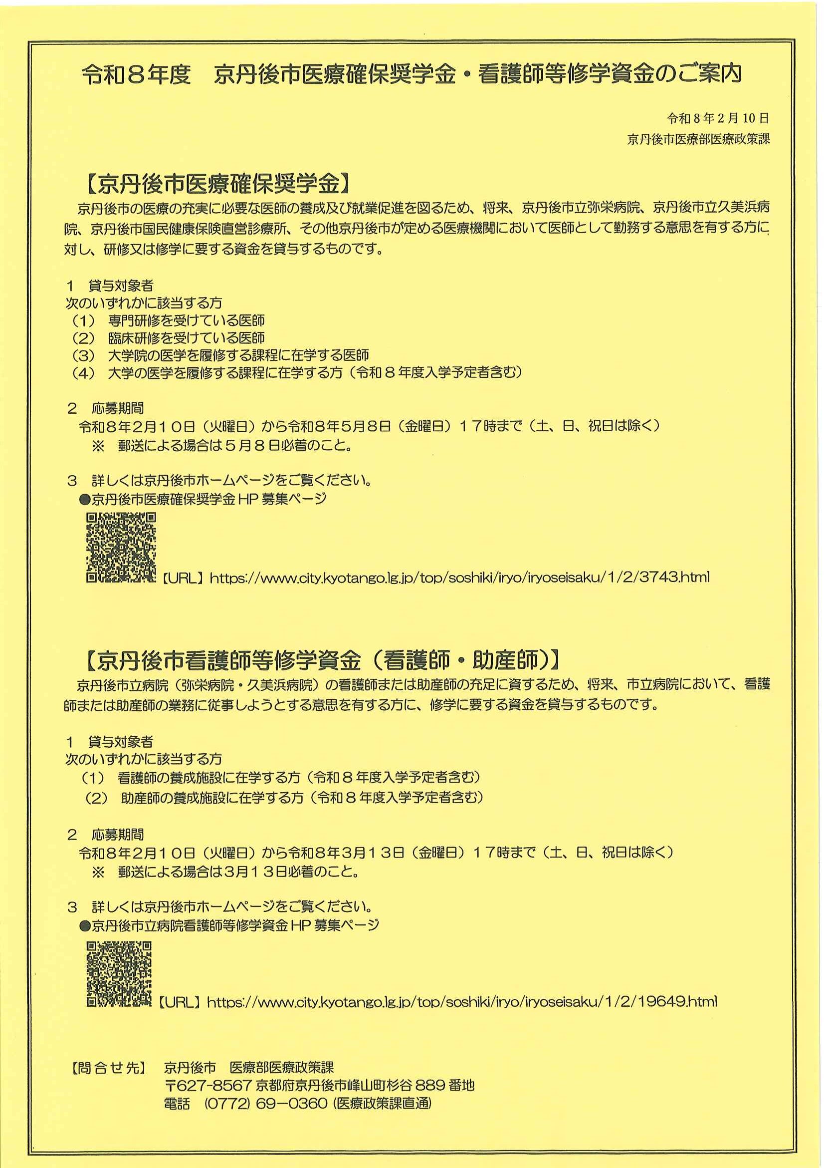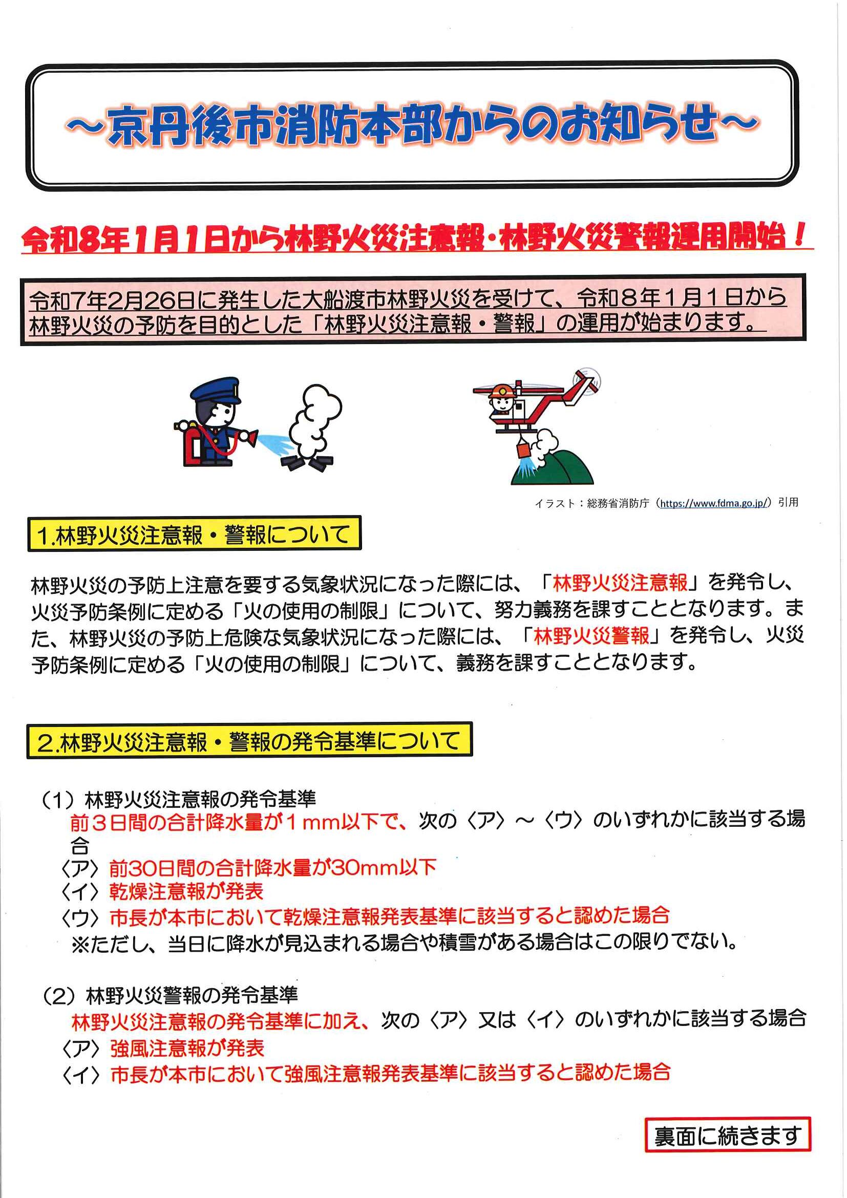 <12月26日> ・京丹後市職員(医療技術職員)採用試験案内 ・京丹後市消防本部からのお知らせ 裏面