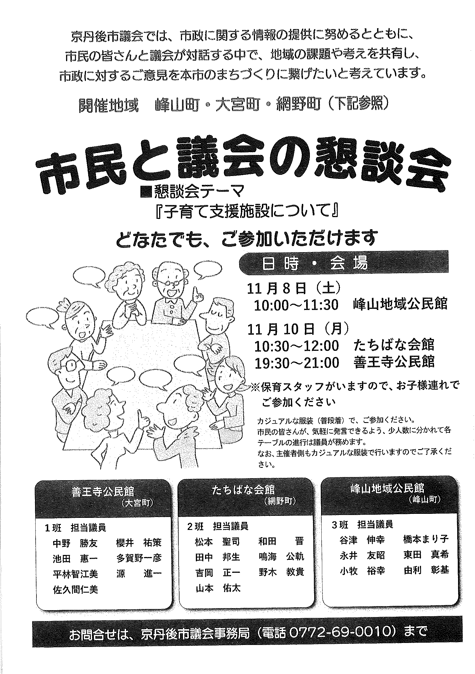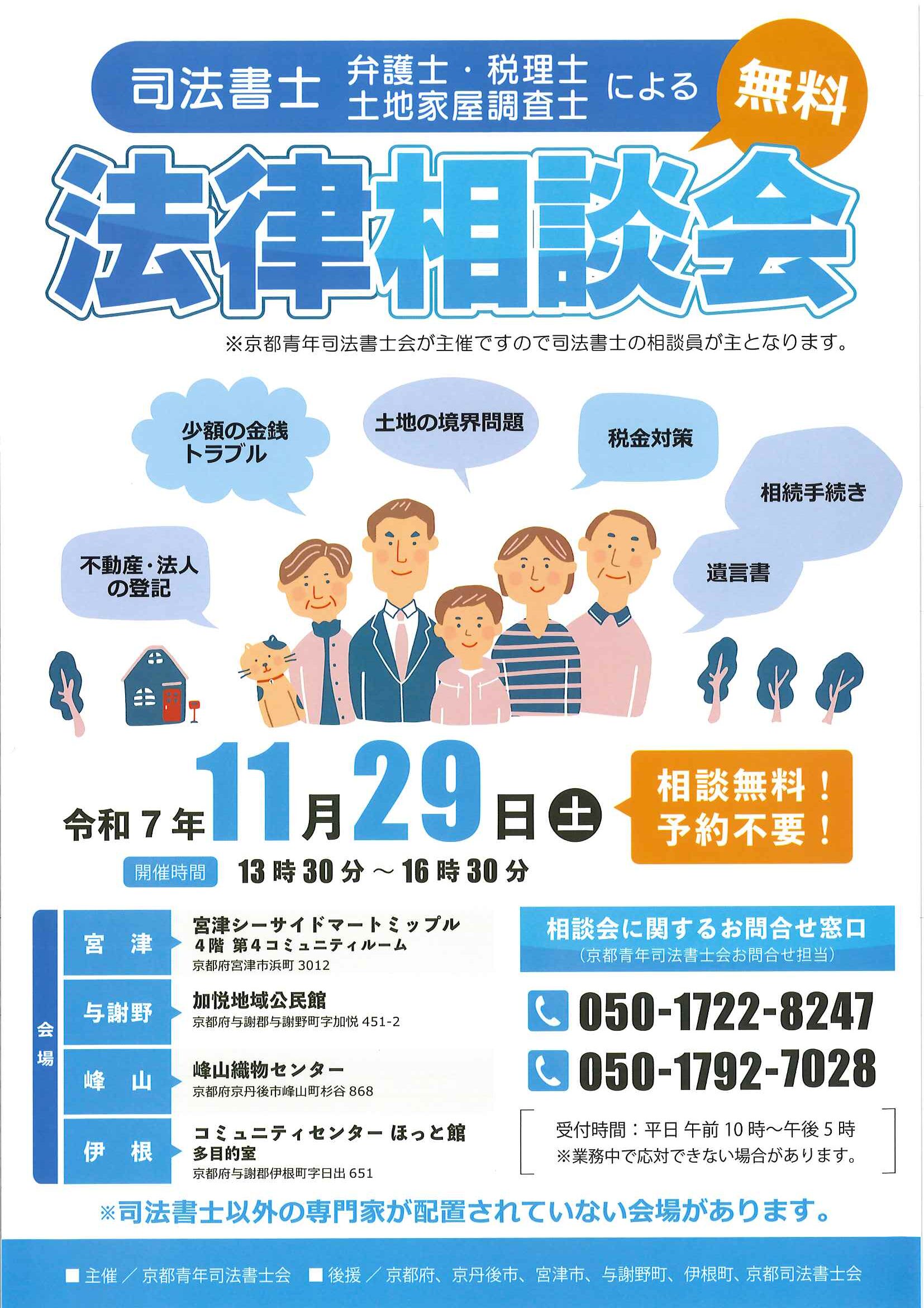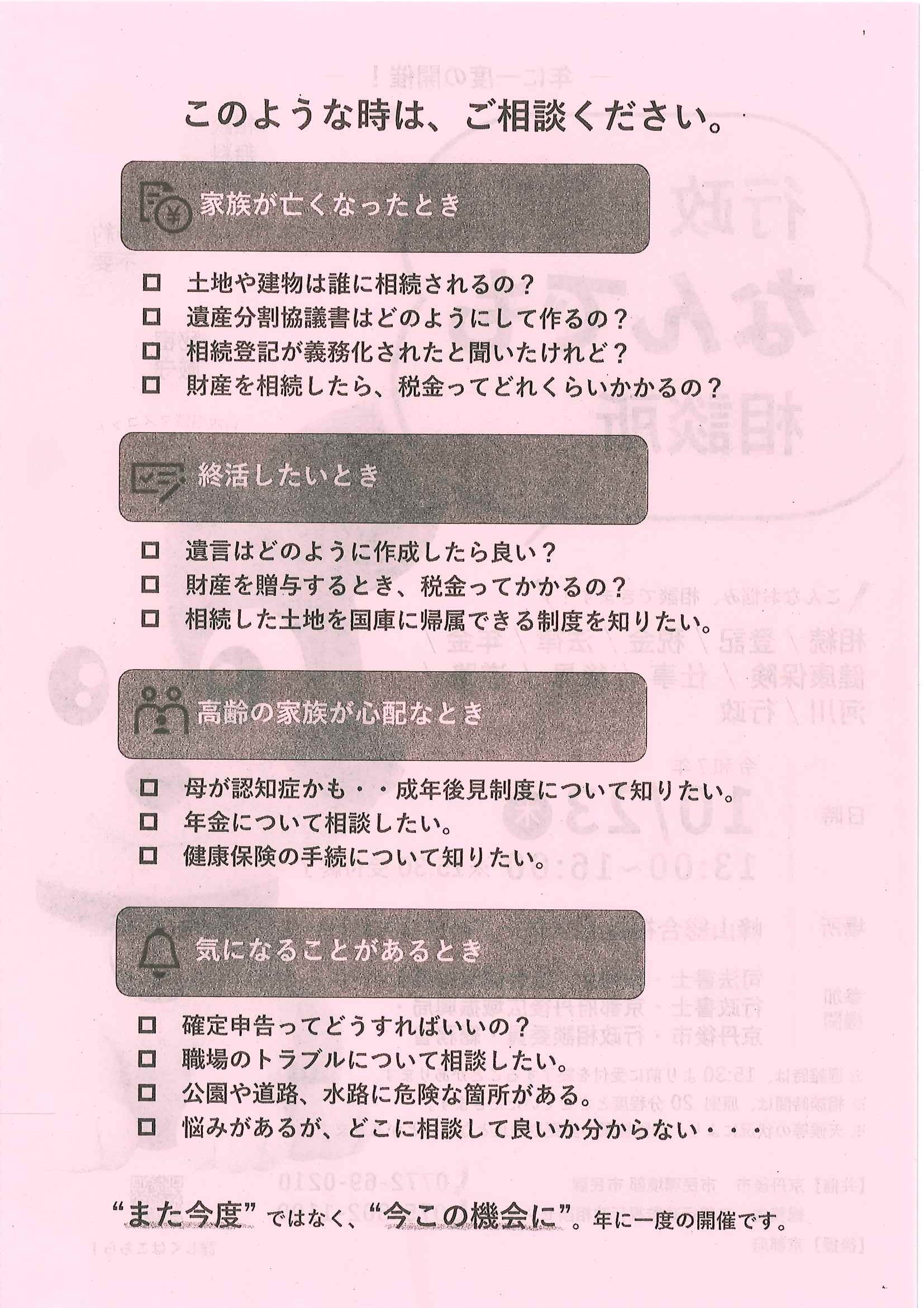 <11月11日> ・京丹後市教育大綱 ・生活習慣病予防講座 裏面 ・法律相談会 ・野村克也講演会